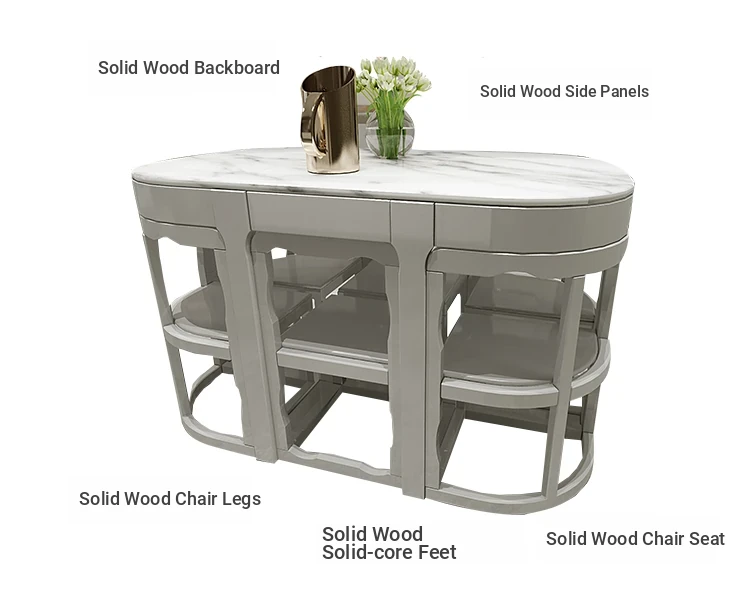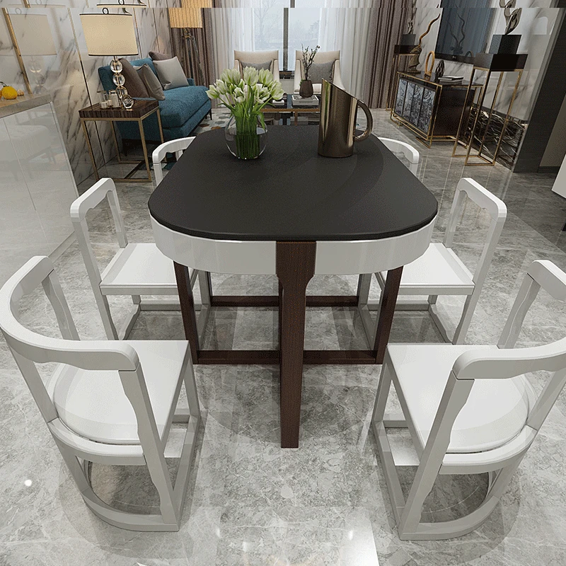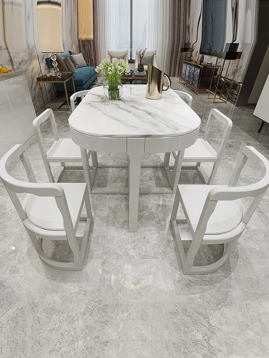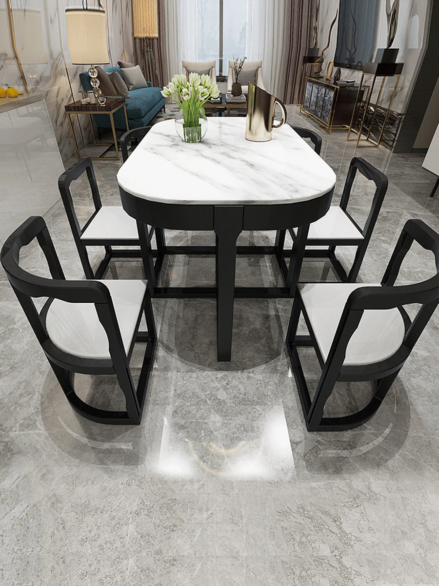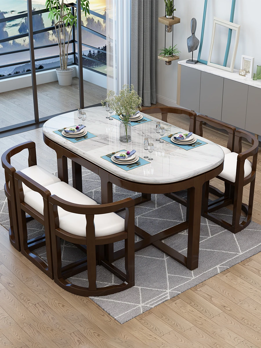 Modern Minimalist Solid Wood Dining Table Set for Small Spaces - Rectangular Marble Top, Stylish and Space-Saving, Perfect for Home Use