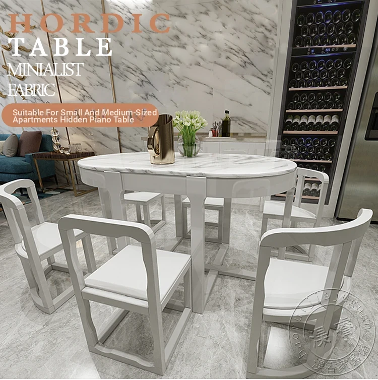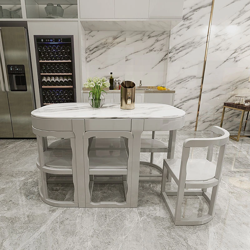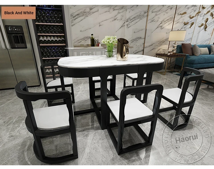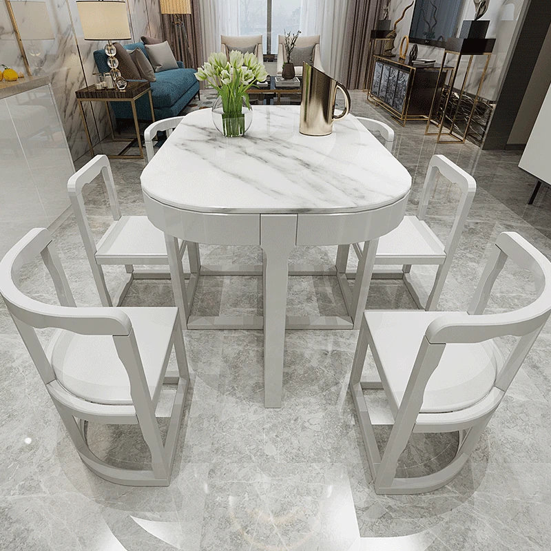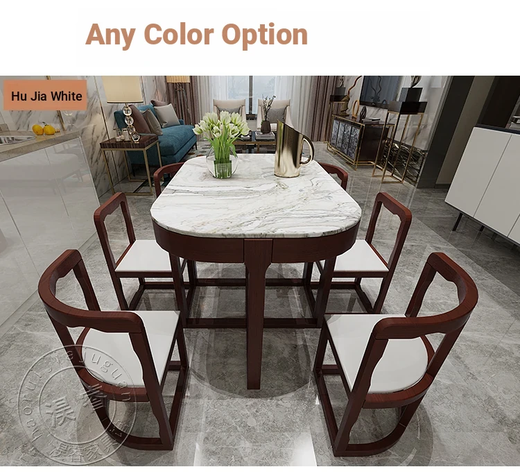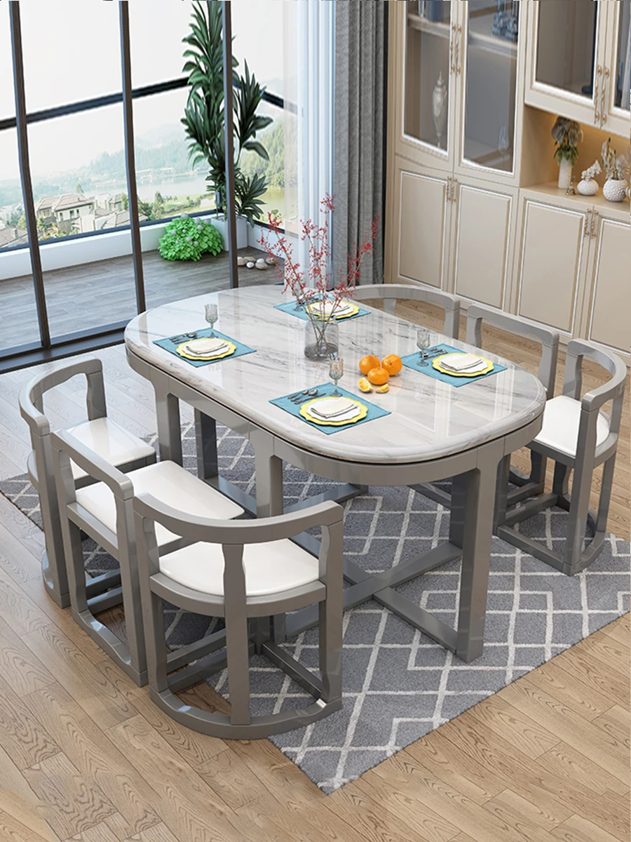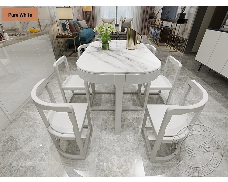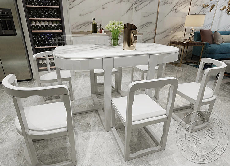 Modern Minimalist Solid Wood Dining Table Set for Small Spaces - Rectangular Marble Top, Stylish and Space-Saving, Perfect for Home Use