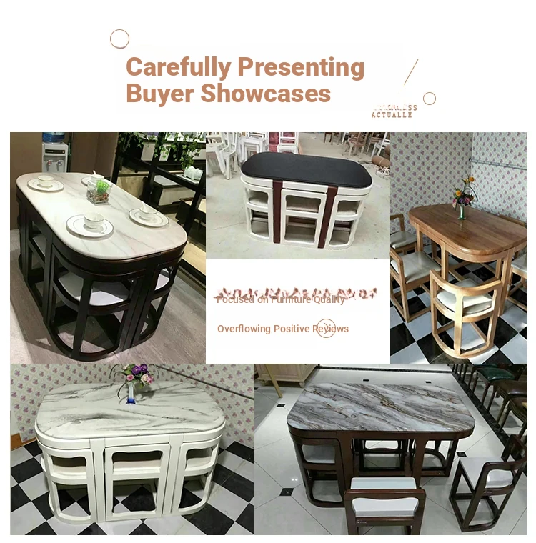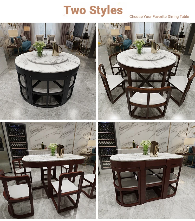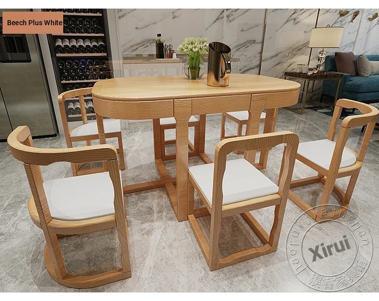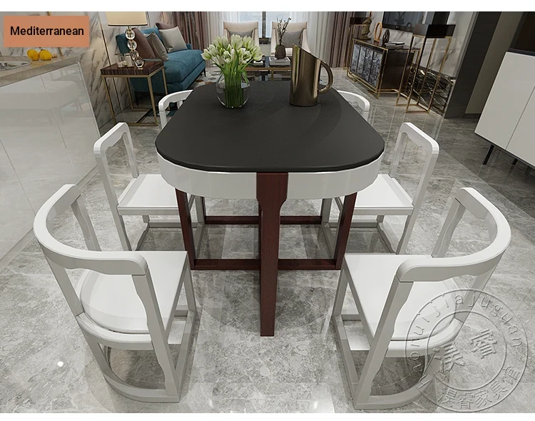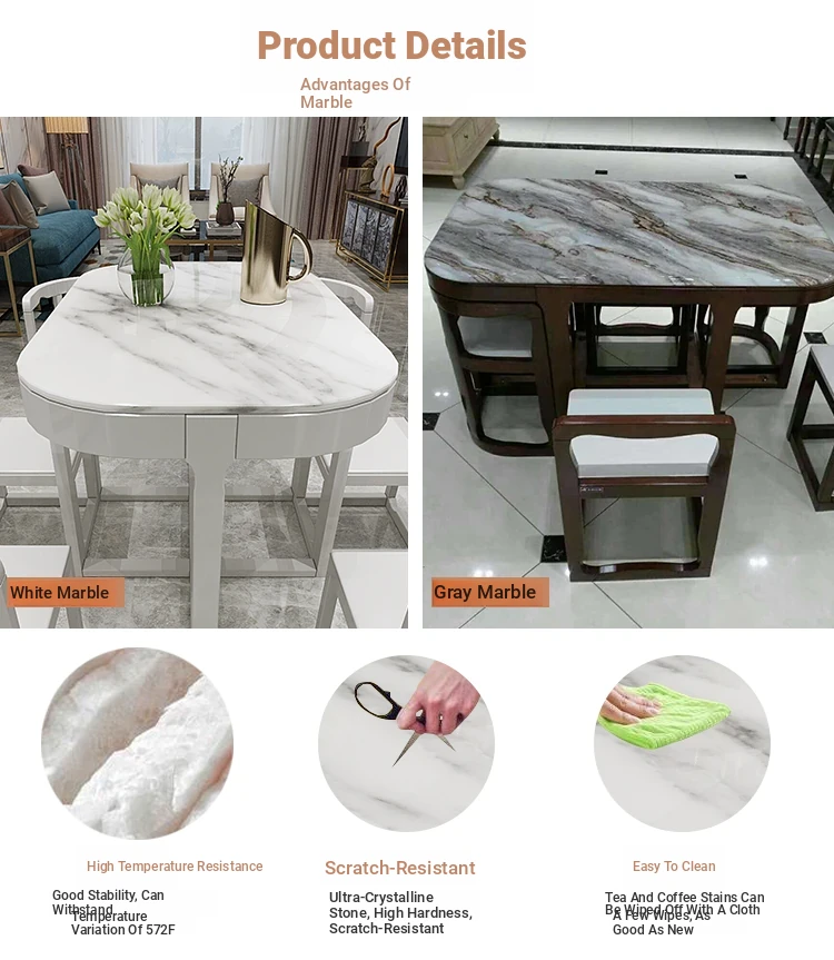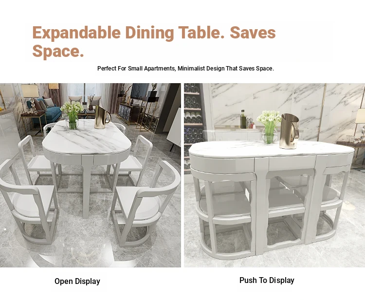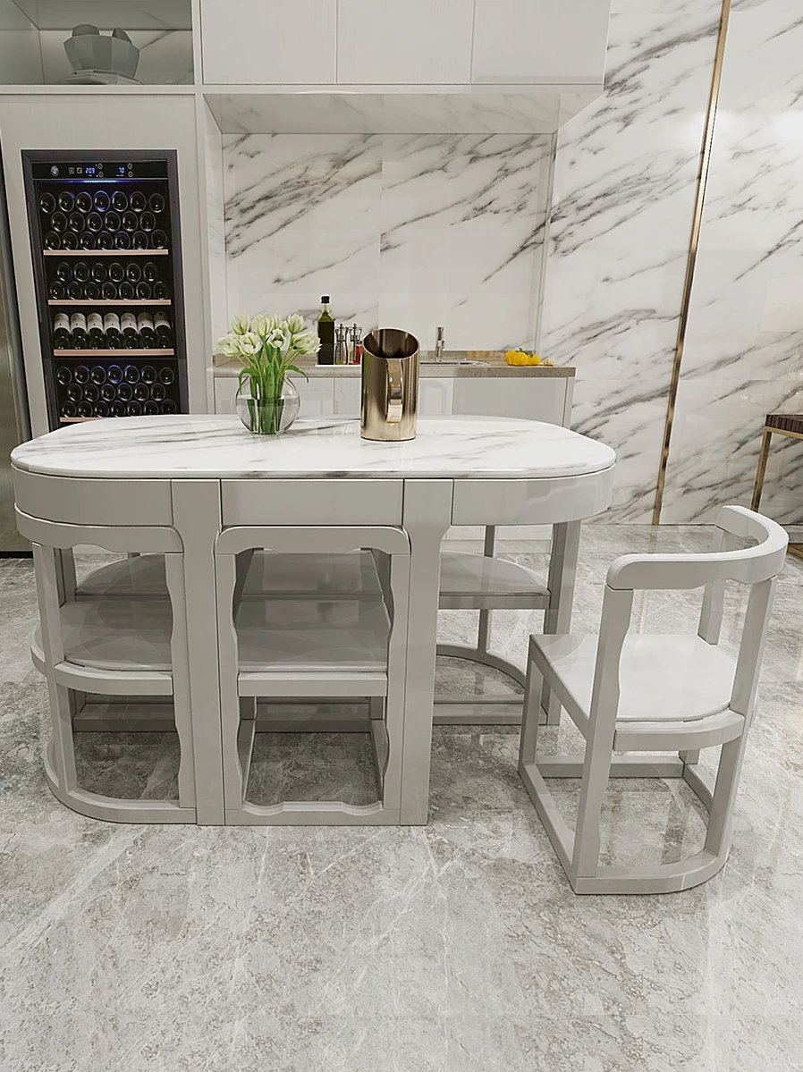 Modern Minimalist Solid Wood Dining Table Set for Small Spaces - Rectangular Marble Top, Stylish and Space-Saving, Perfect for Home Use