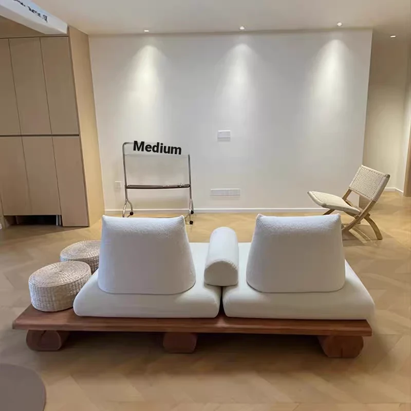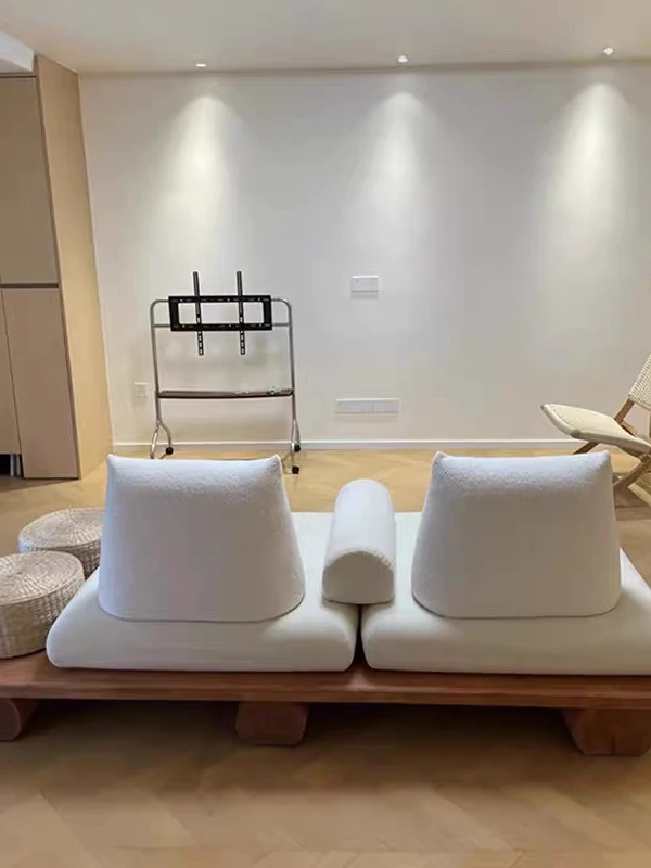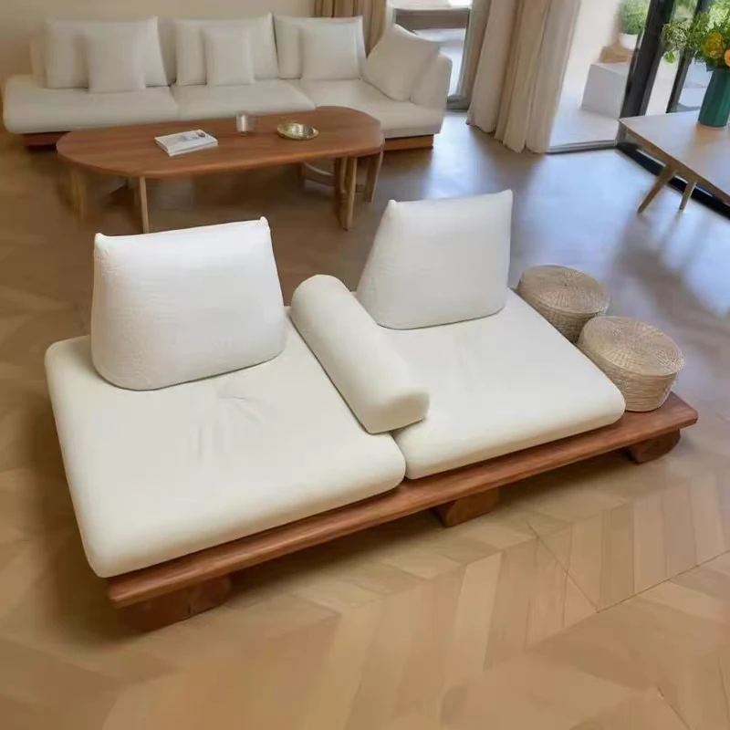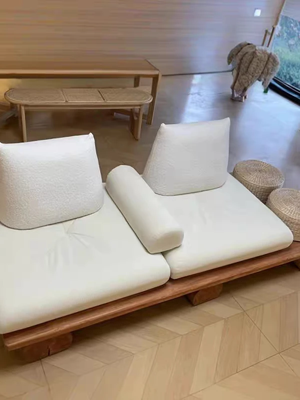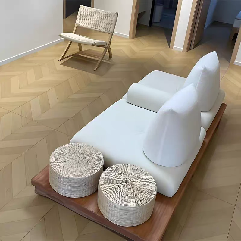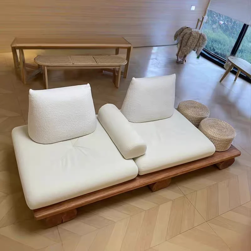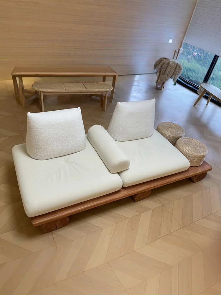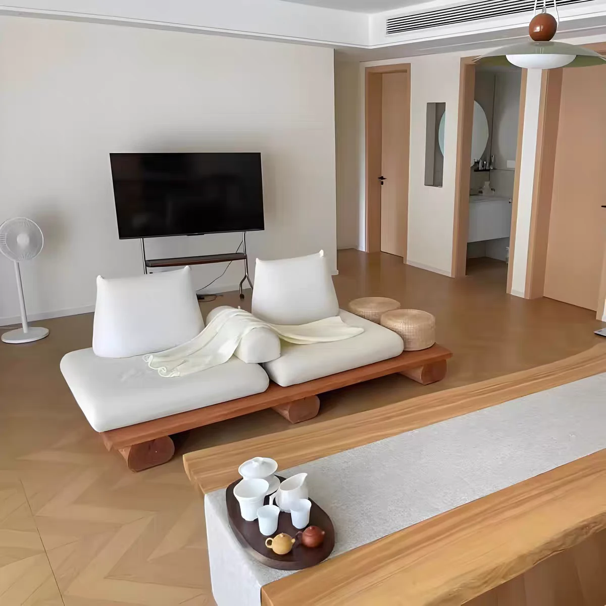 "Modern Wobble Sofa for Small Spaces - Tatami Style Solid Wood Sofa for Guesthouses and Hotels - Embrace the Wabi-Sabi Aesthetic with Natural Wooden Design"