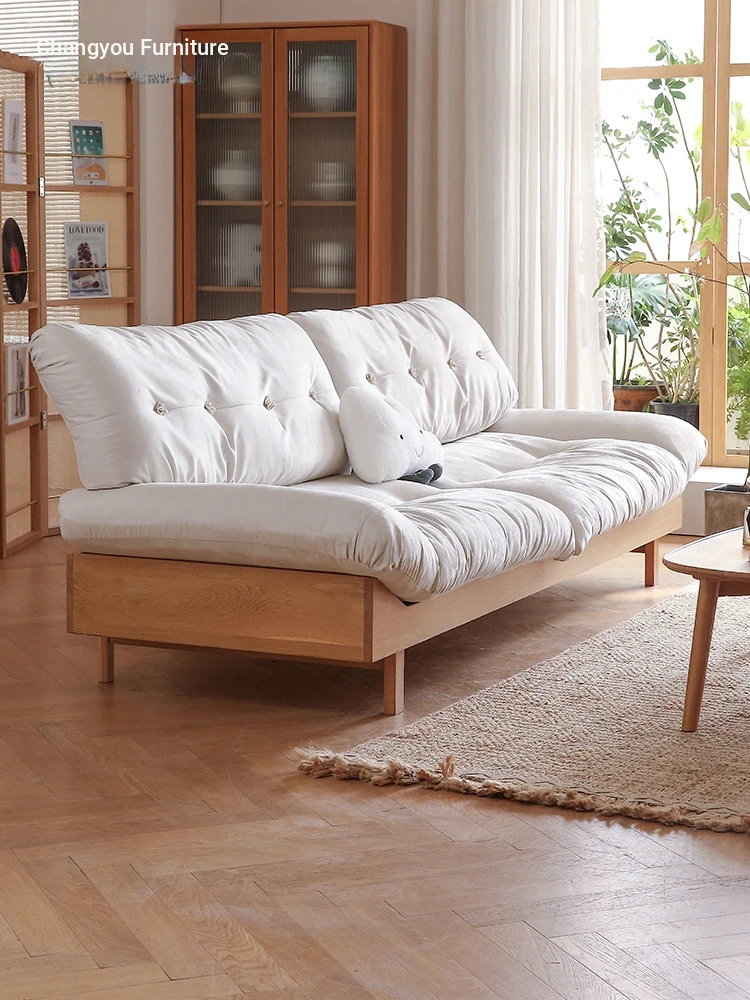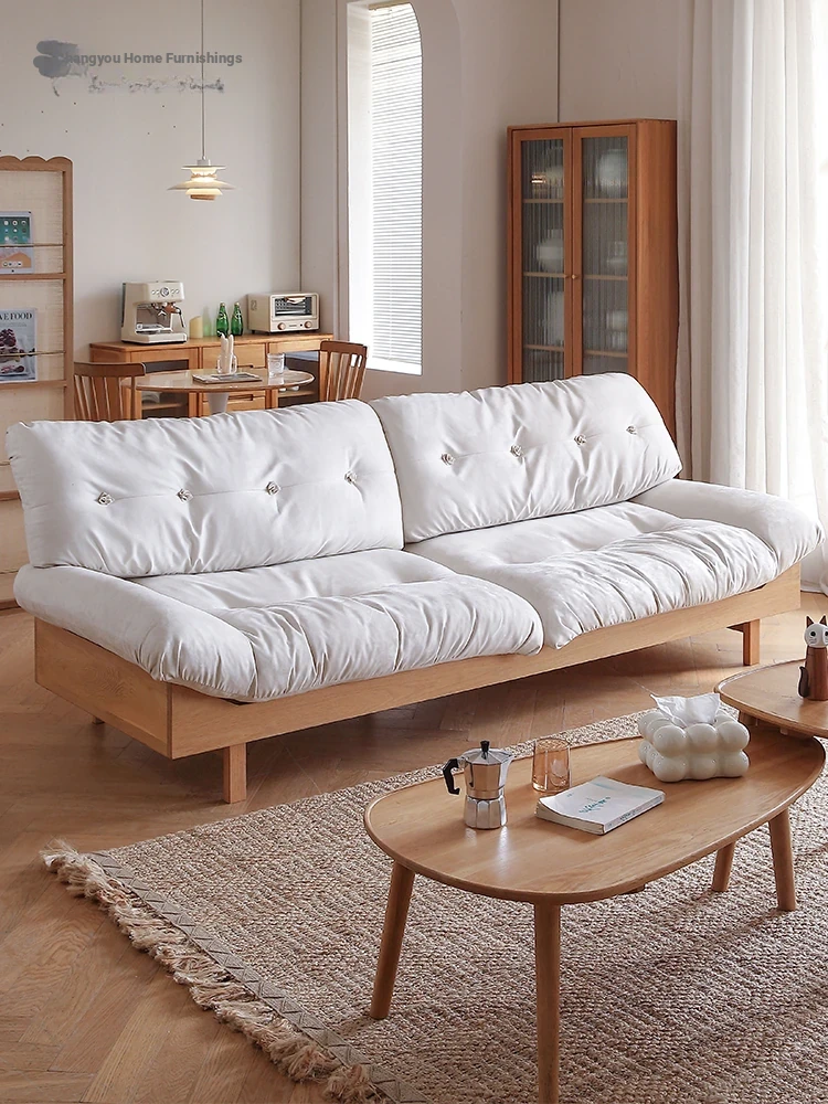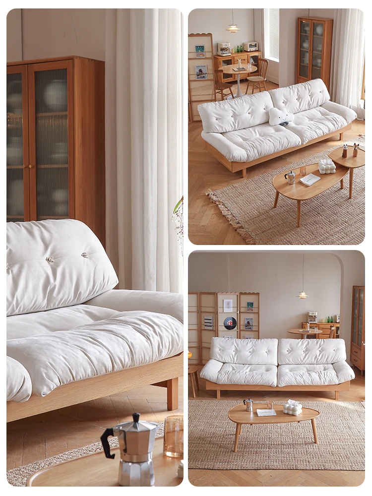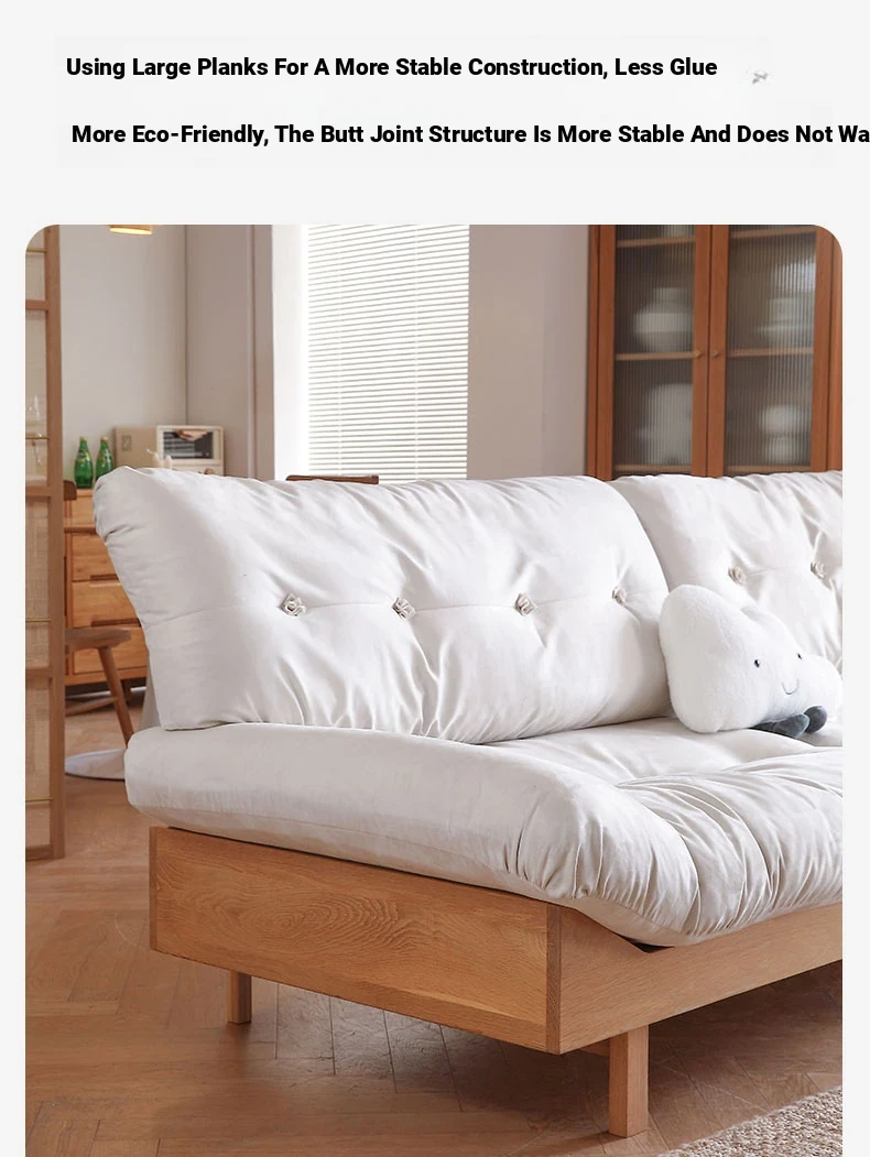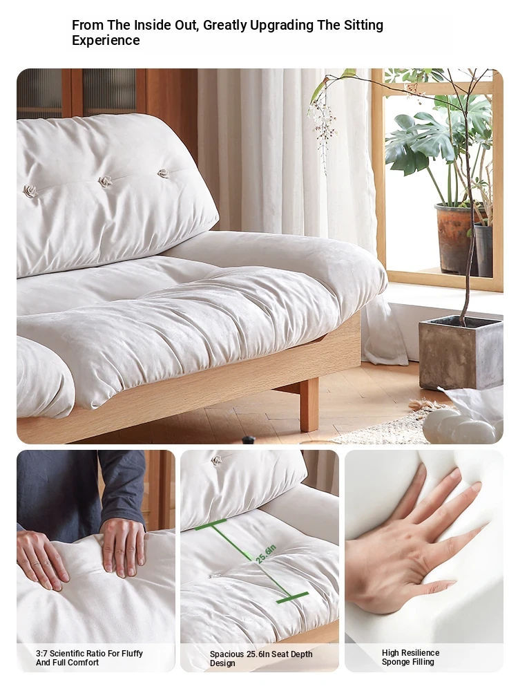 Natural Wood Cloud Sofa - White Oak Solid Wood Double Sofa for Small Spaces - Japanese Style Milano Fabric Couch for Cozy Living Rooms