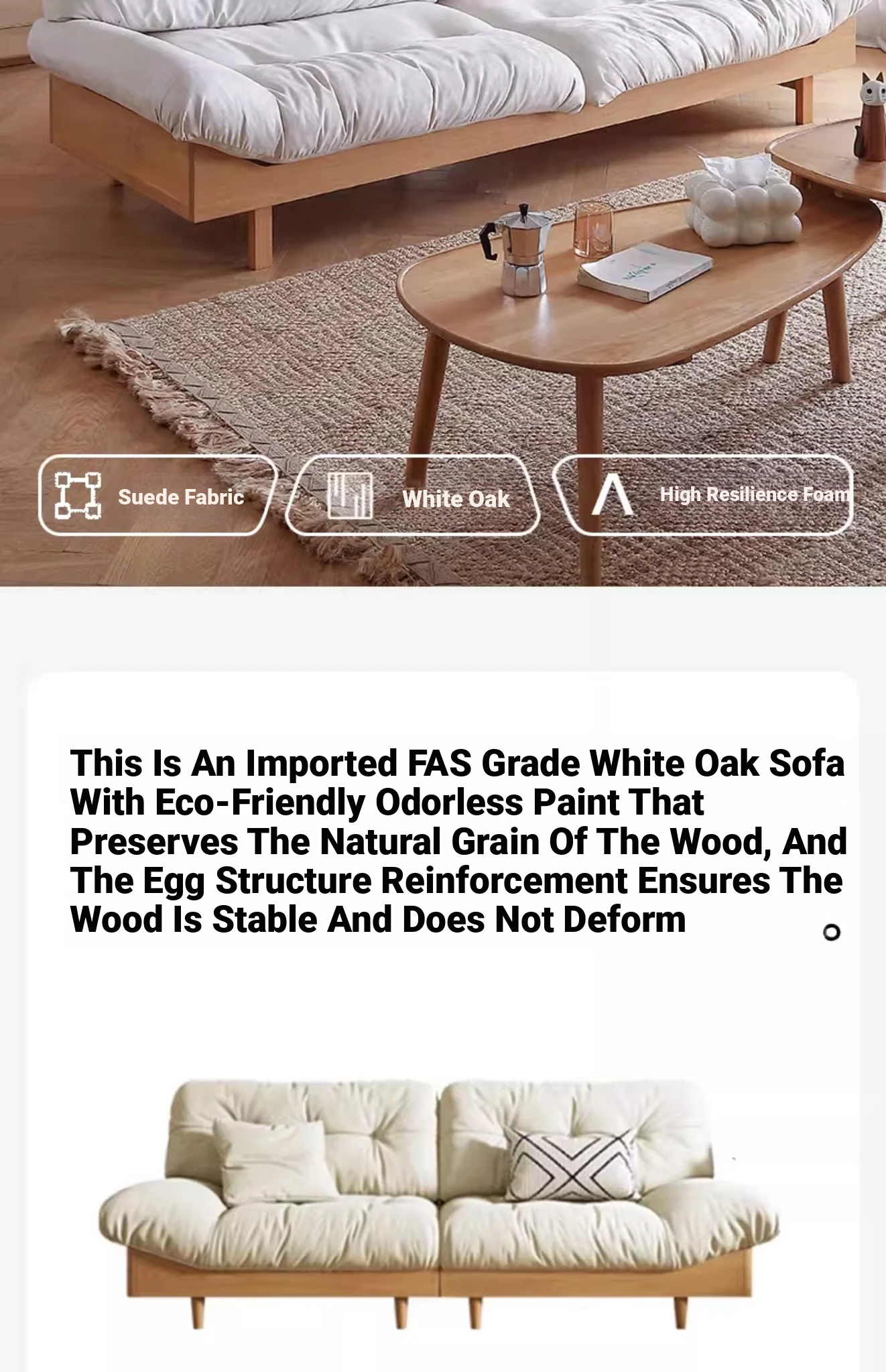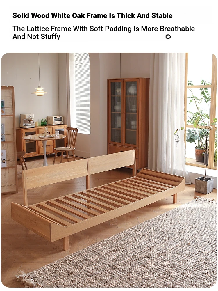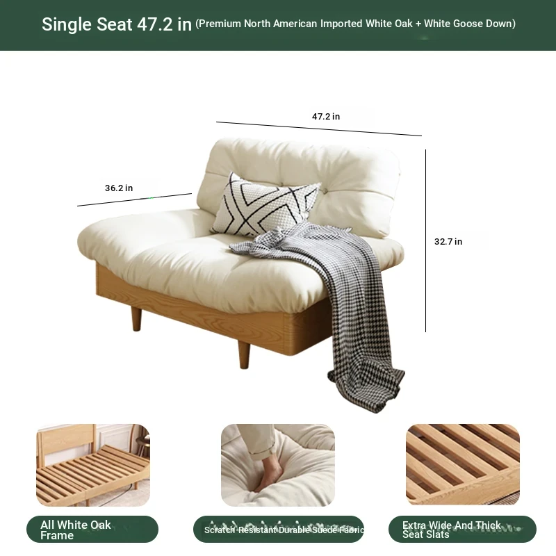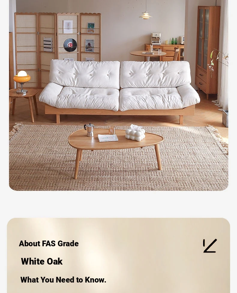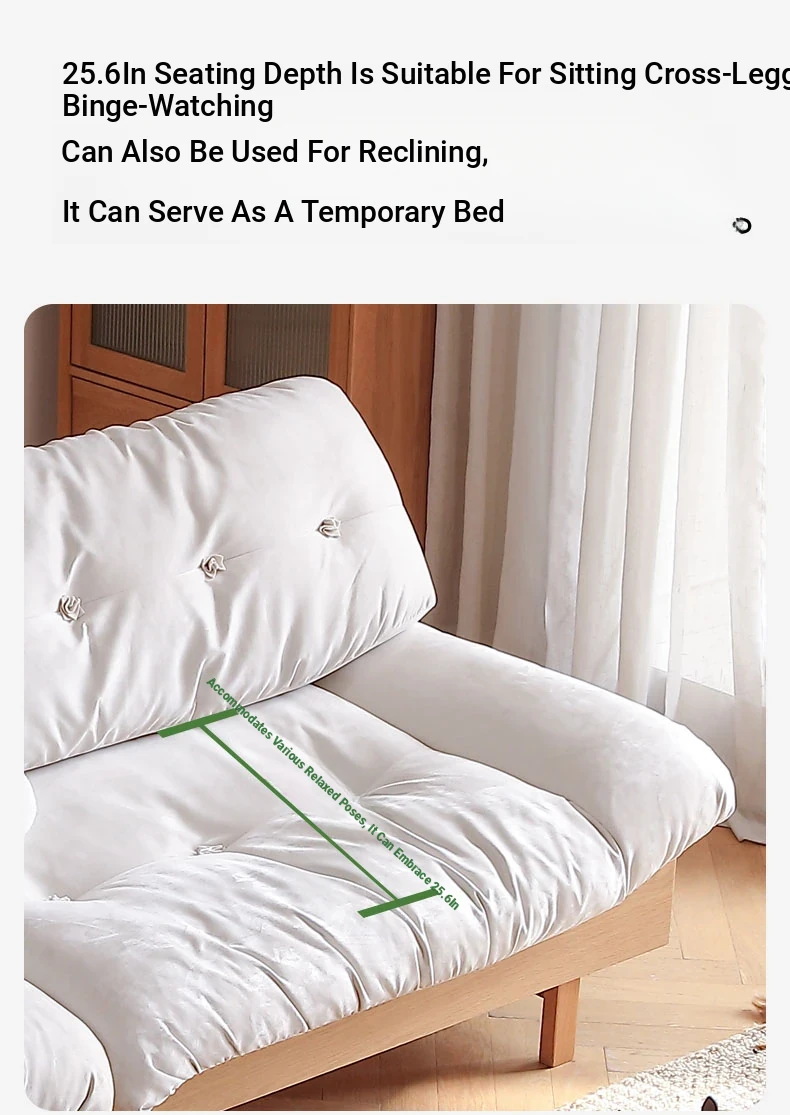 Natural Wood Cloud Sofa - White Oak Solid Wood Double Sofa for Small Spaces - Japanese Style Milano Fabric Couch for Cozy Living Rooms