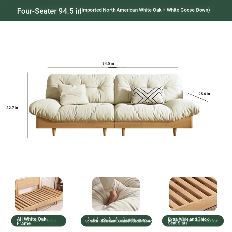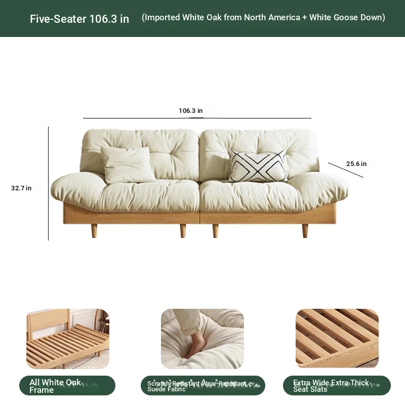 Cloud sofa five people 106.30 ins [White Oak + white goose down]]