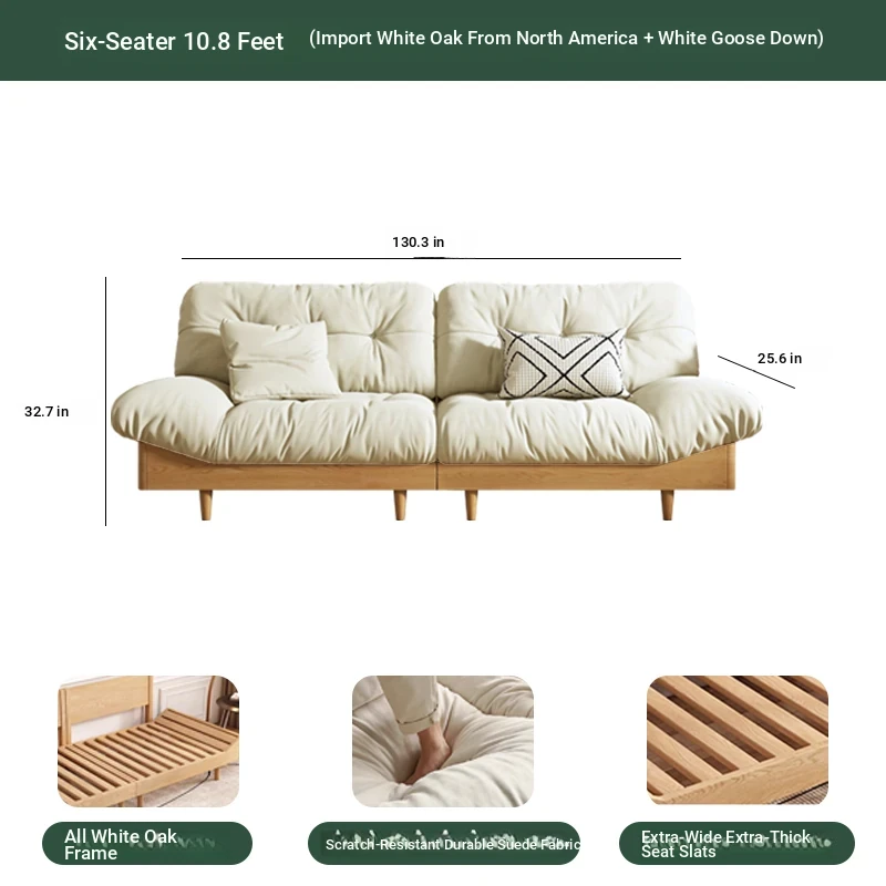 Cloud sofa six people 129.92 ins [White Oak + white goose down]]