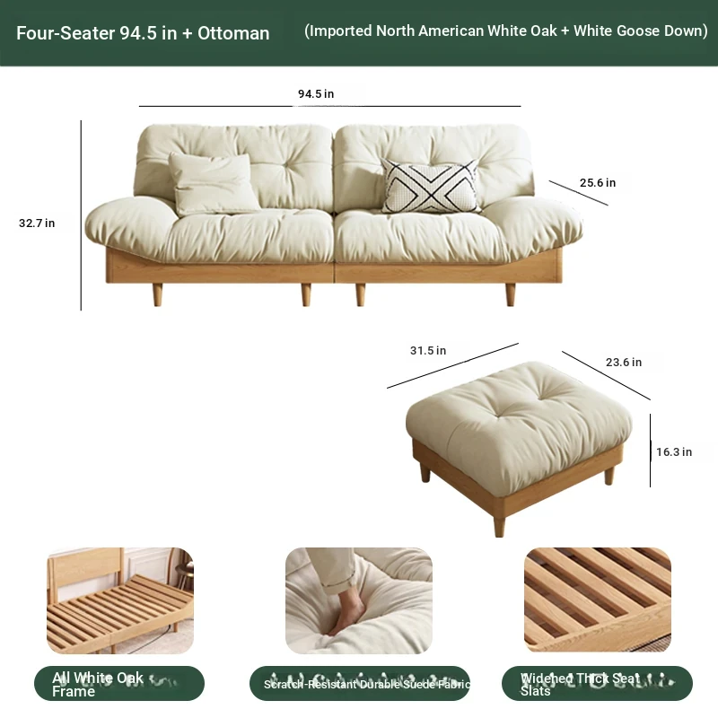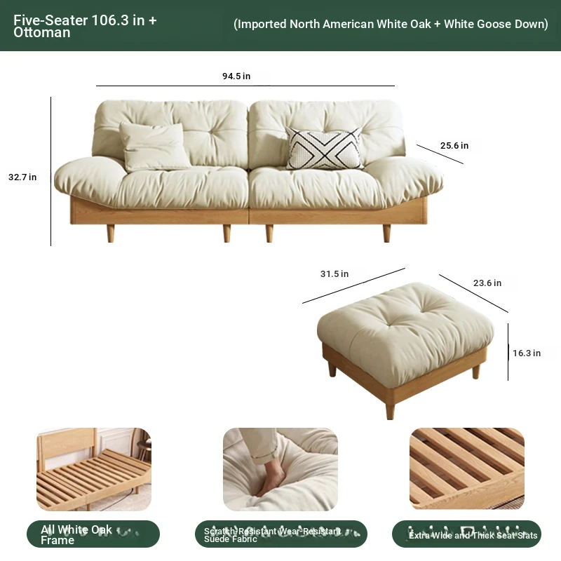 Cloud sofa five people 106.30 ins + pedal [White Oak + white goose down]]