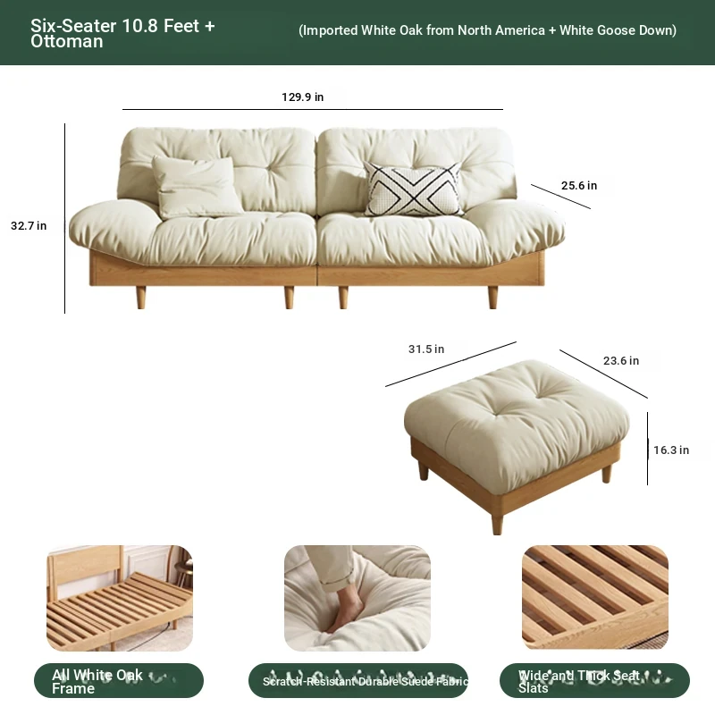 Cloud sofa six people 129.92 ins + pedal [White Oak + white goose down]]