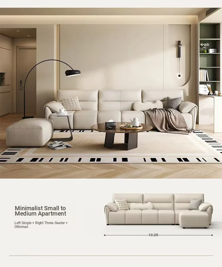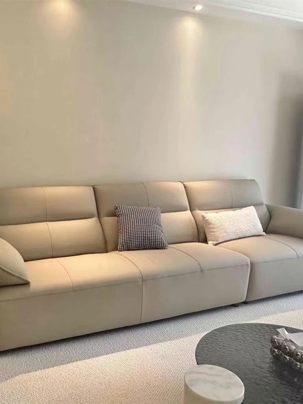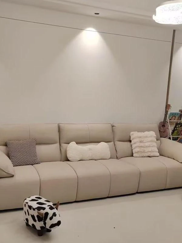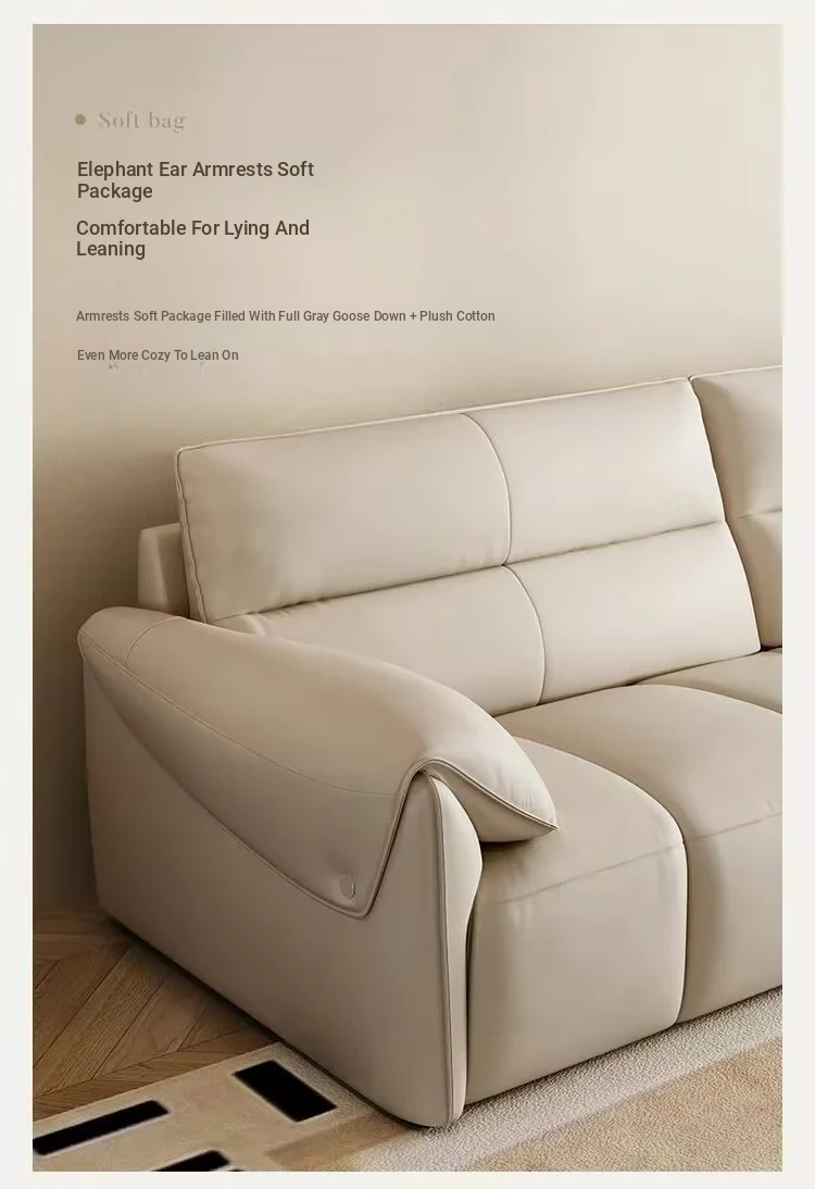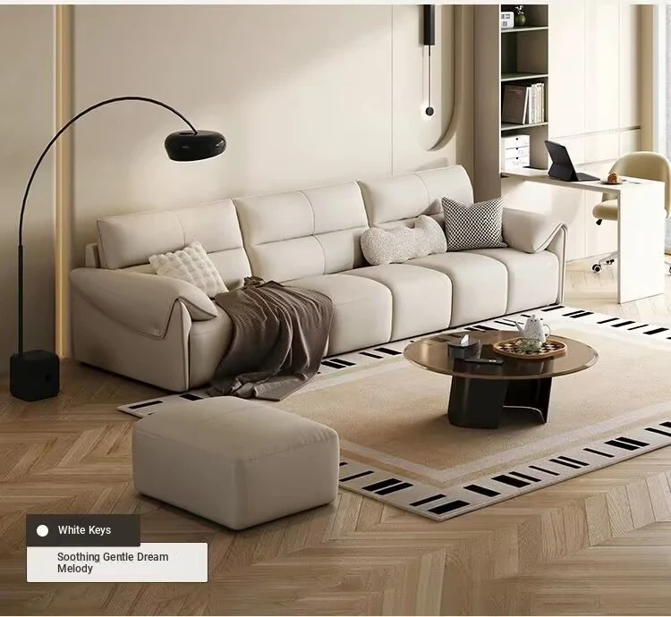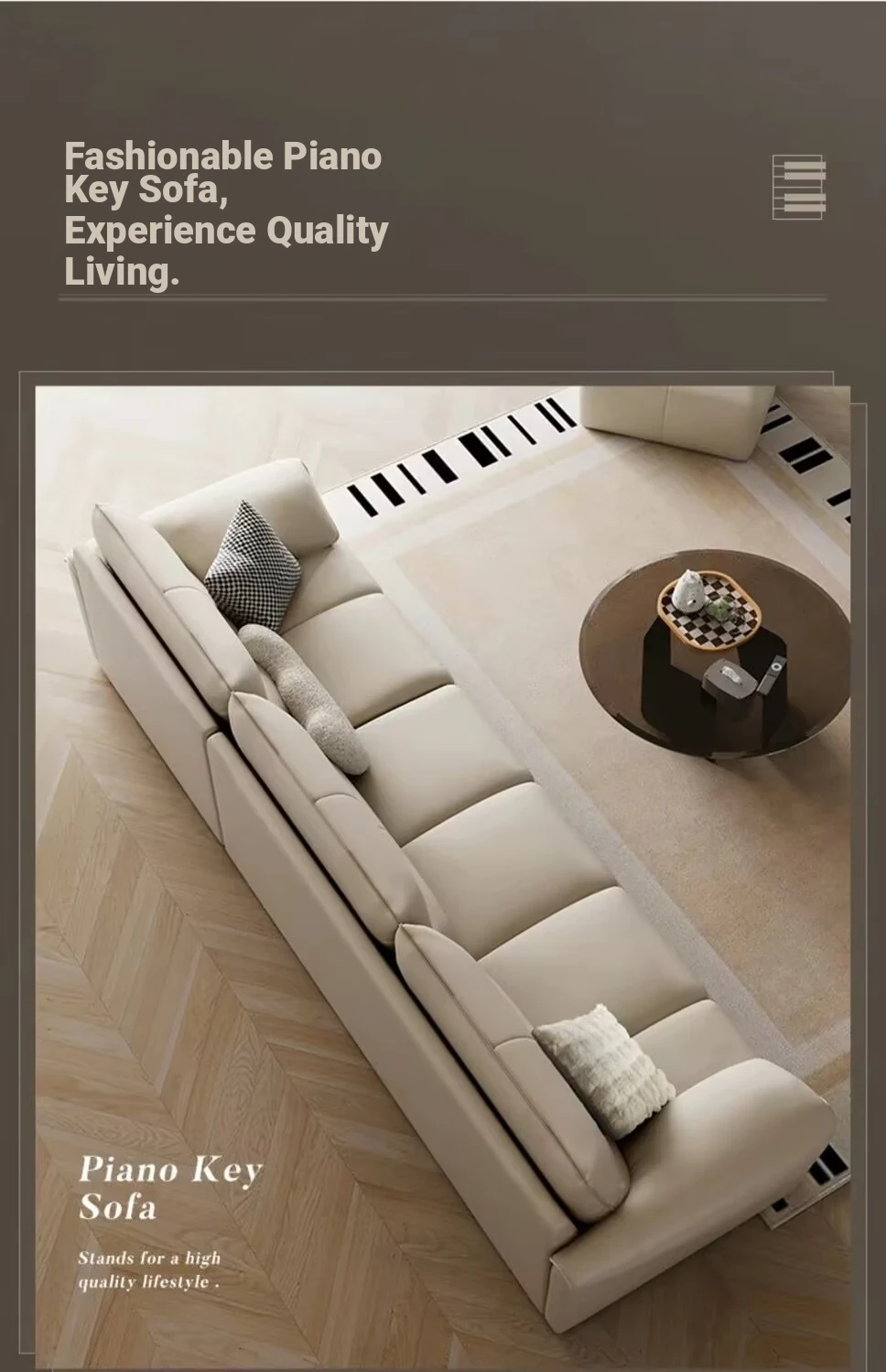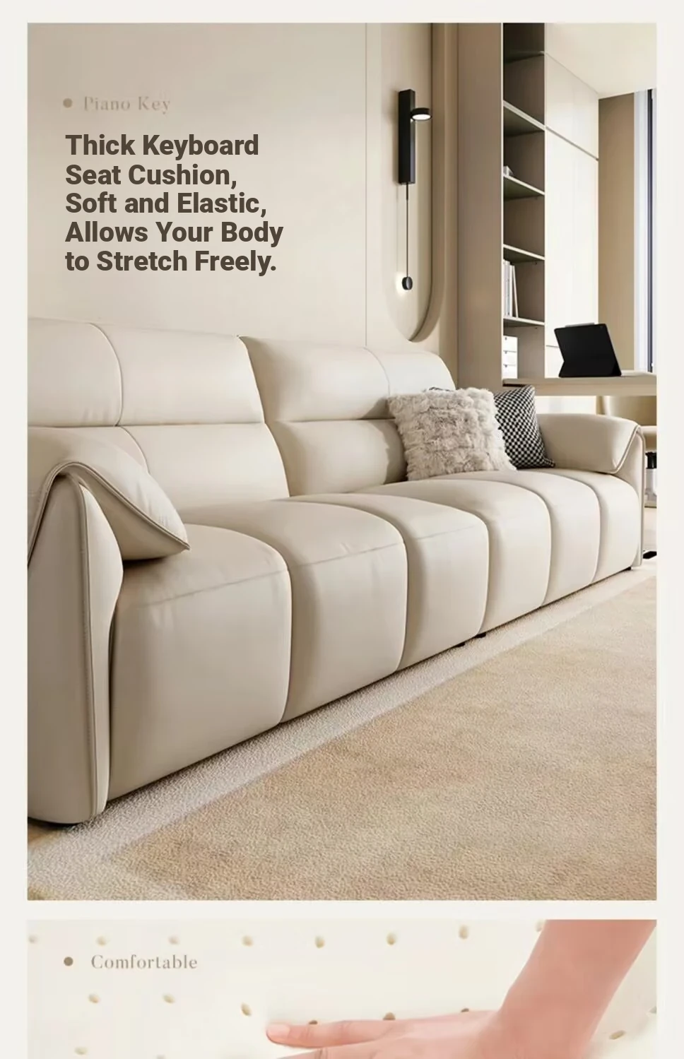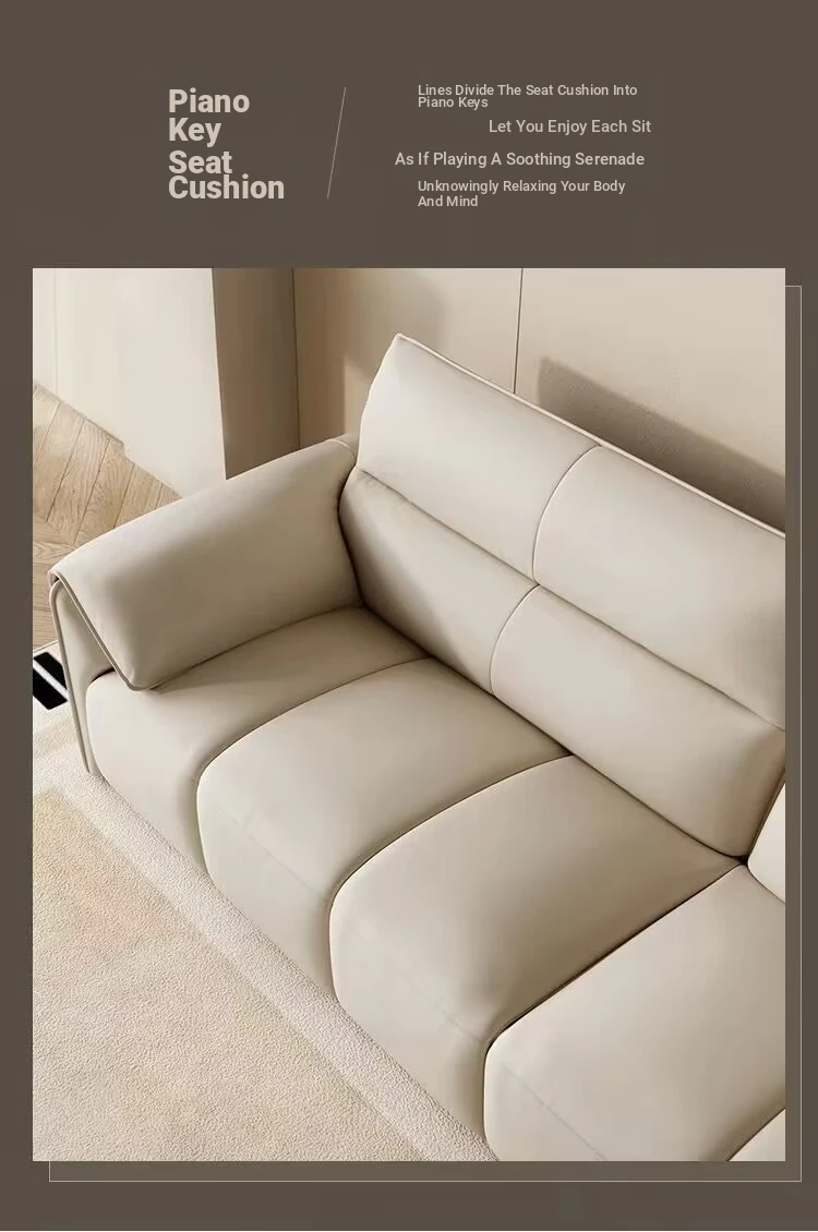 New Elephant Ear No-Solvent Genuine Leather Sofa for Living Room - Minimalist Cream Piano Key Design Perfect for Small Spaces