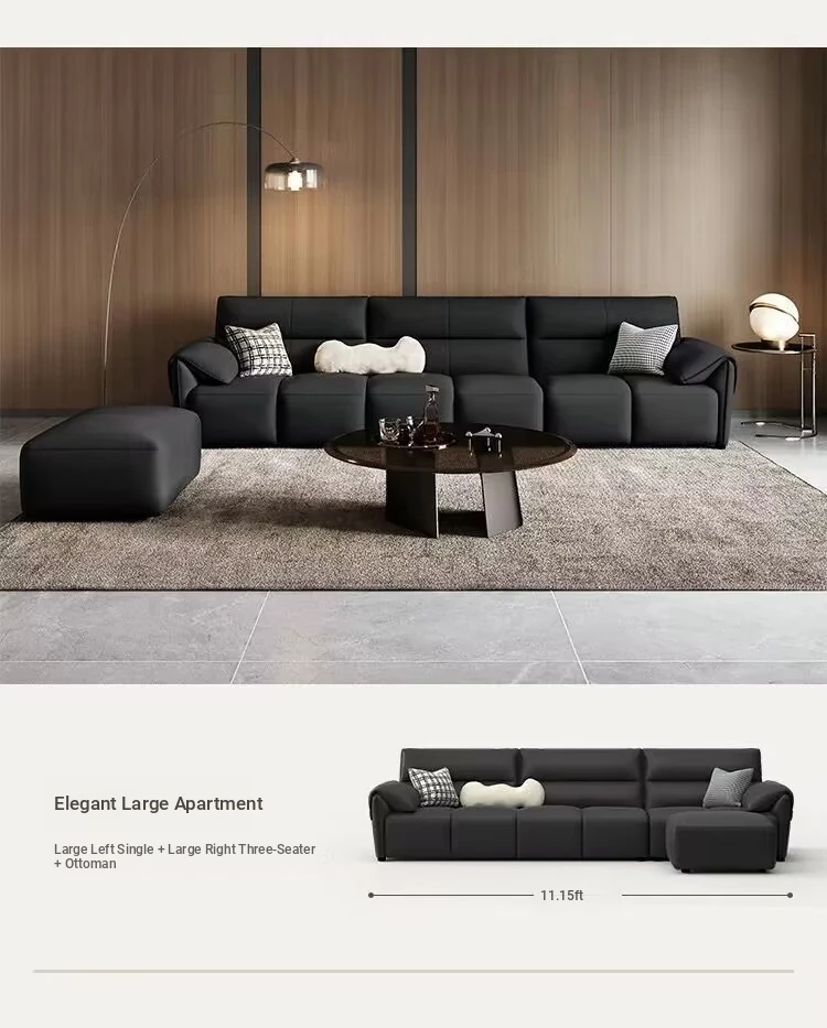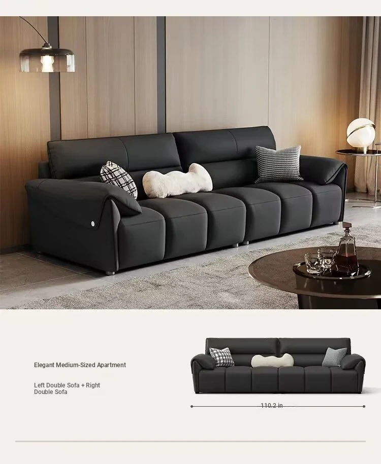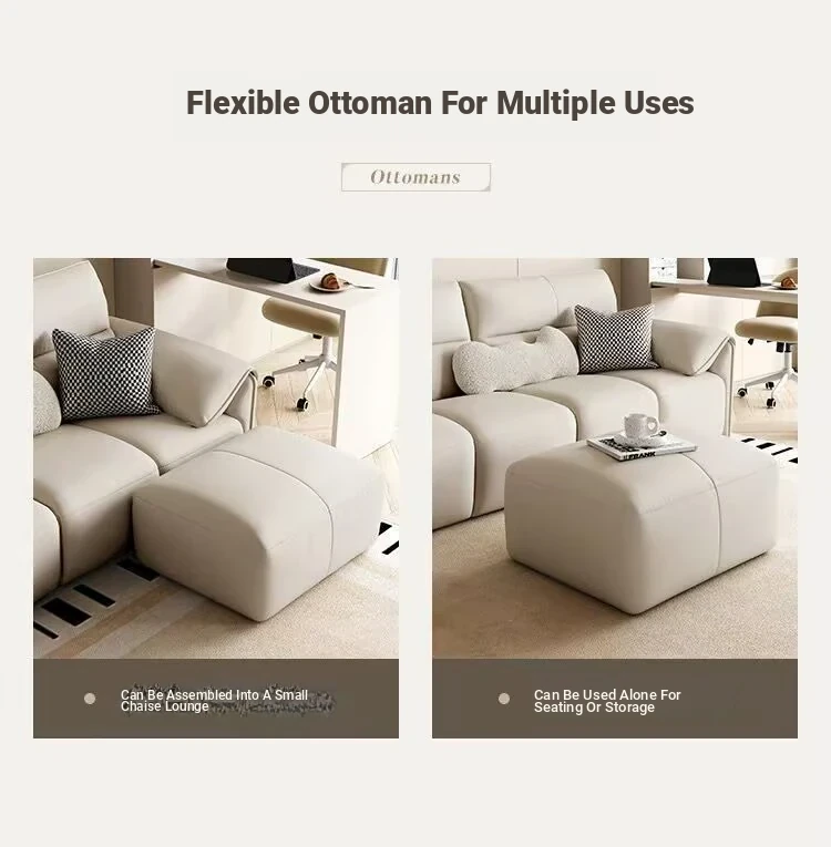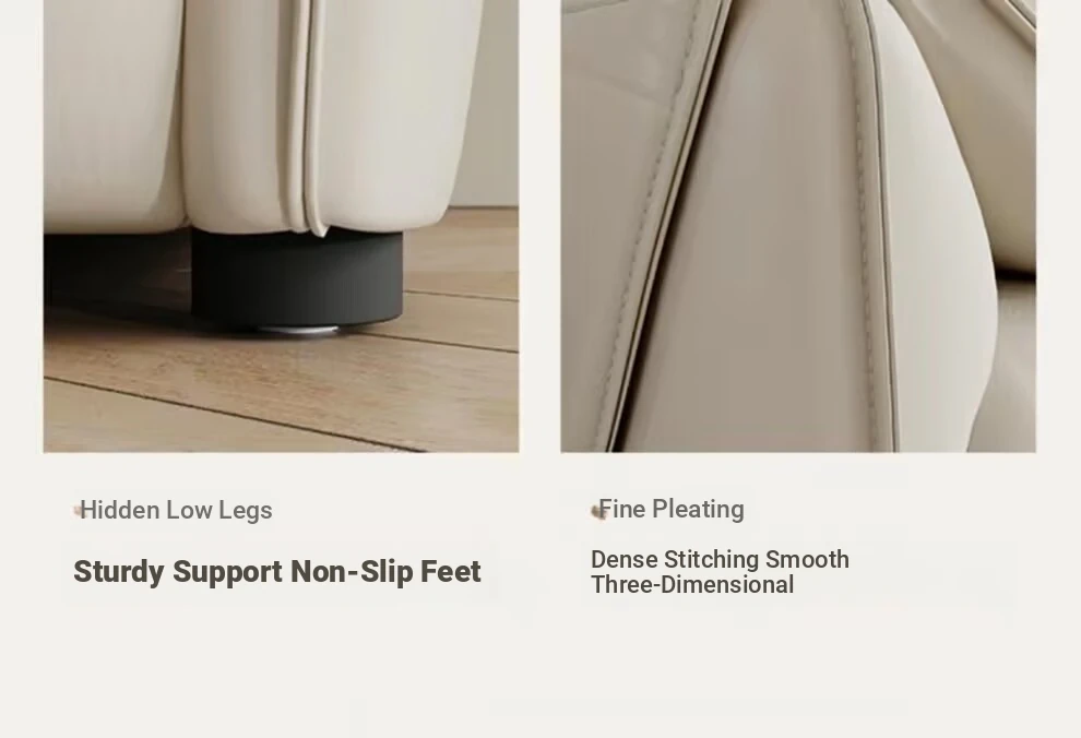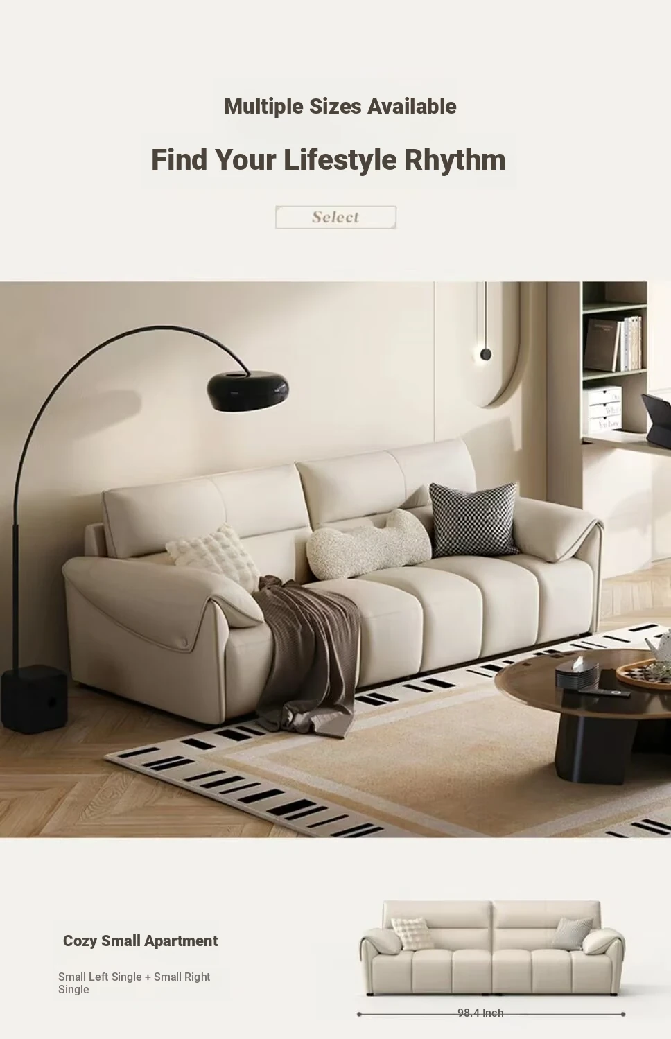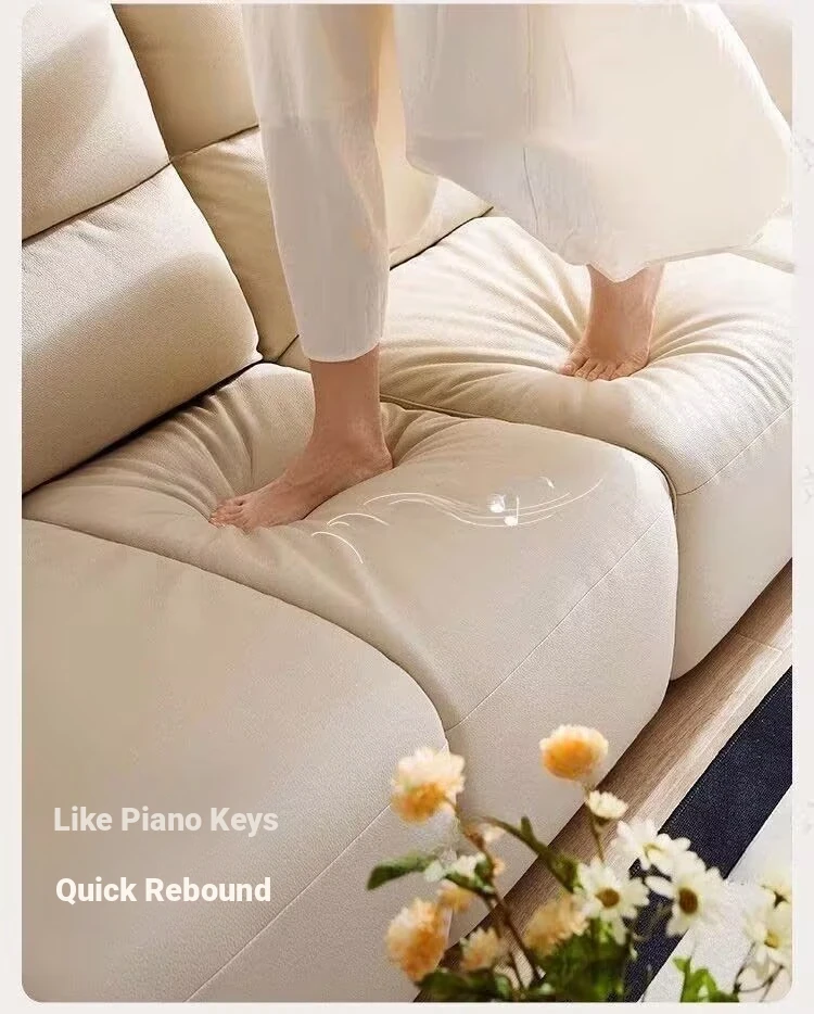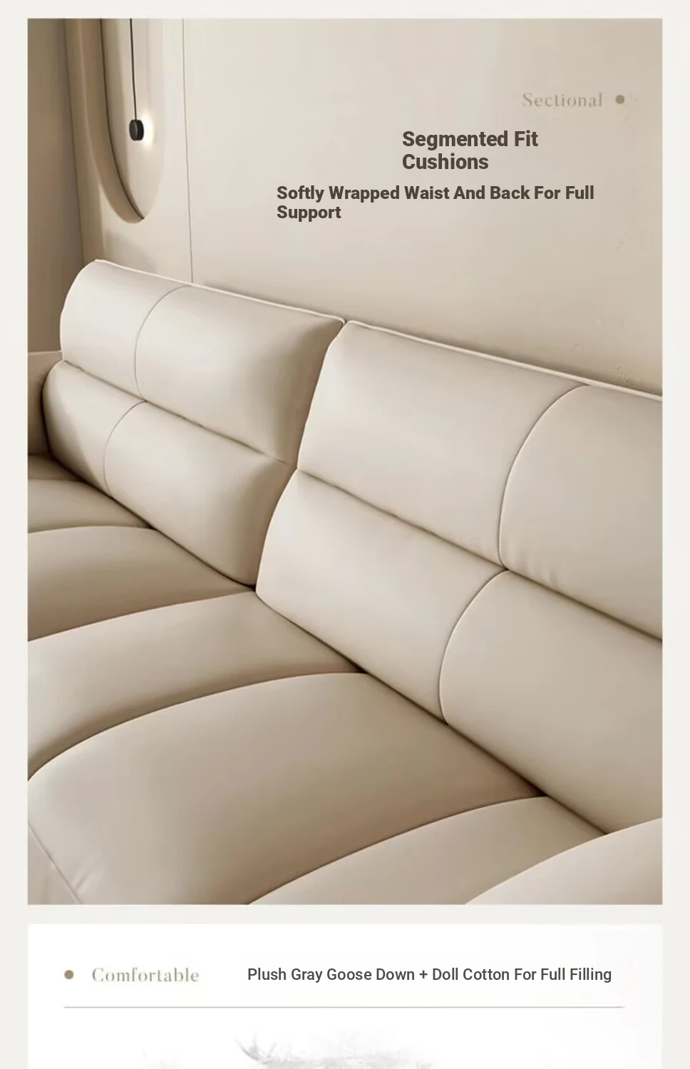New Elephant Ear No-Solvent Genuine Leather Sofa for Living Room - Minimalist Cream Piano Key Design Perfect for Small Spaces