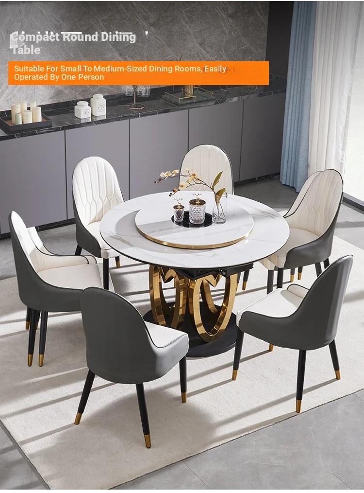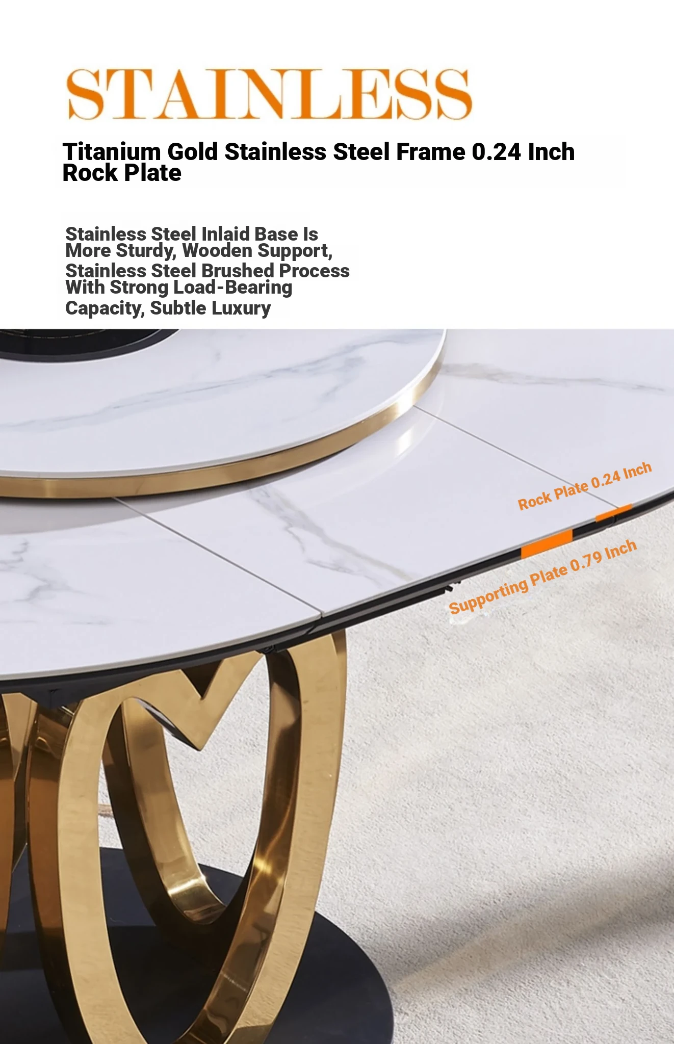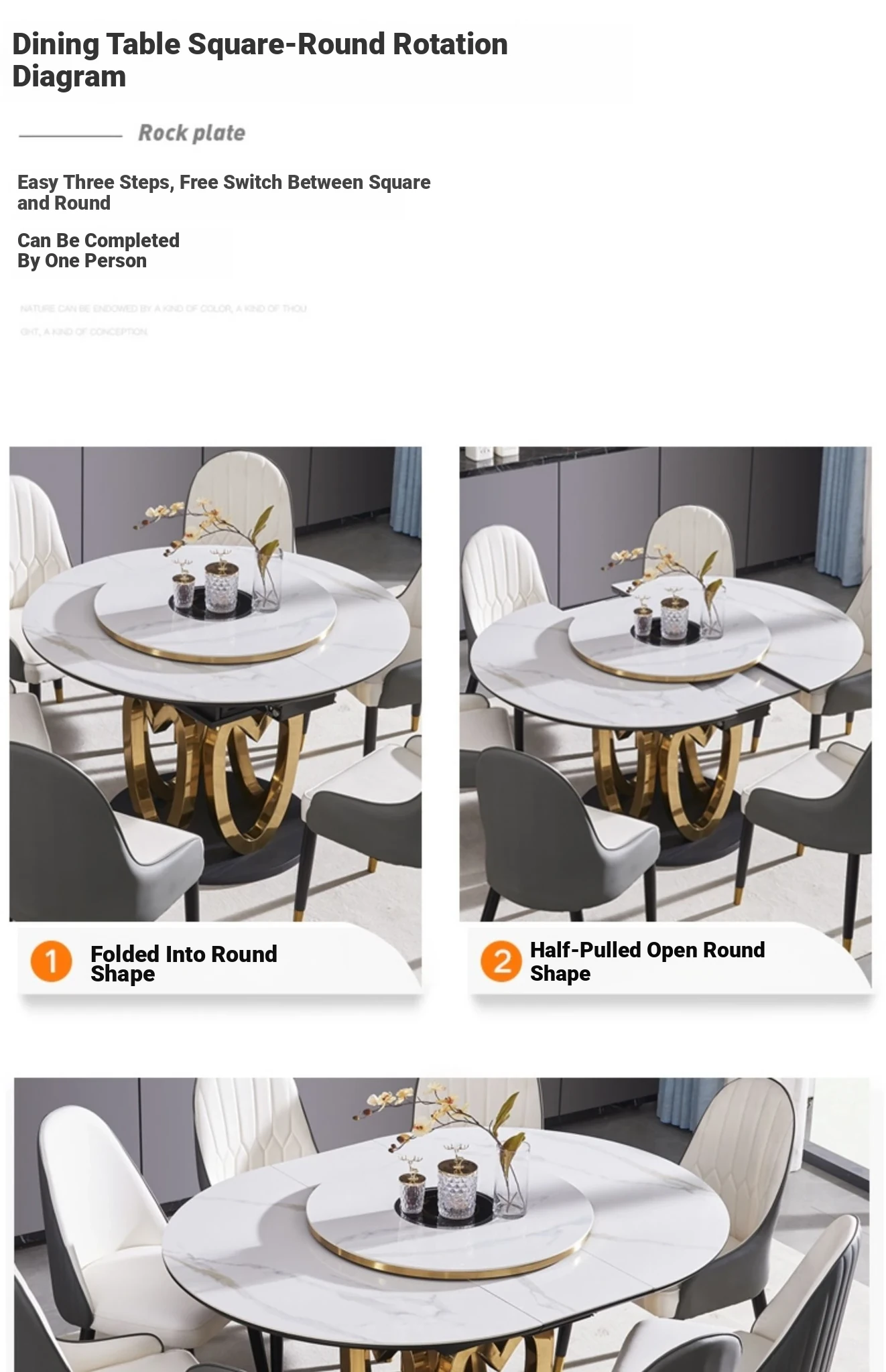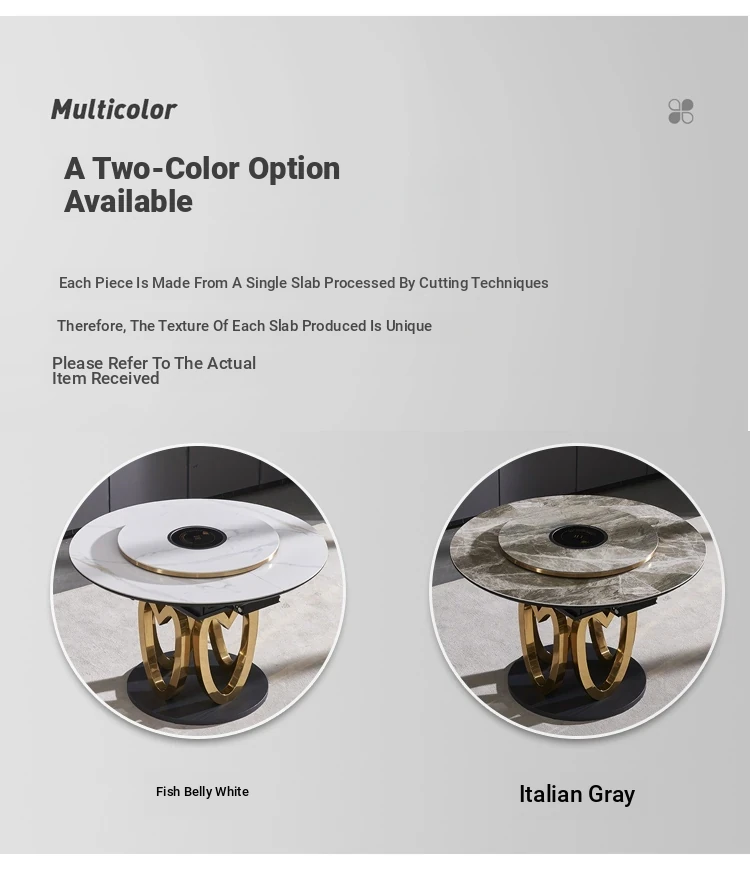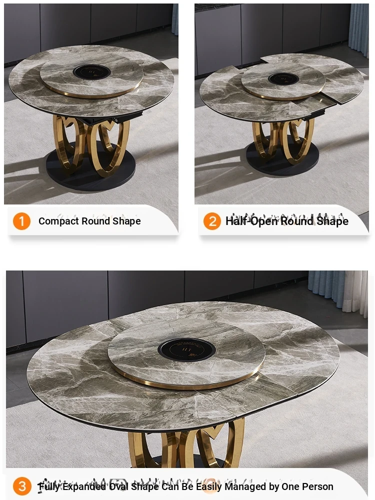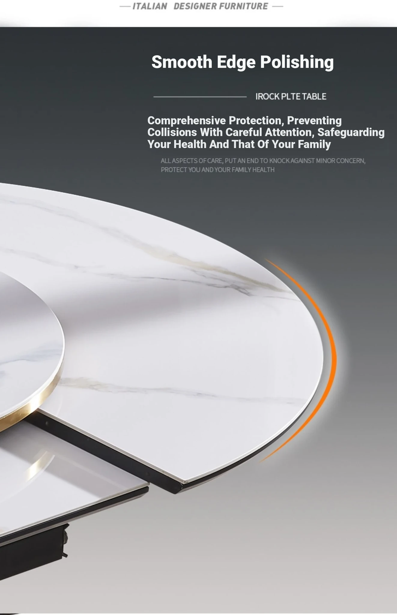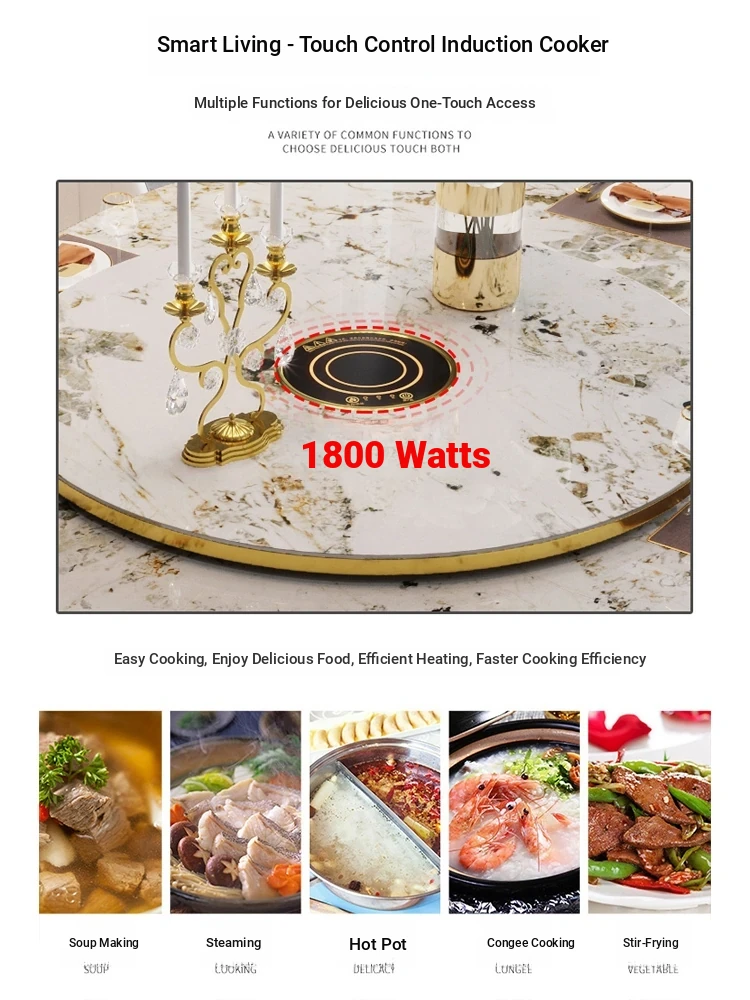 Oval Rock Plate Dining Table - Convertible Round Design with Lazy Susan, Expandable Luxury Hot Pot Table with Induction Cooker, Multi-functional Dining Experience