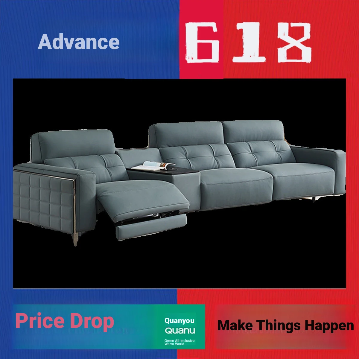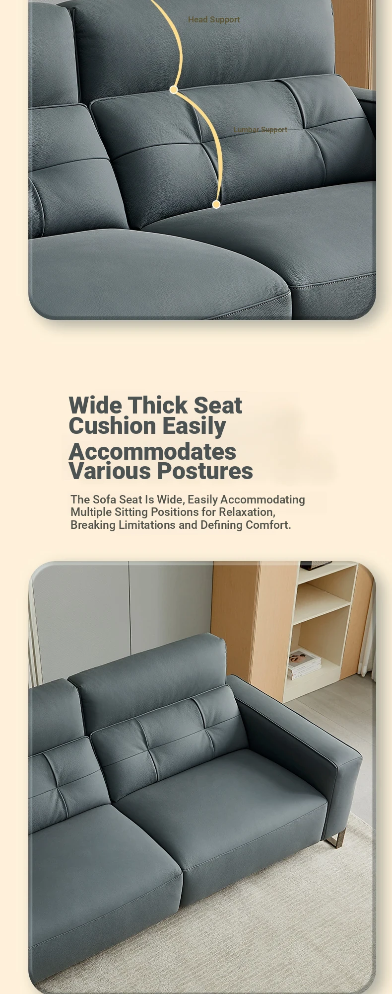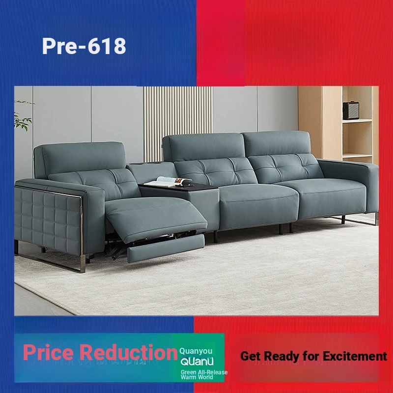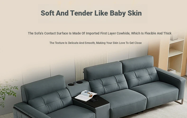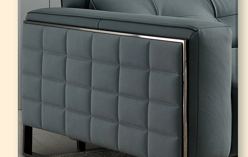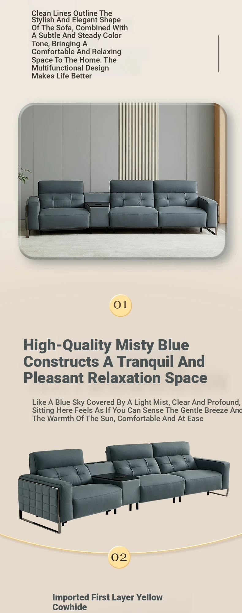 Qianyou Furniture 20275 Modern Minimalist Imported Top-Grain Leather Sofa in Misty Blue with Straight Recline Function - Elevate Your Living Space with Style and Comfort!