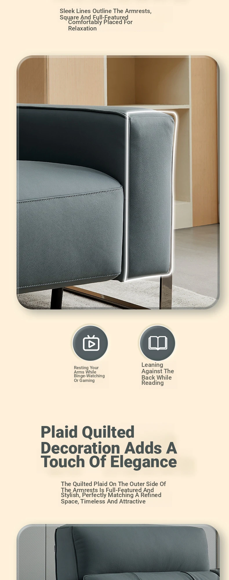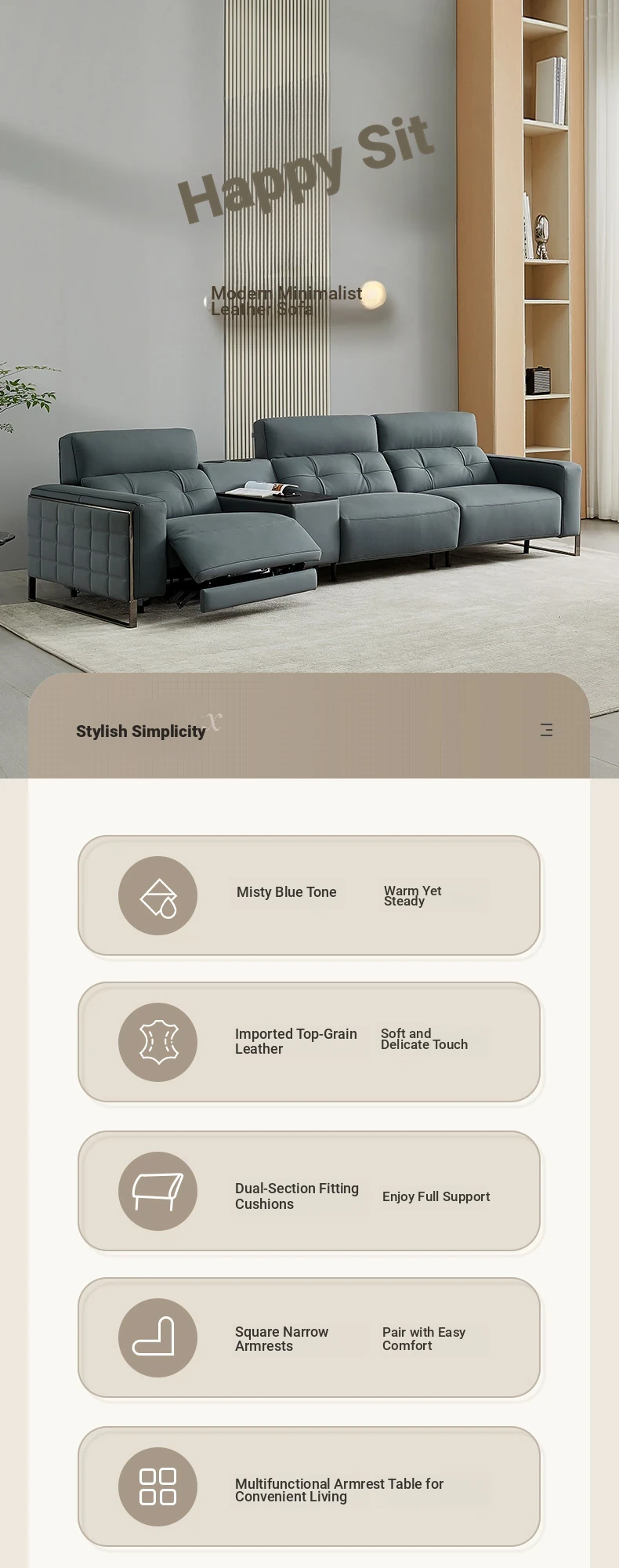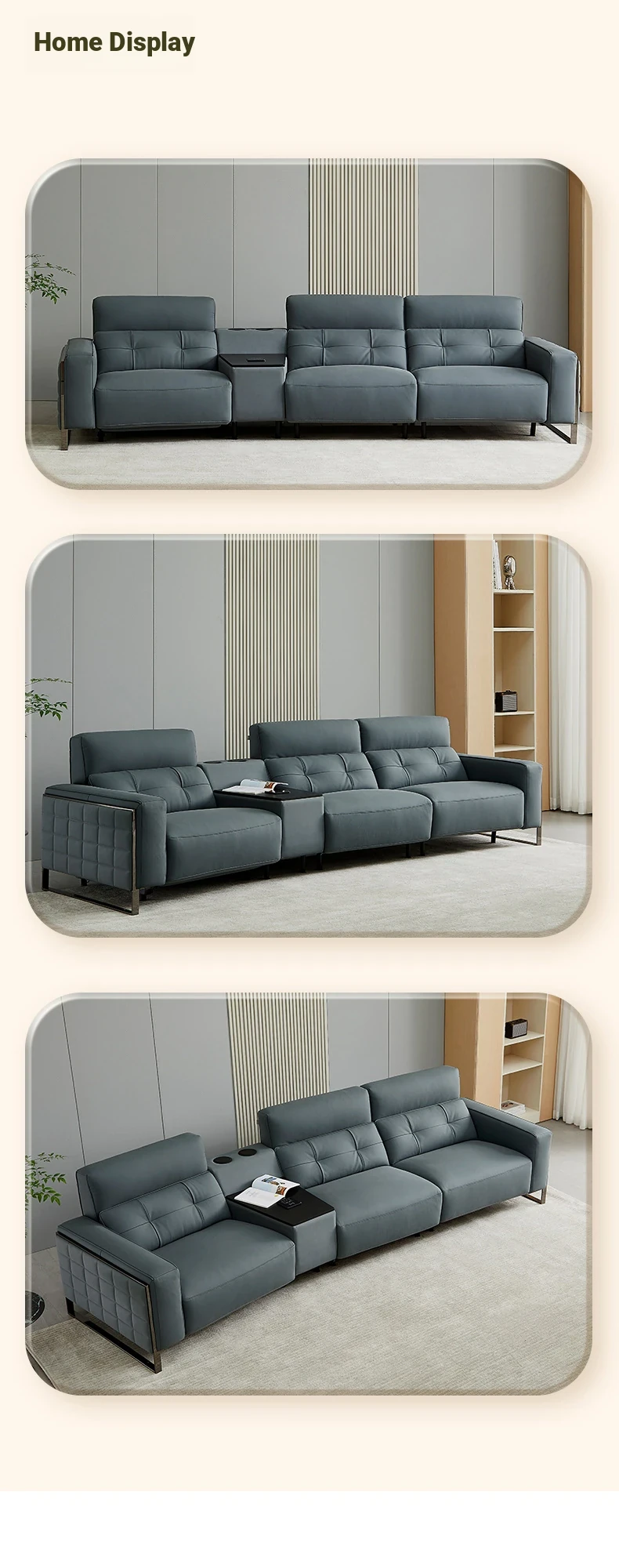 Qianyou Furniture 20275 Modern Minimalist Imported Top-Grain Leather Sofa in Misty Blue with Straight Recline Function - Elevate Your Living Space with Style and Comfort!