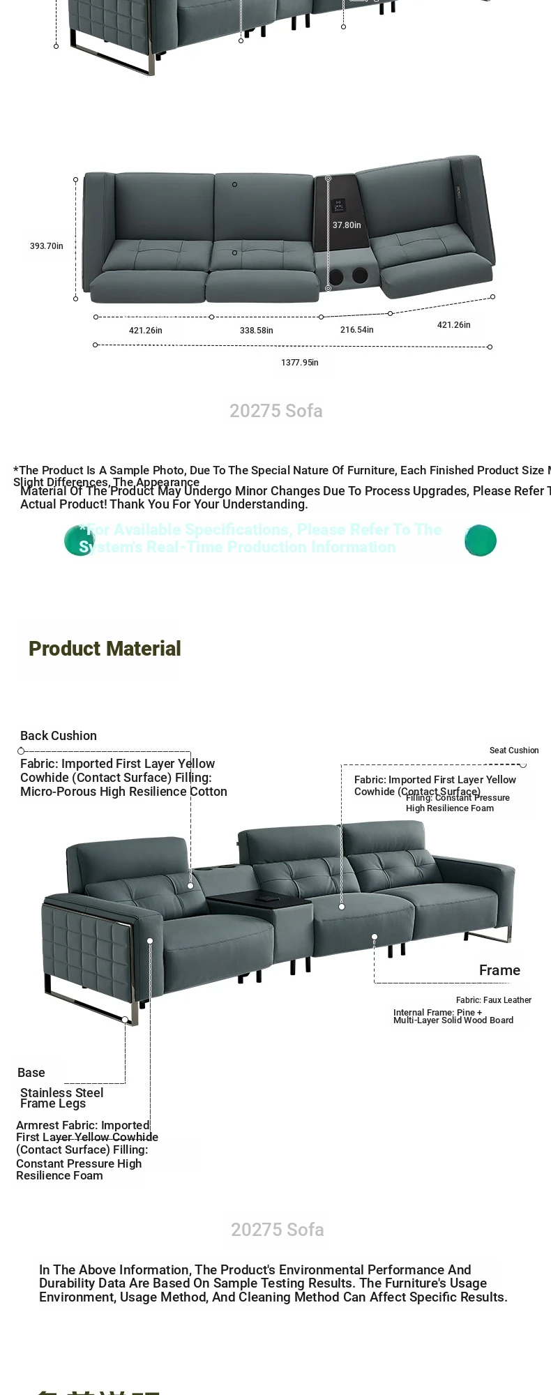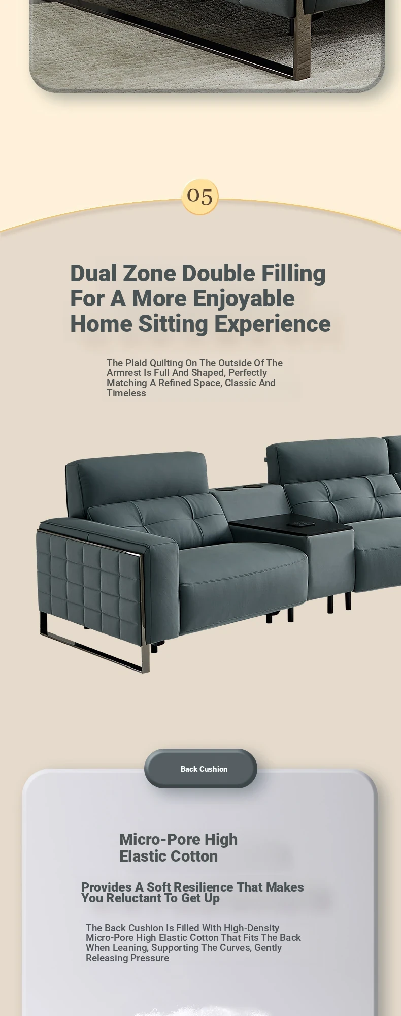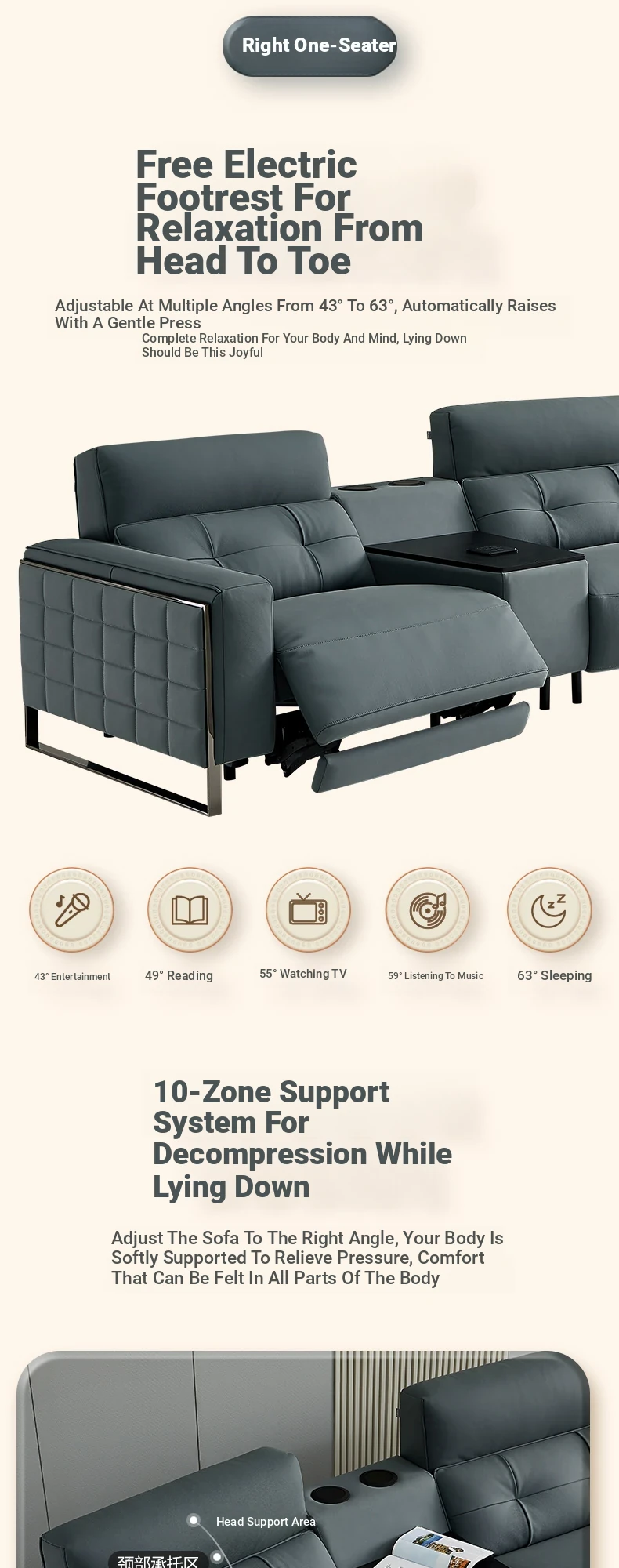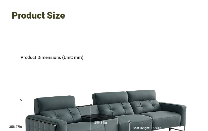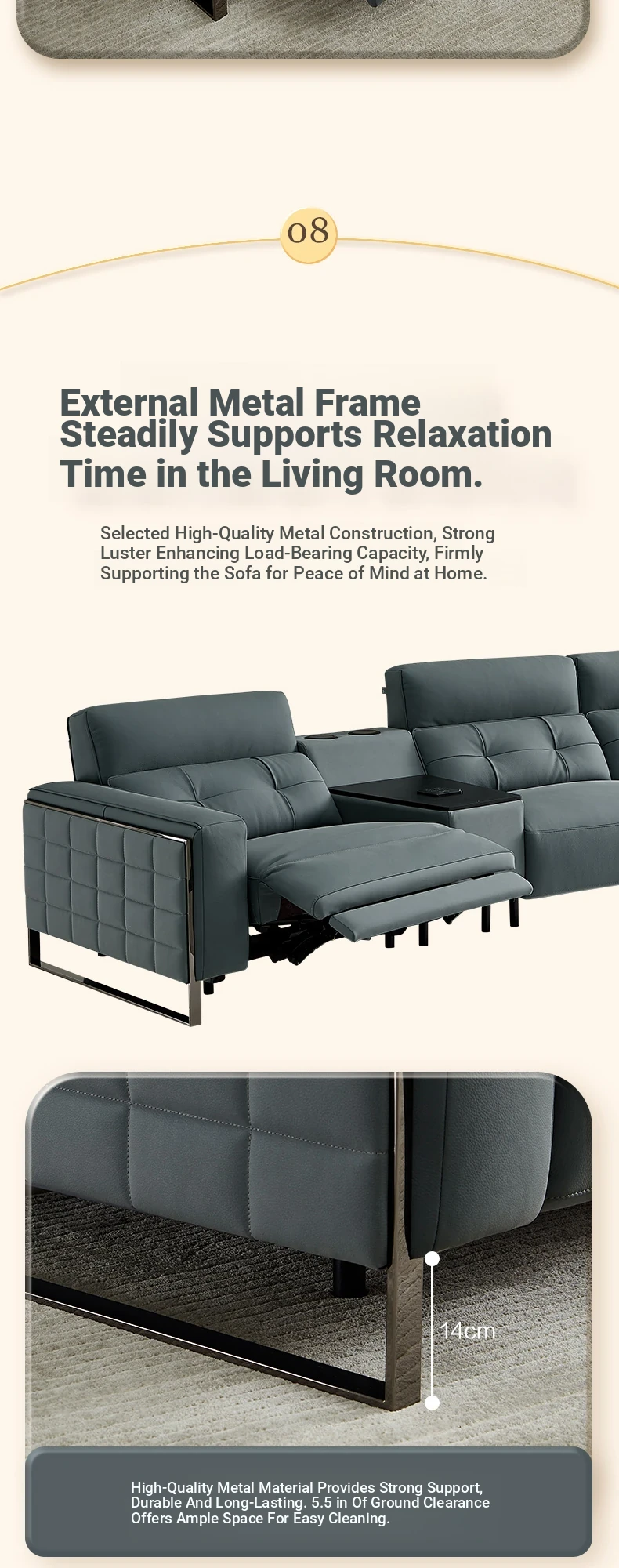 Qianyou Furniture 20275 Modern Minimalist Imported Top-Grain Leather Sofa in Misty Blue with Straight Recline Function - Elevate Your Living Space with Style and Comfort!