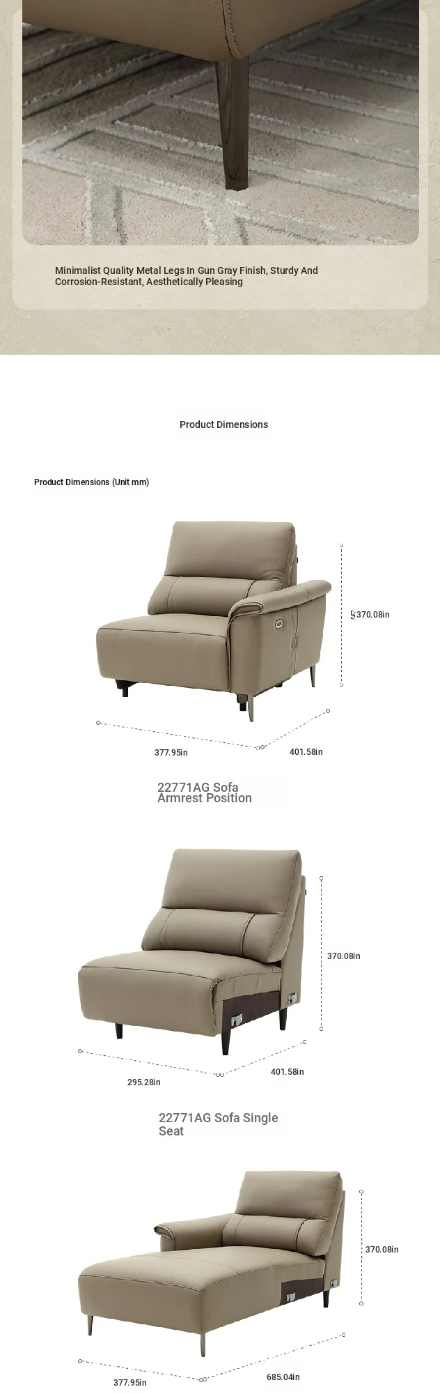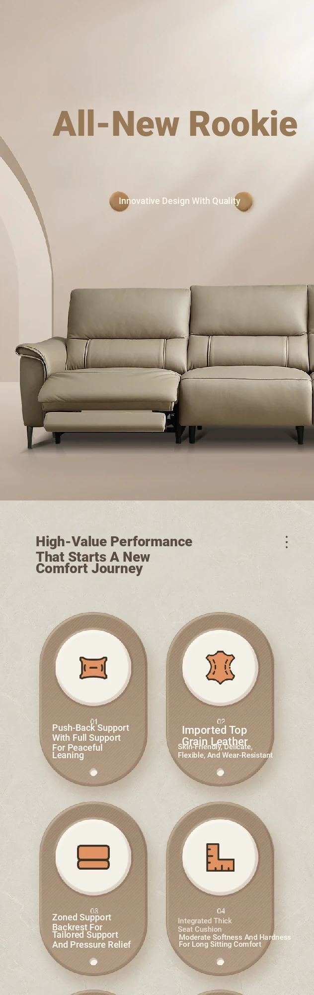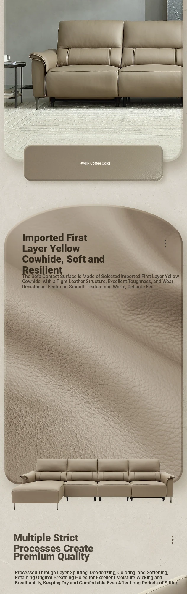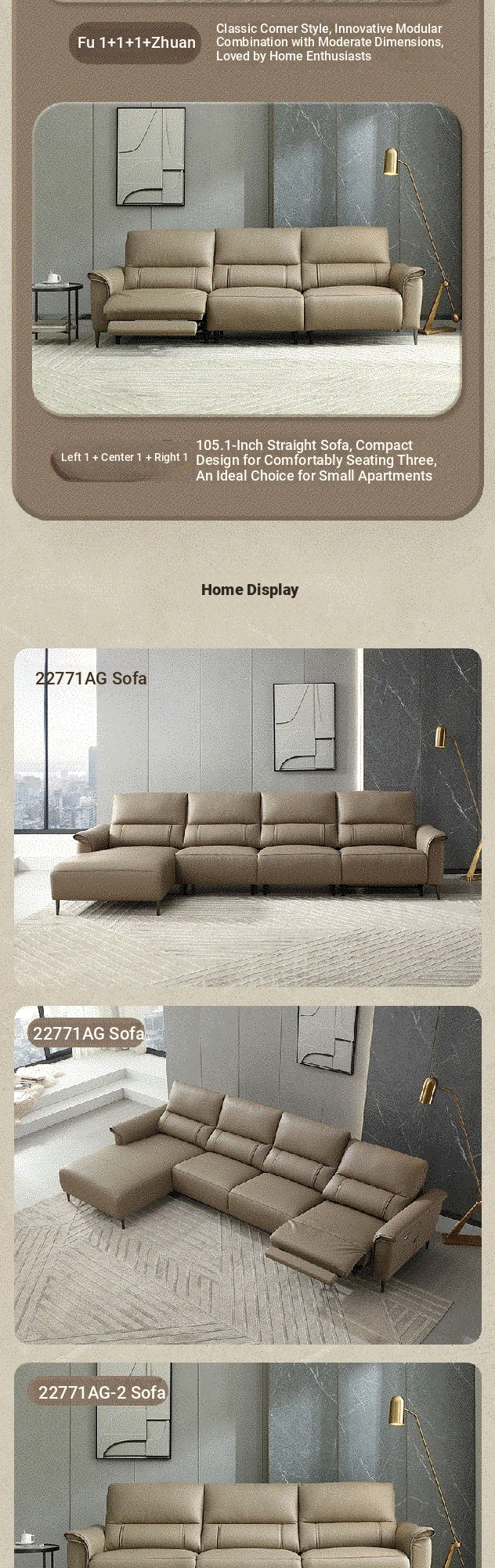 Qianyou Home 22771AG Picano Cream Style Corner Sofa - Made with Premium Top-Grain Cowhide, Functional Design for Ultimate Comfort