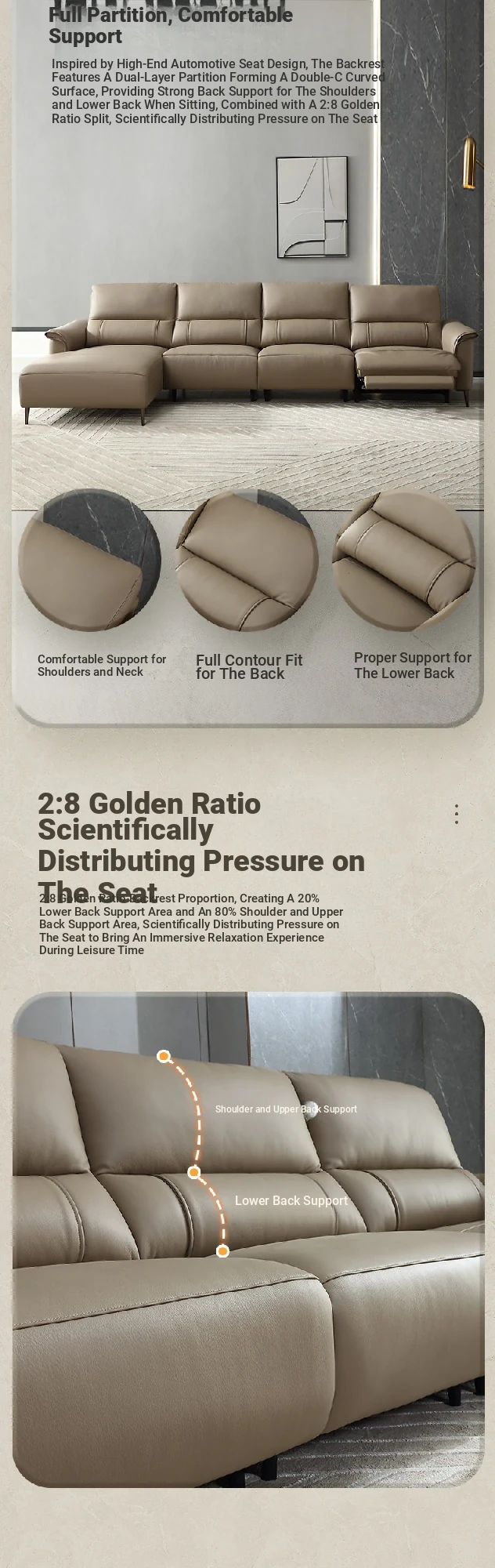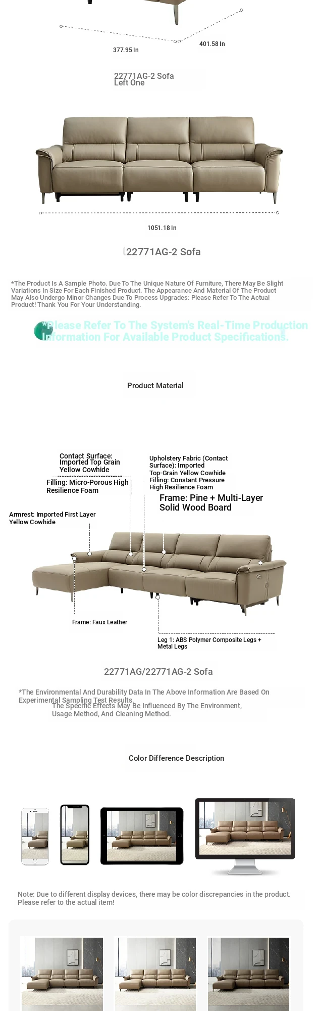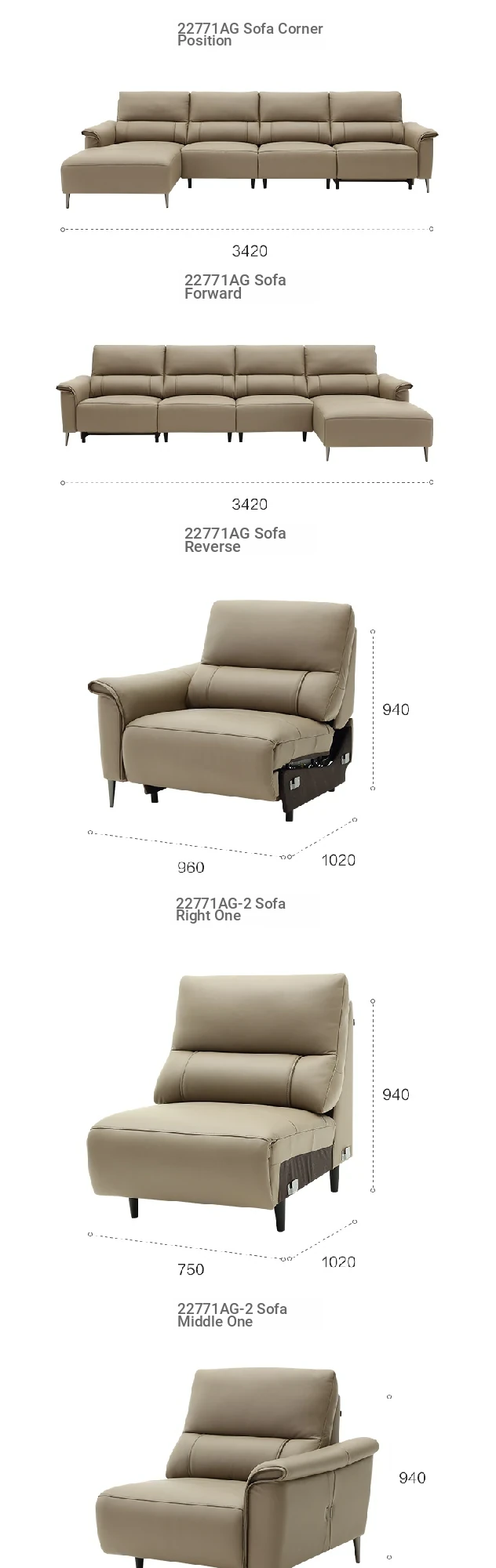 Qianyou Home 22771AG Picano Cream Style Corner Sofa - Made with Premium Top-Grain Cowhide, Functional Design for Ultimate Comfort