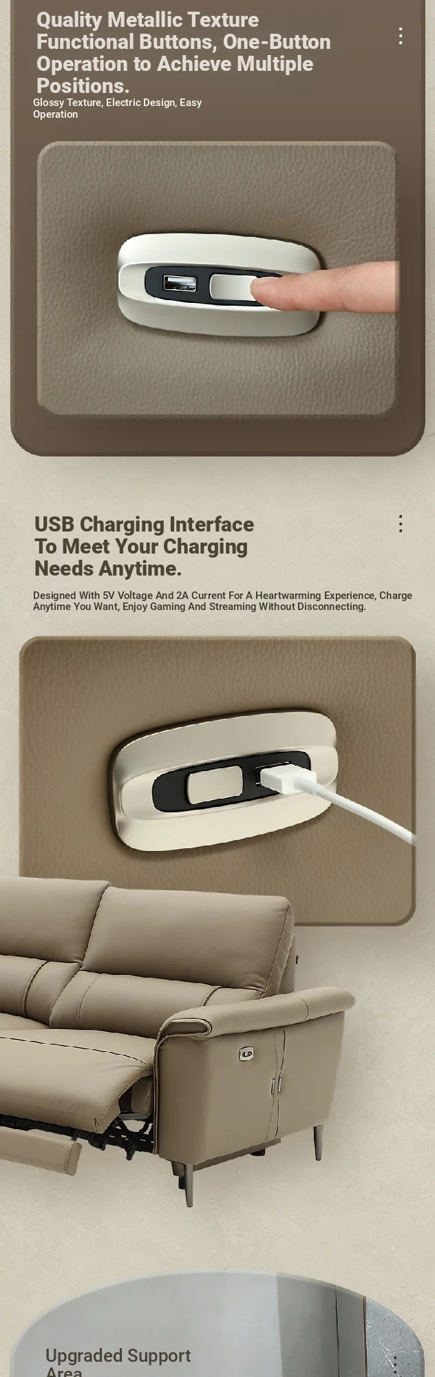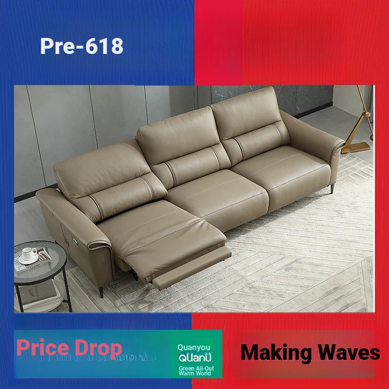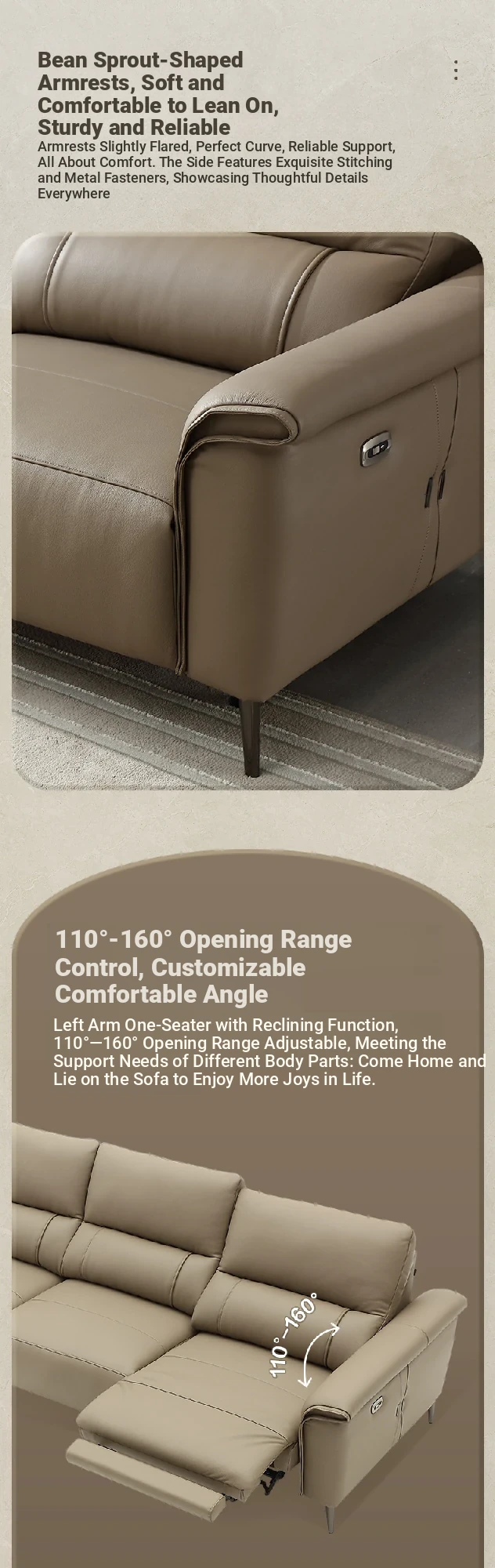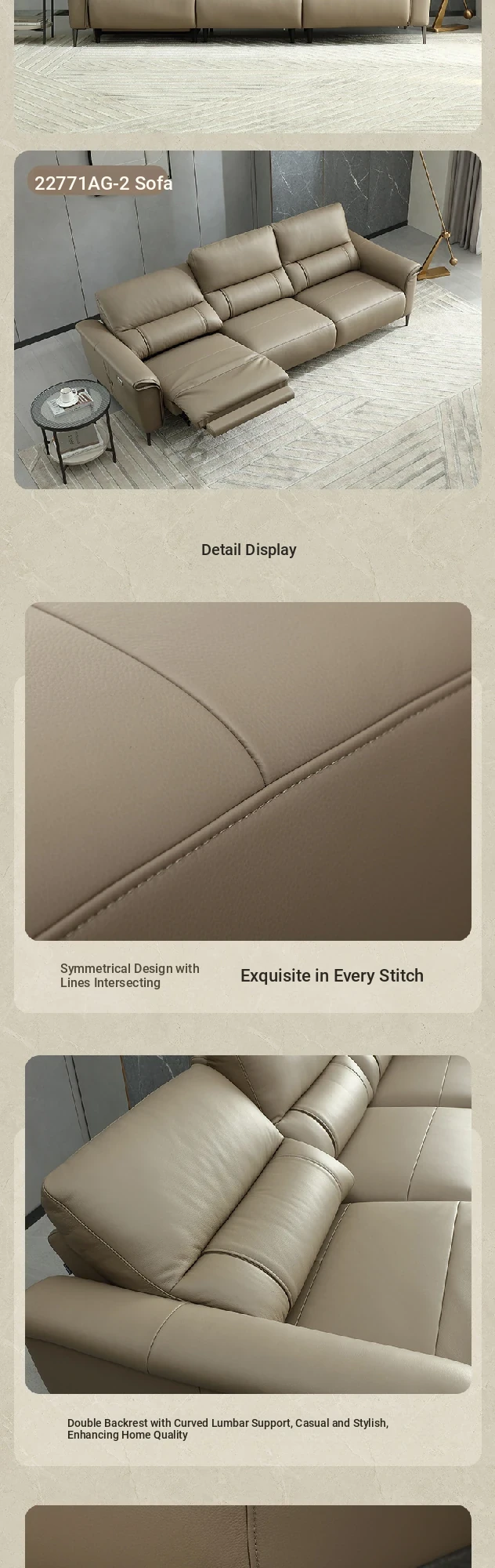 Qianyou Home 22771AG Picano Cream Style Corner Sofa - Made with Premium Top-Grain Cowhide, Functional Design for Ultimate Comfort