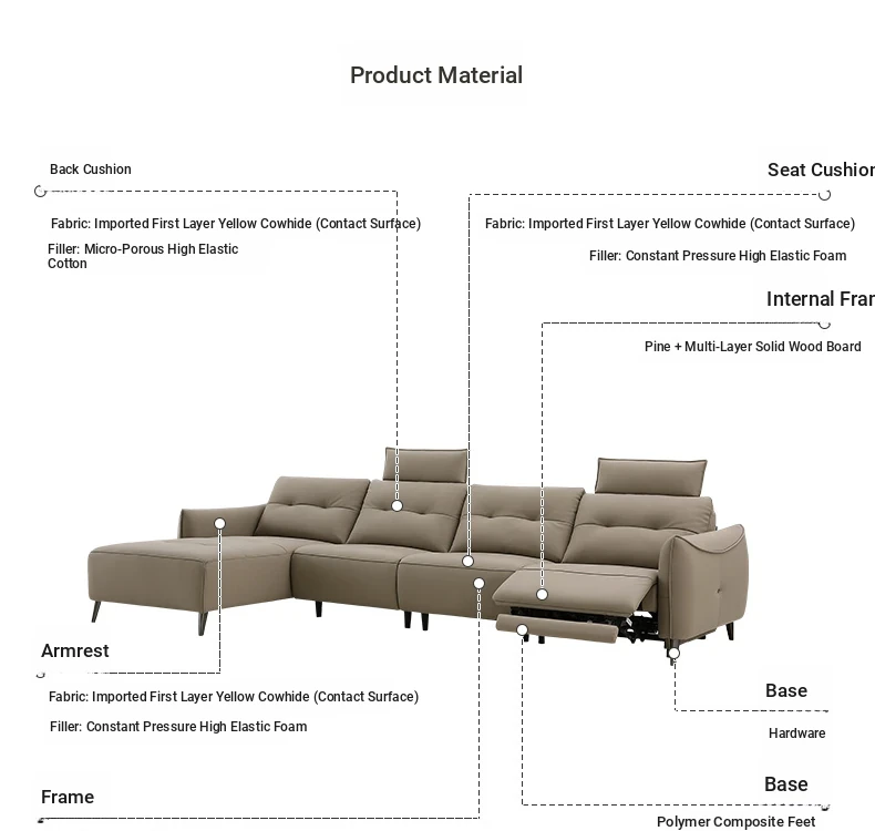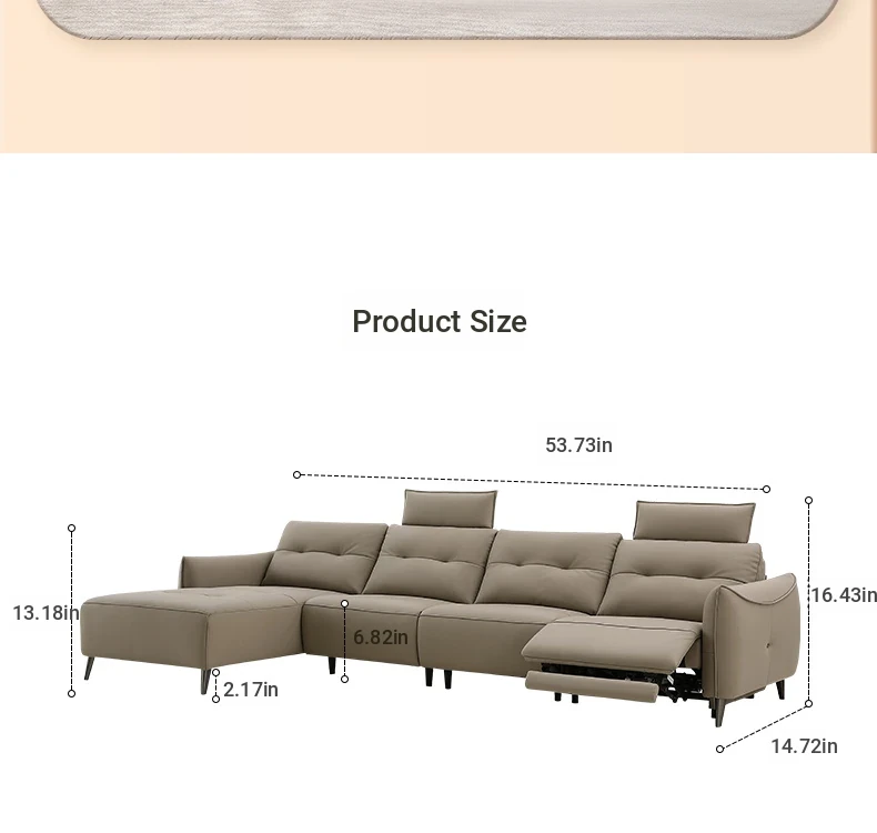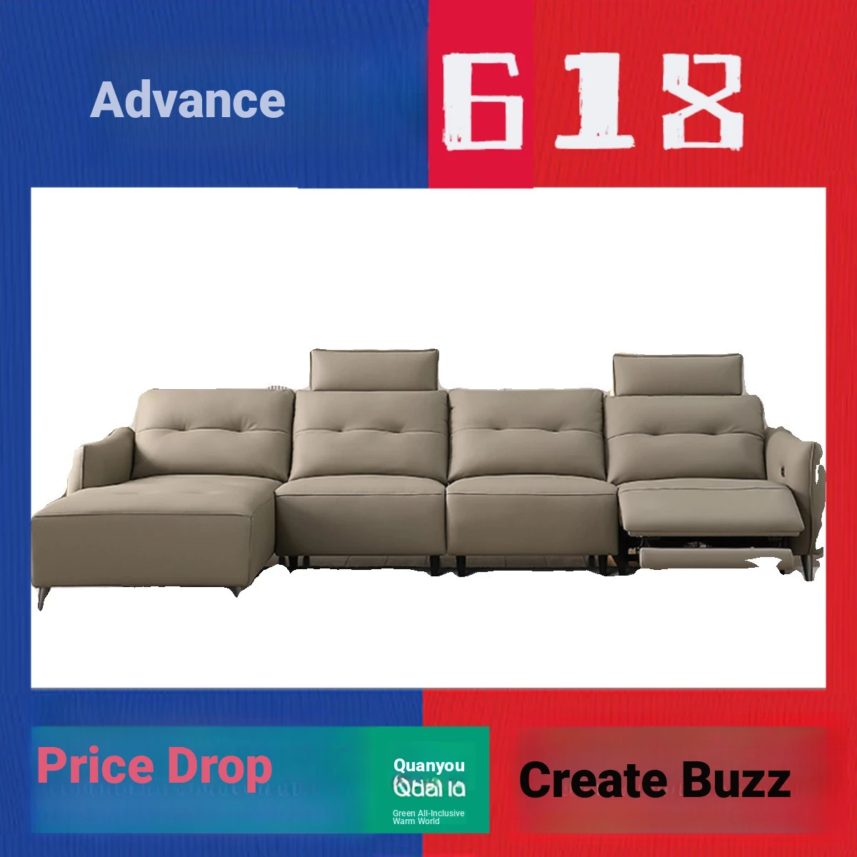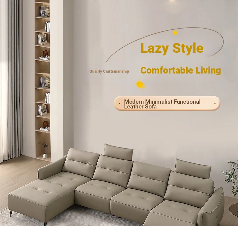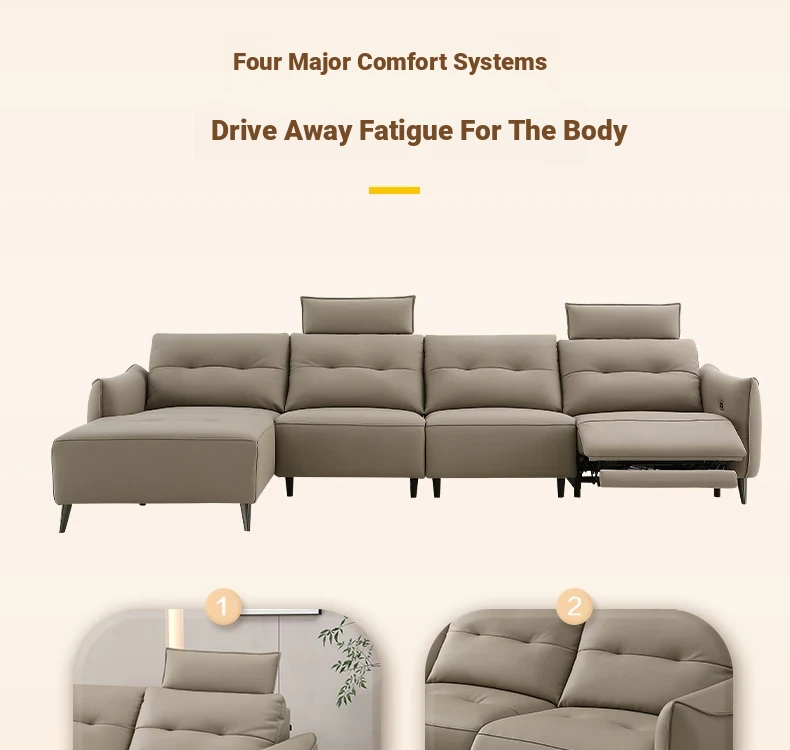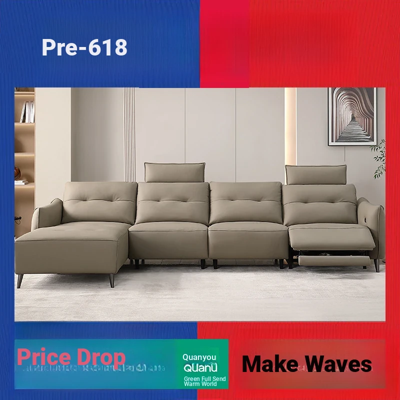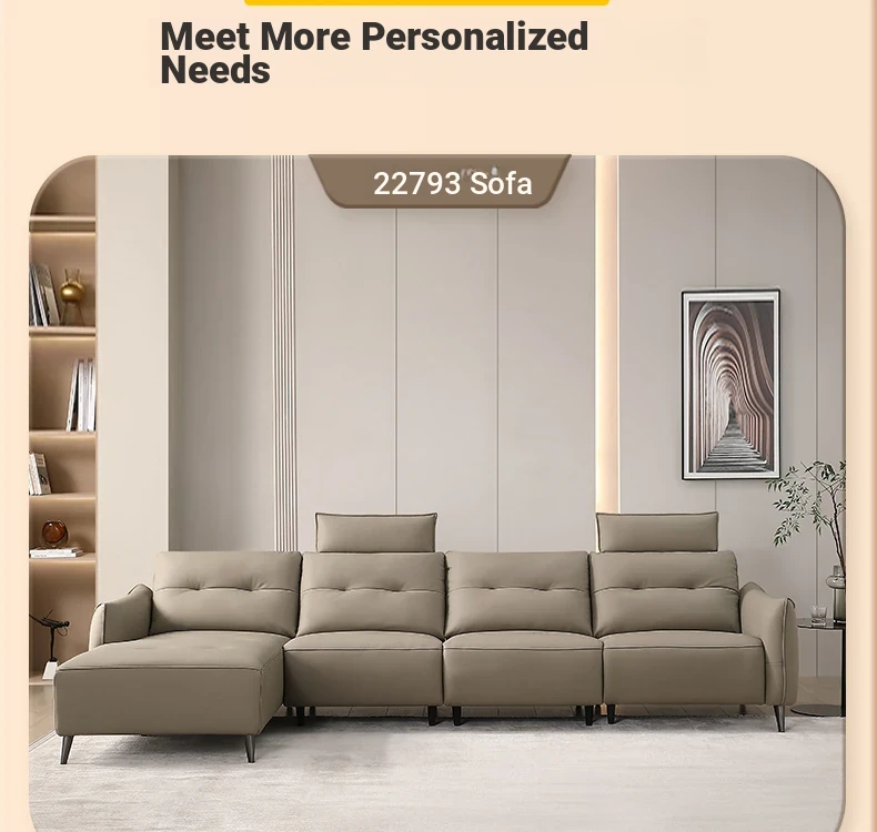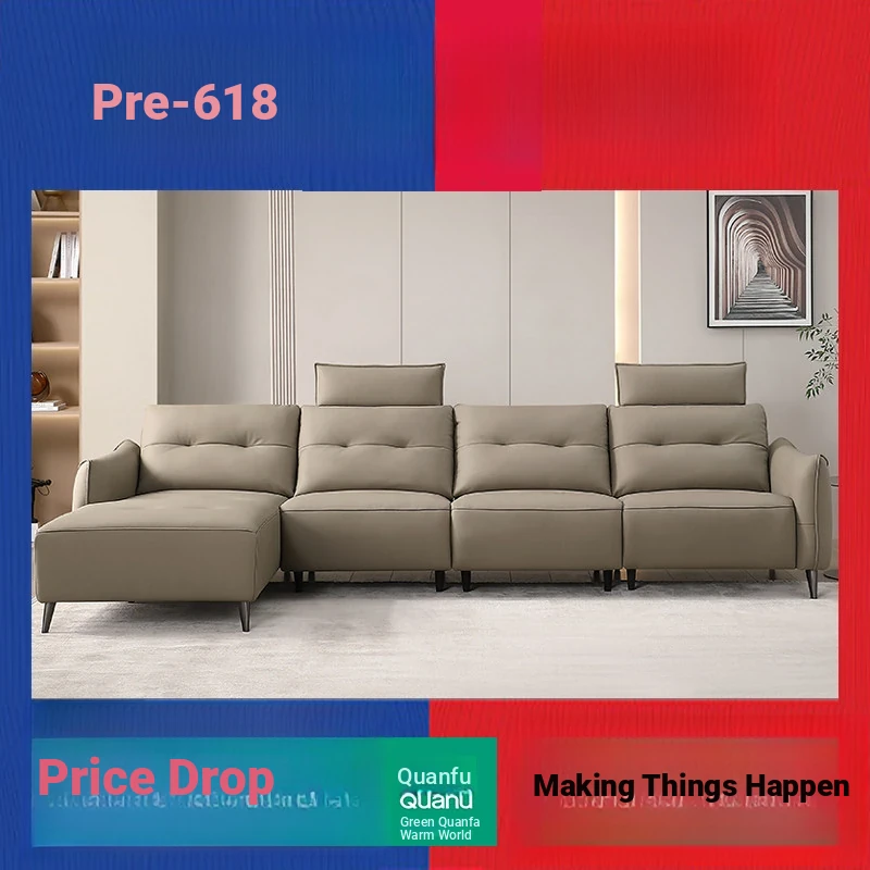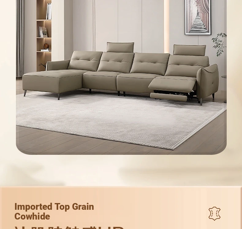 Quanfu Home Store Model 22793 - Premium Imported Top Grain Leather Sofa with Chaise Lounge Function - Luxurious and Stylish Corner Design