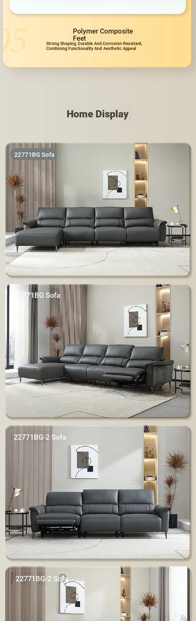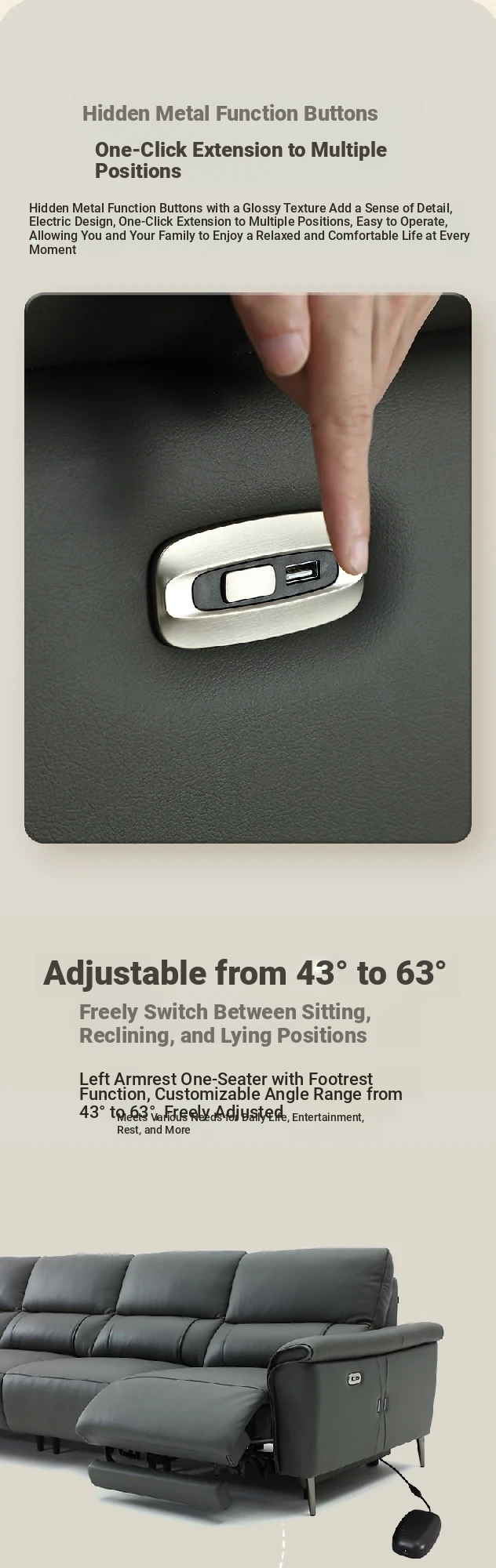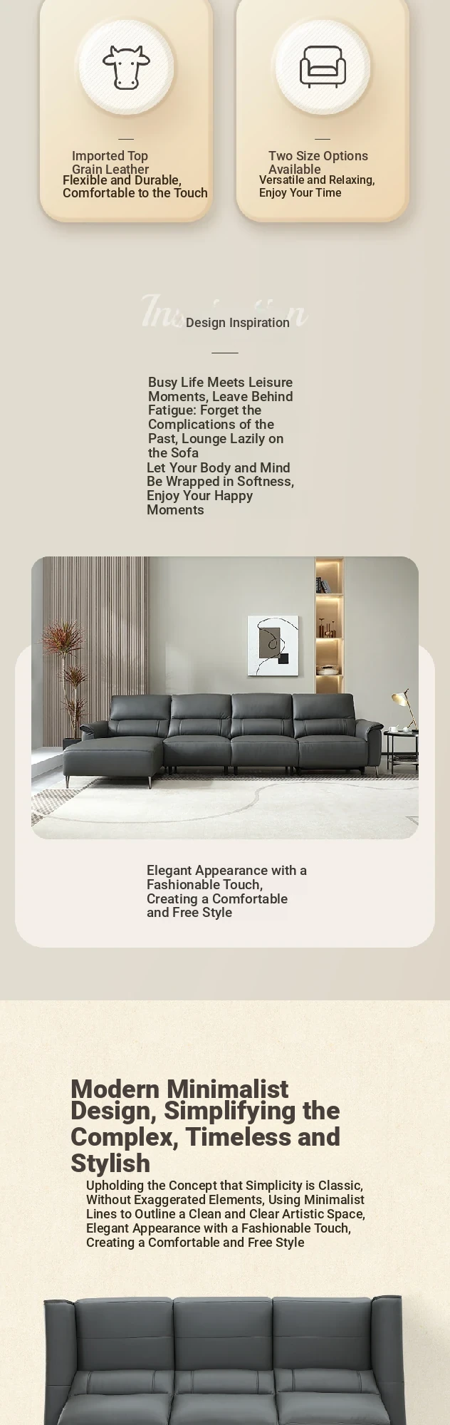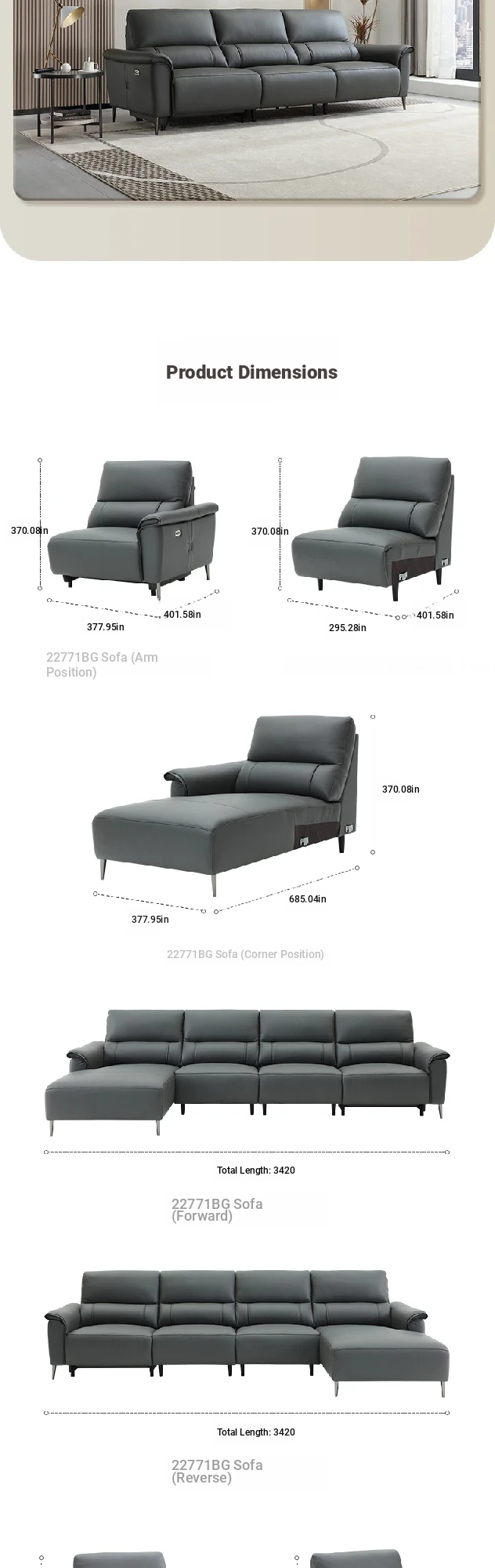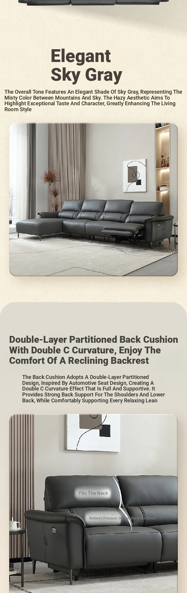 Quanyou Furniture 22771BG Picano Corner Sofa in Celestial Gray – Premium Top-Grain Cowhide, Functional Design for Ultimate Comfort and Style