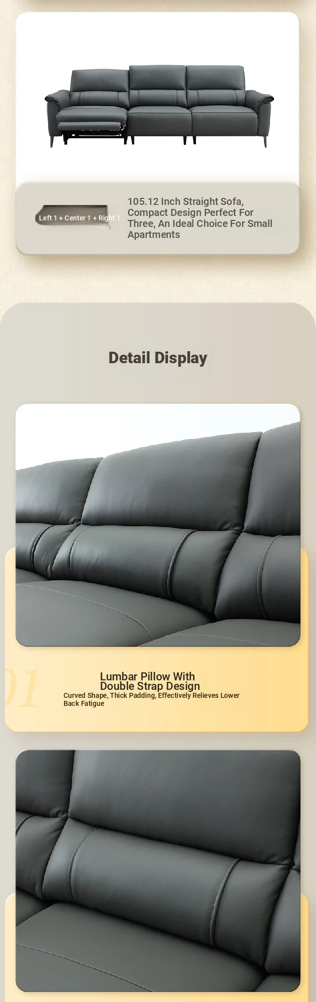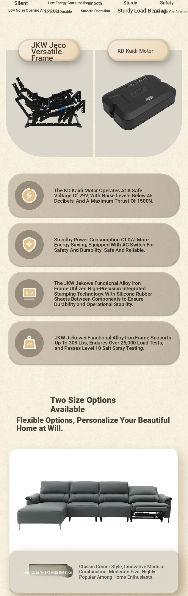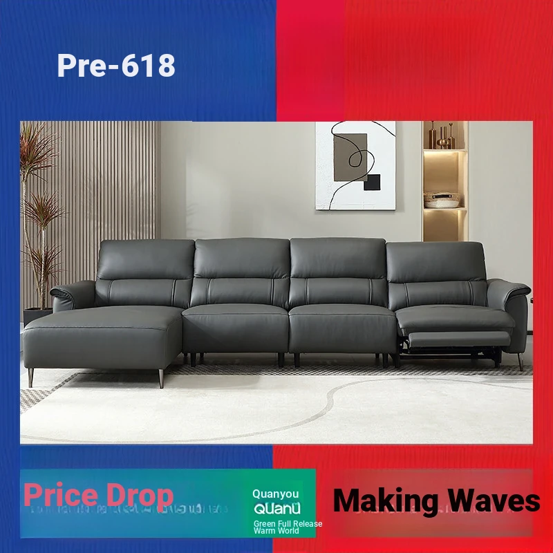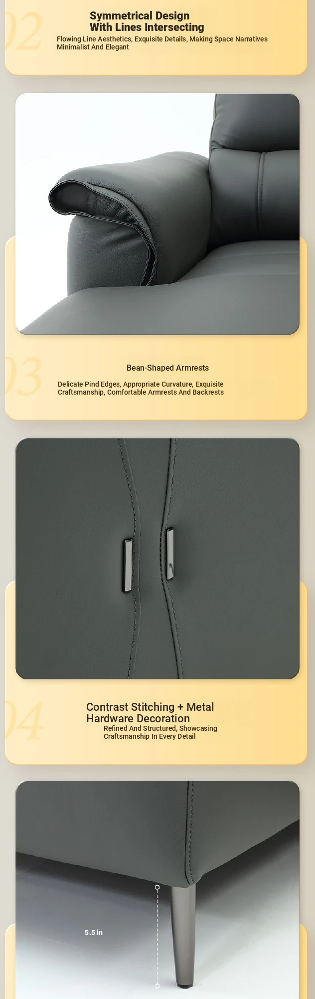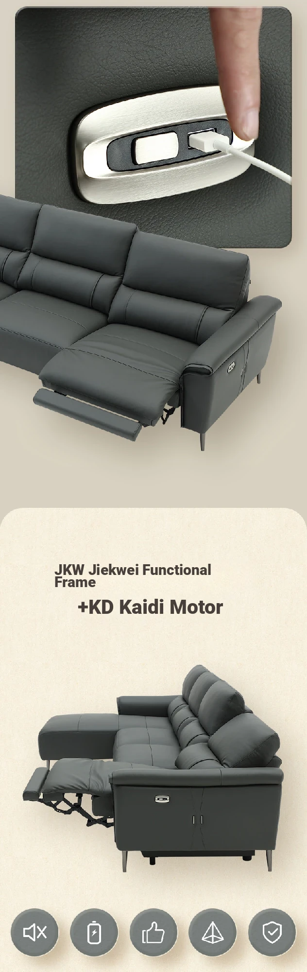 Quanyou Furniture 22771BG Picano Corner Sofa in Celestial Gray – Premium Top-Grain Cowhide, Functional Design for Ultimate Comfort and Style