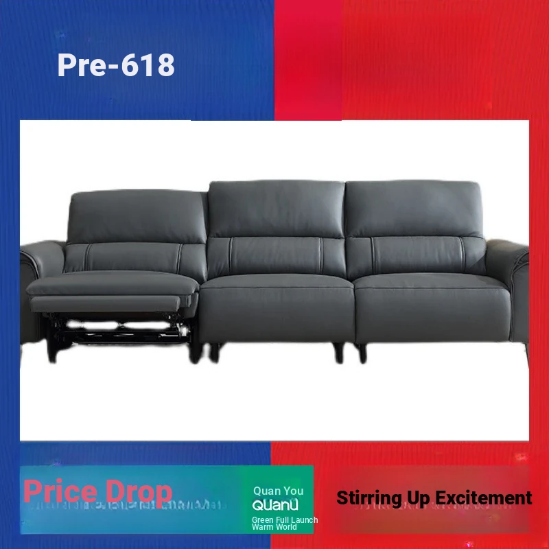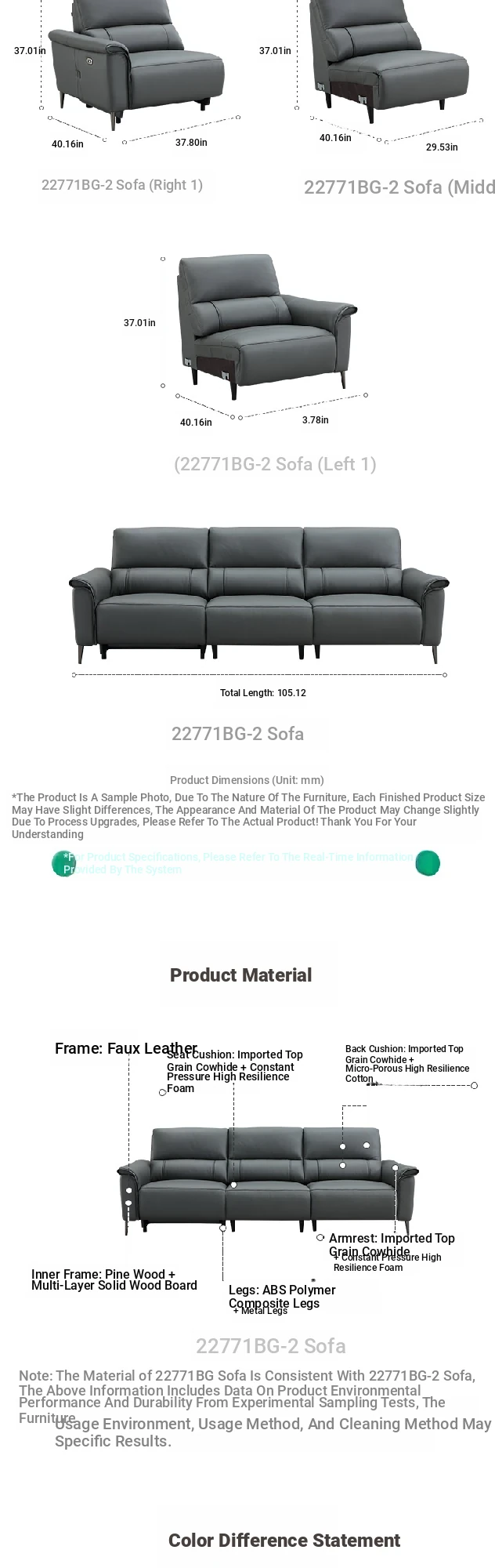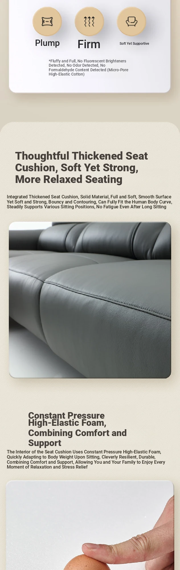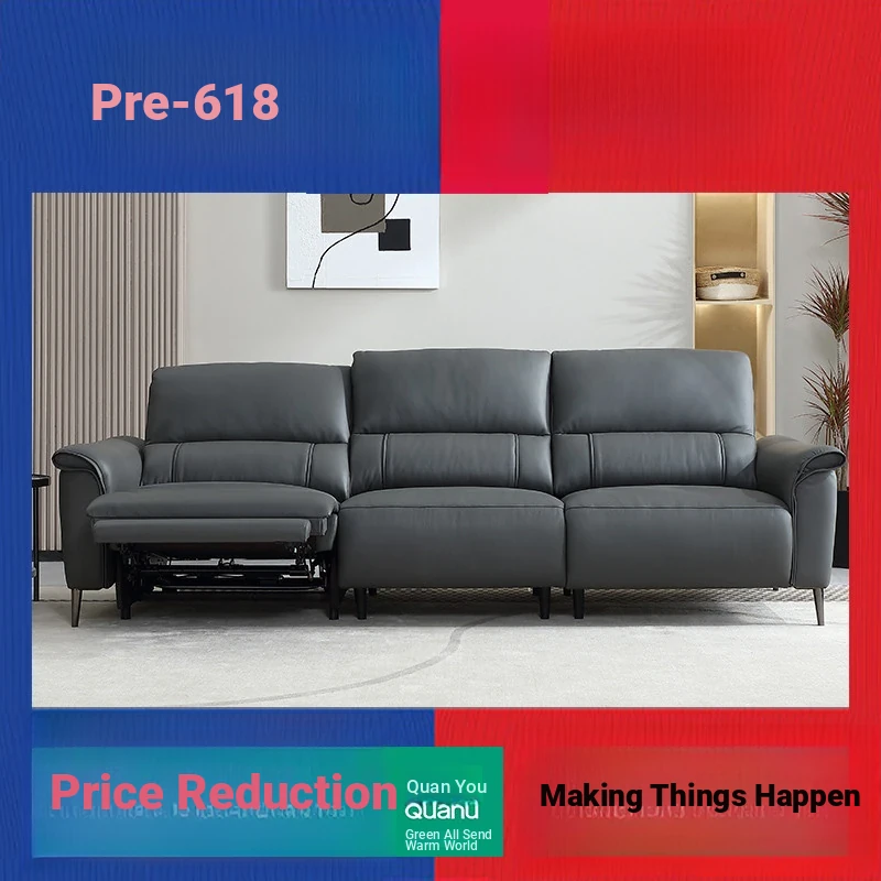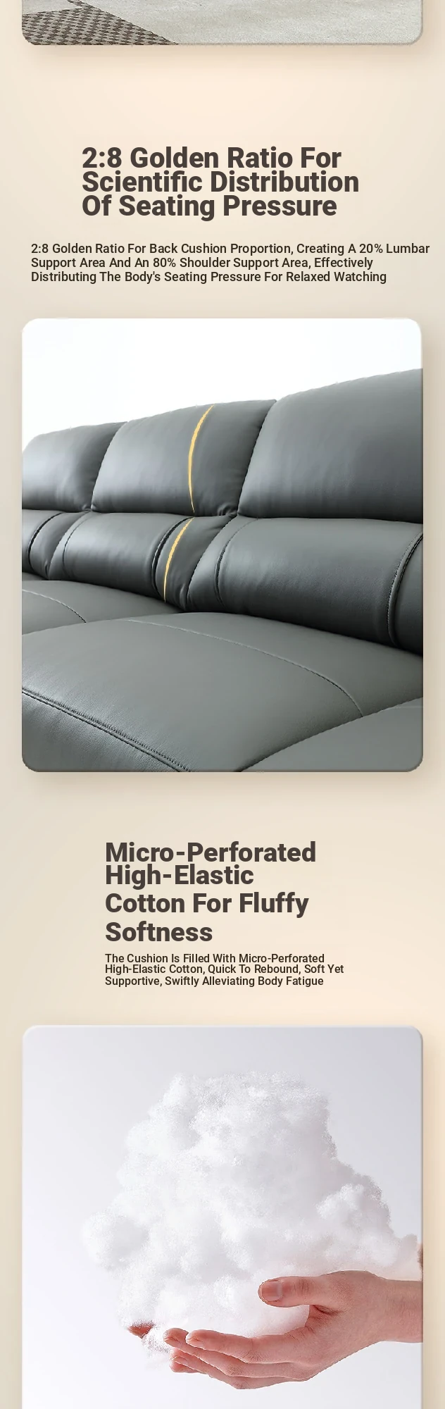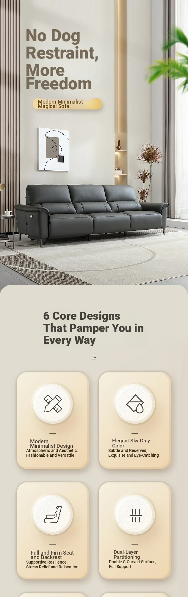 Quanyou Furniture 22771BG Picano Corner Sofa in Celestial Gray – Premium Top-Grain Cowhide, Functional Design for Ultimate Comfort and Style