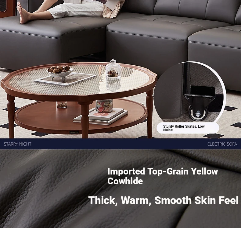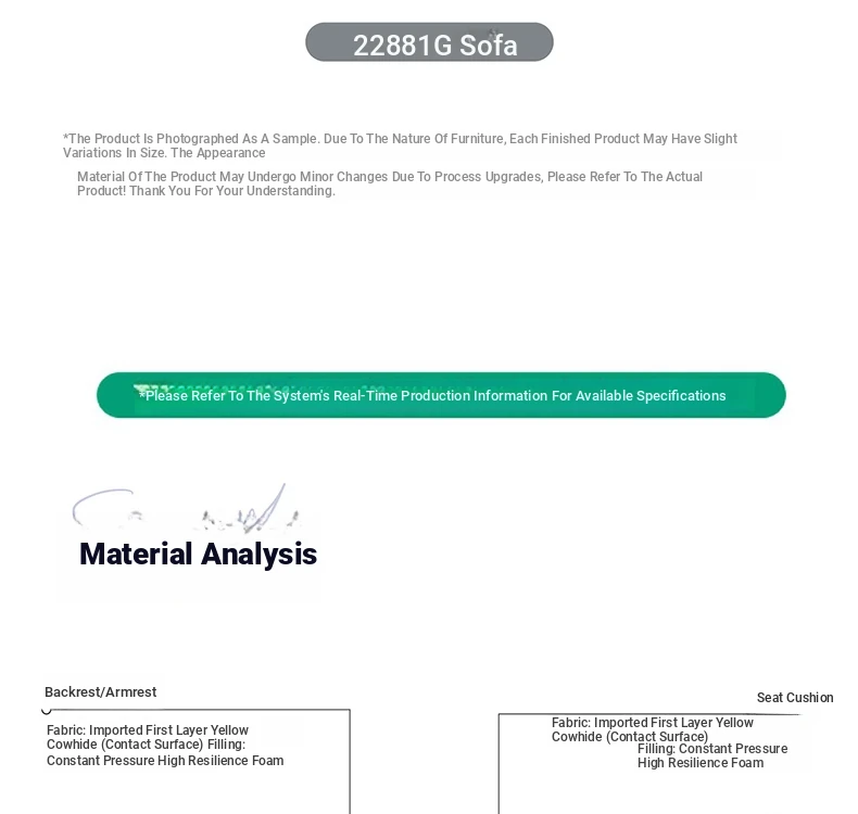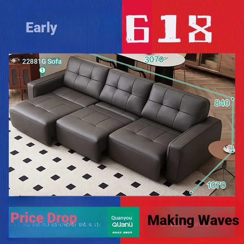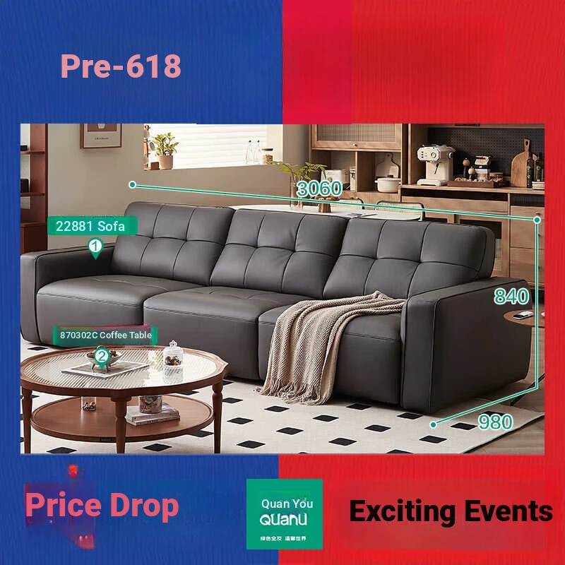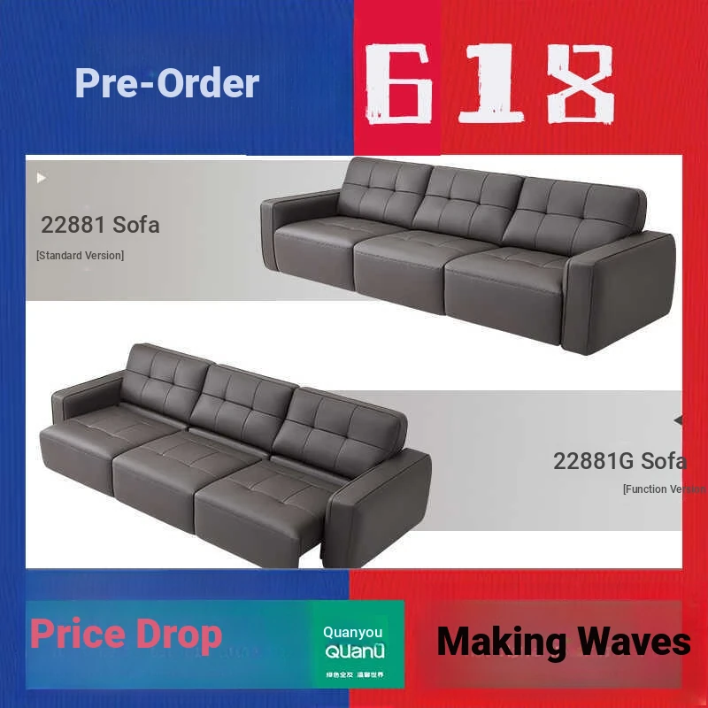 Quanyou Home Store 22881G Imported Top-Grain Yellow Cowhide Sofa - Stylish & Minimalist Electric Functionality