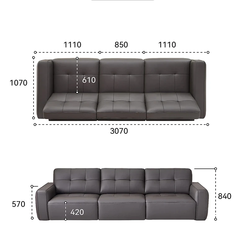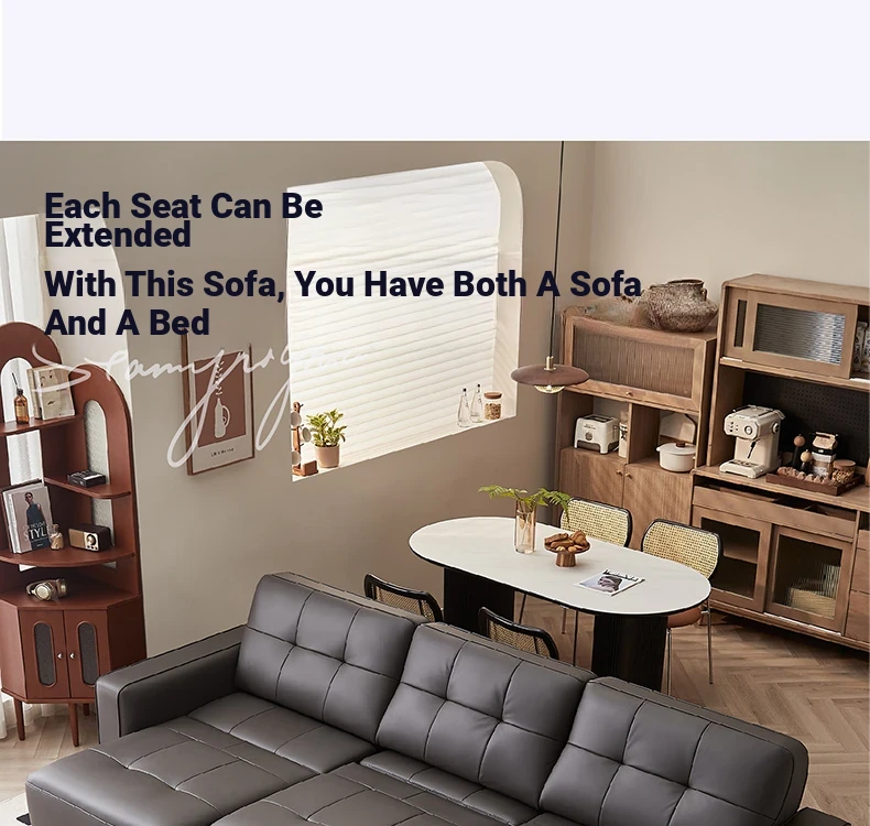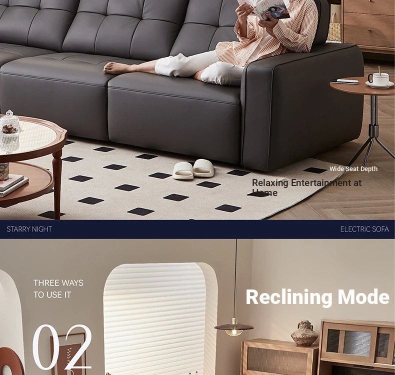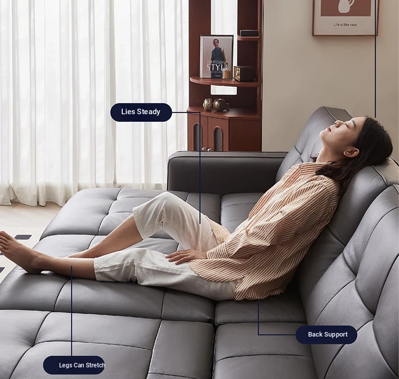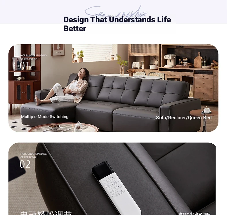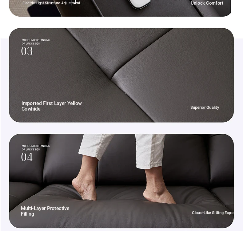 Quanyou Home Store 22881G Imported Top-Grain Yellow Cowhide Sofa - Stylish & Minimalist Electric Functionality