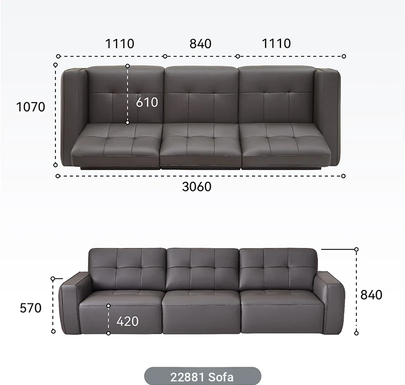 22881 leather sofa (left 1 + middle 1 + right 1)3 pieces