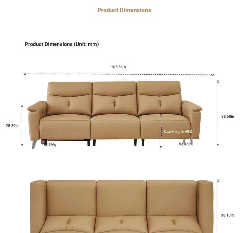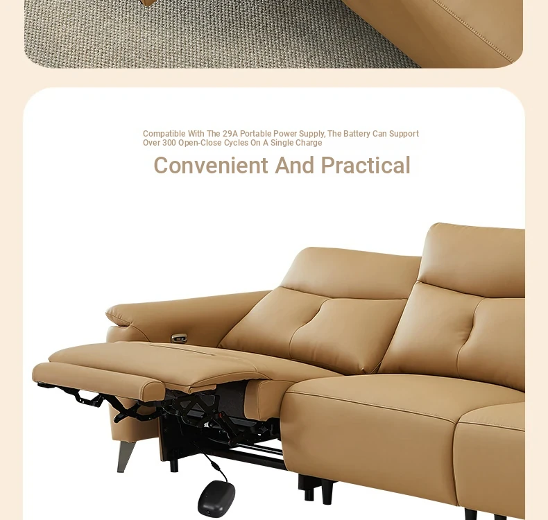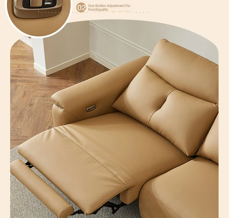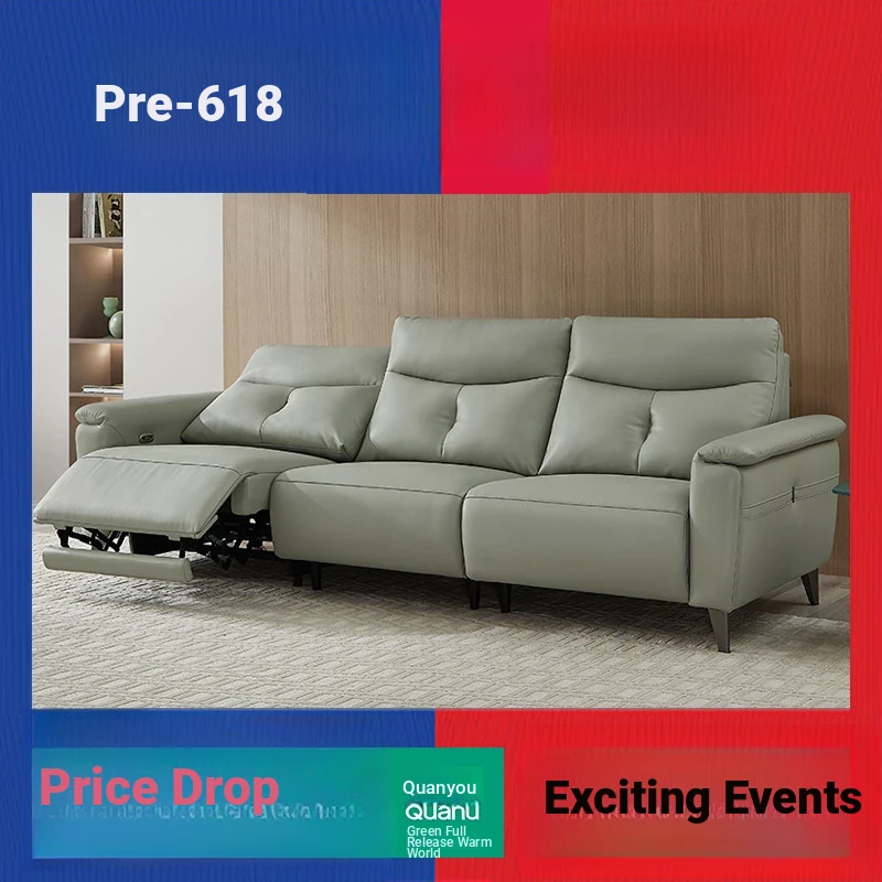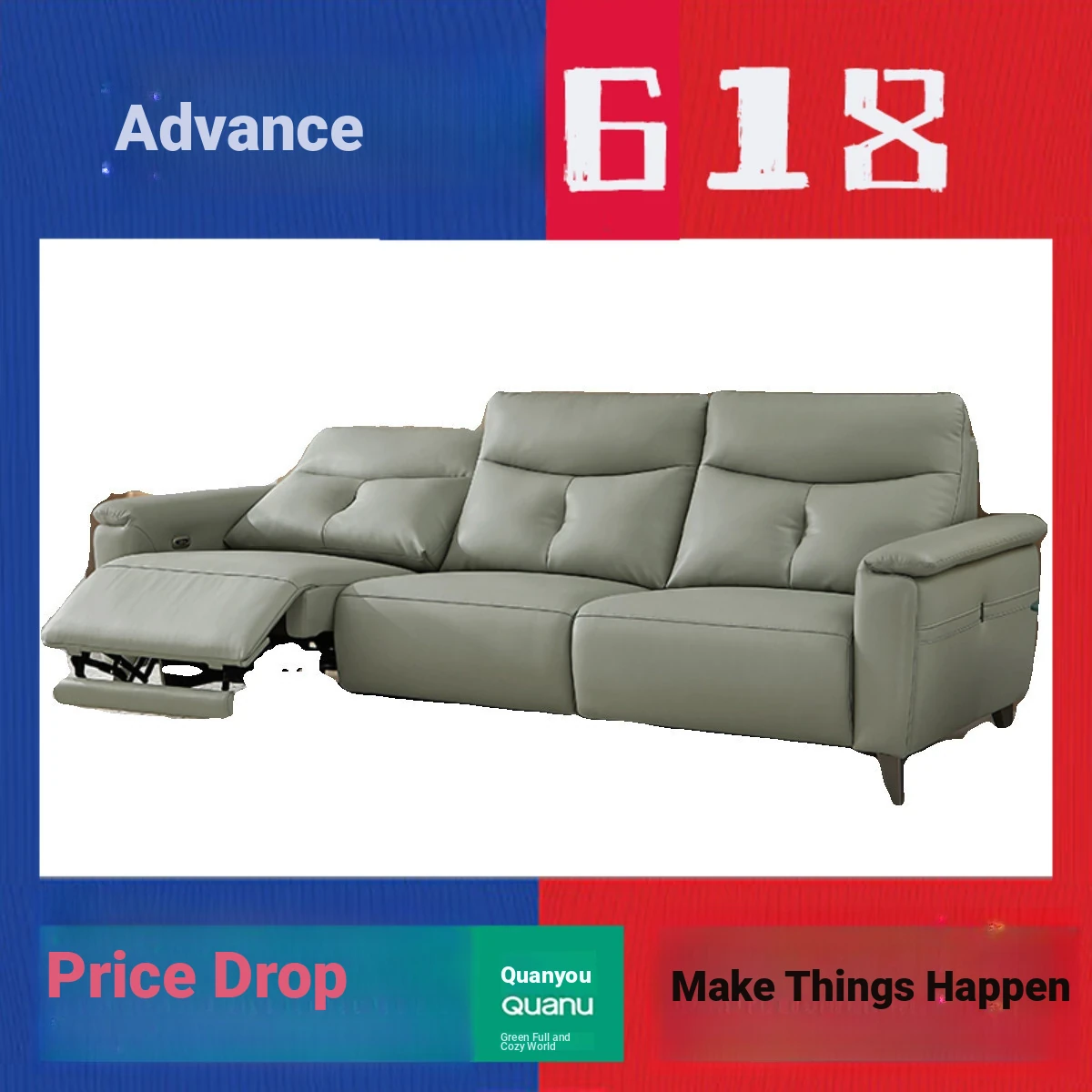 QuanYu Home Store Style 29108AB Functional Genuine Leather Sofa - Eco-Friendly Leather, Straight Design for Ultimate Comfort