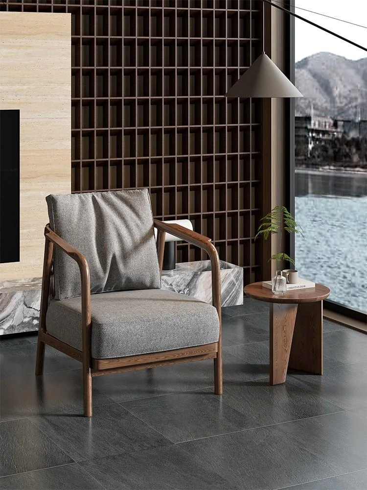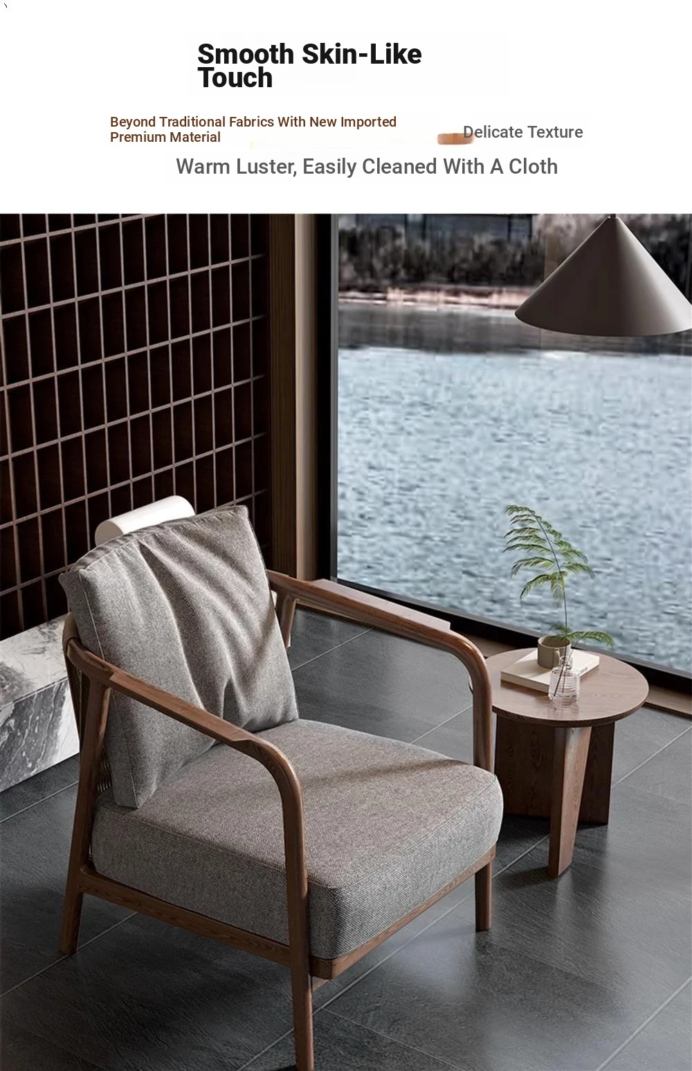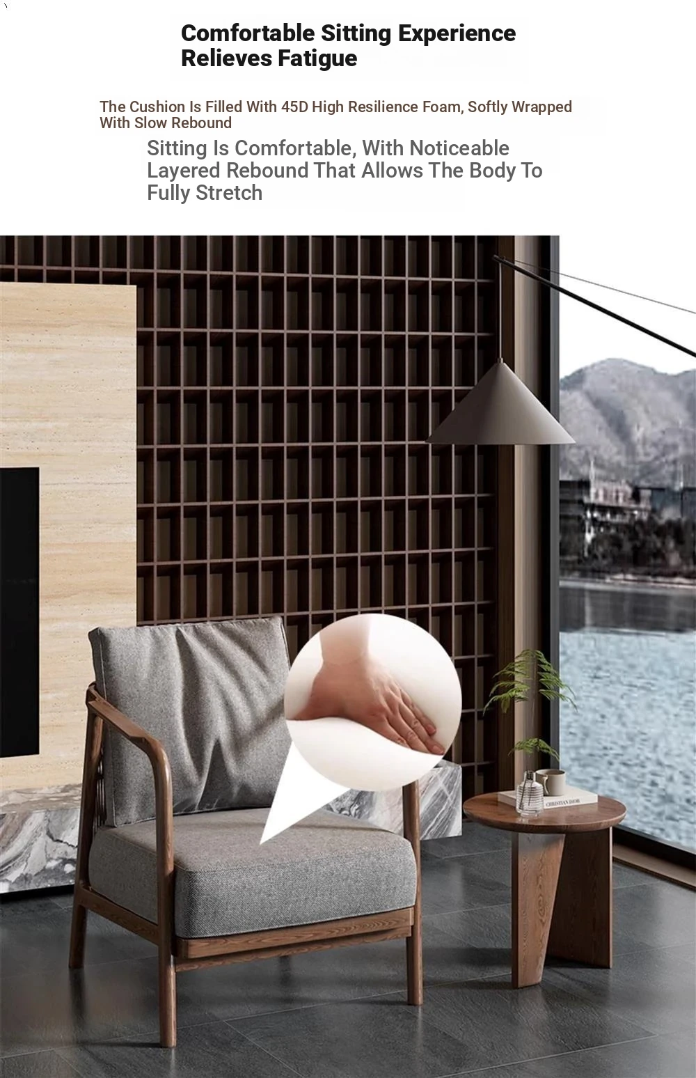 Sleek Song-Style Solid Wood Armchair – Minimalist Design for Hotels and Guesthouses, Perfect for Single Seating in Sales Offices and Dining Areas