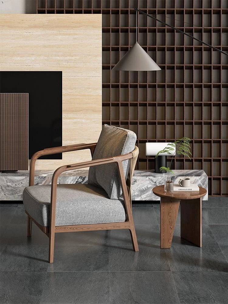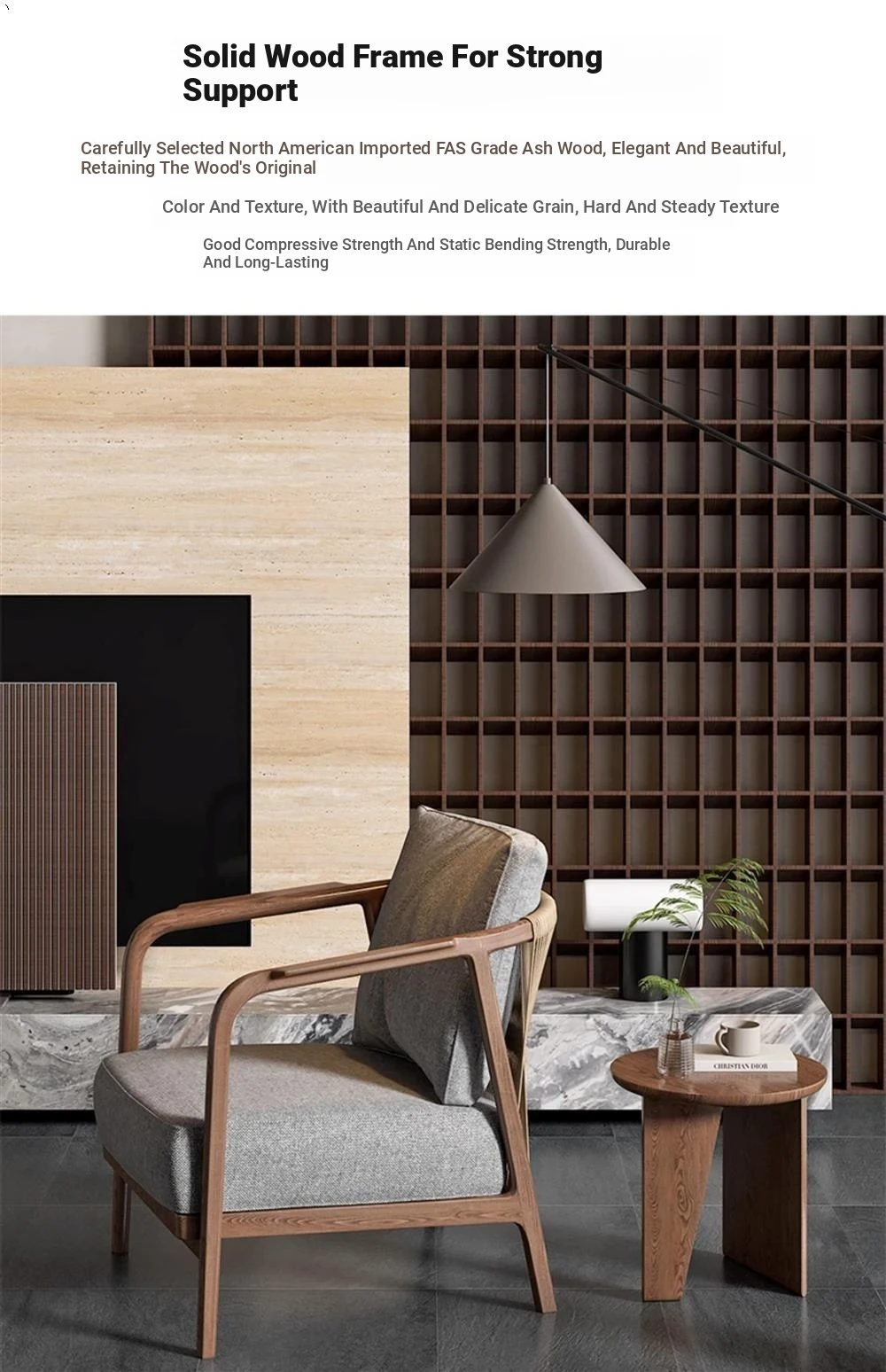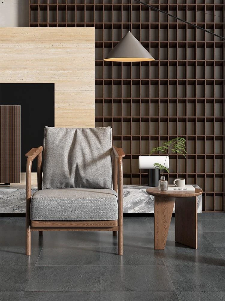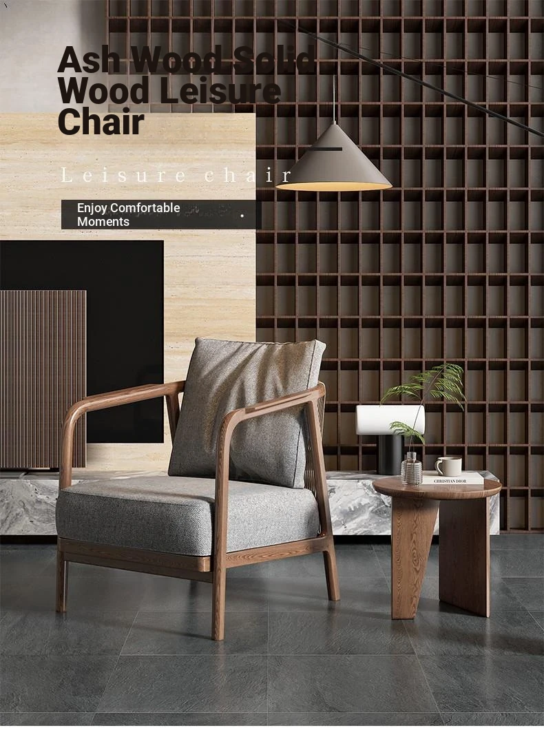 Sleek Song-Style Solid Wood Armchair – Minimalist Design for Hotels and Guesthouses, Perfect for Single Seating in Sales Offices and Dining Areas