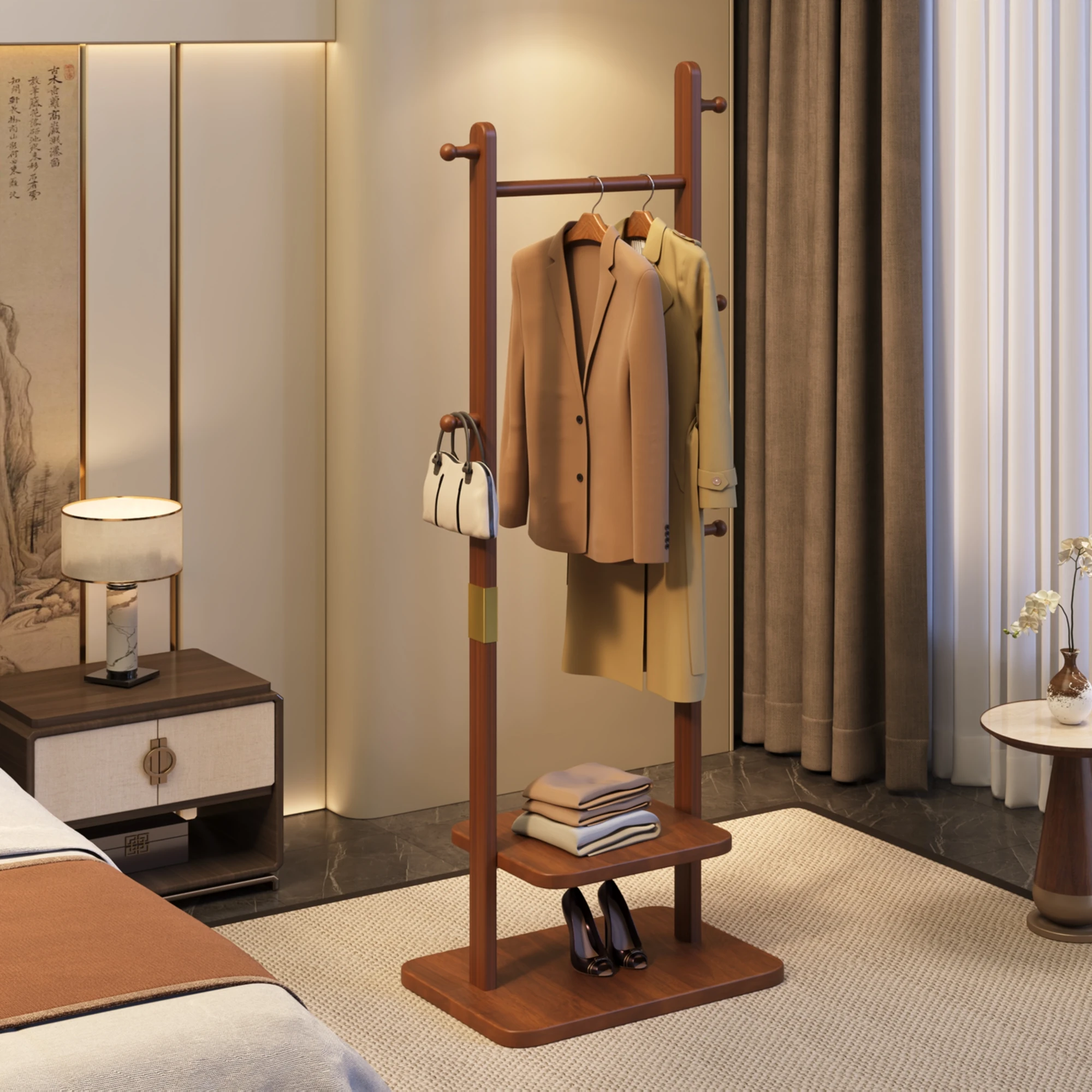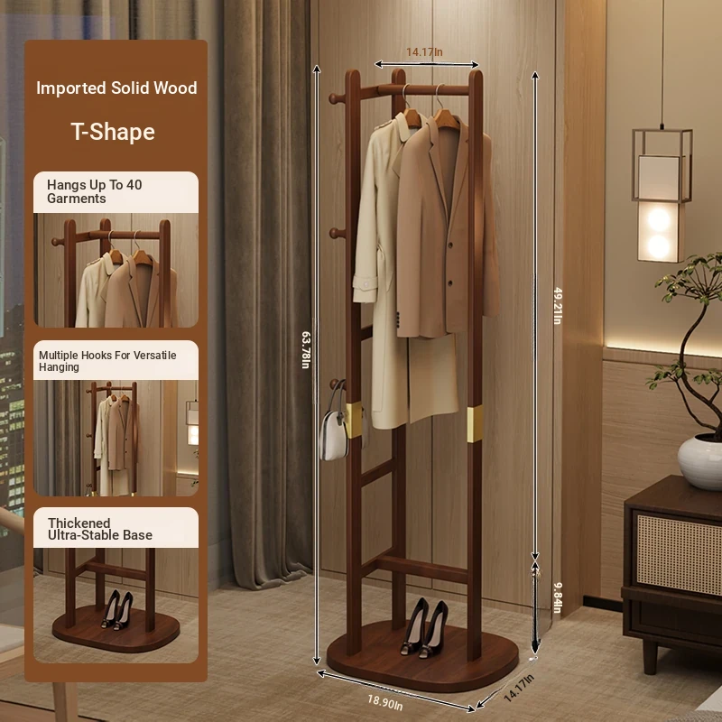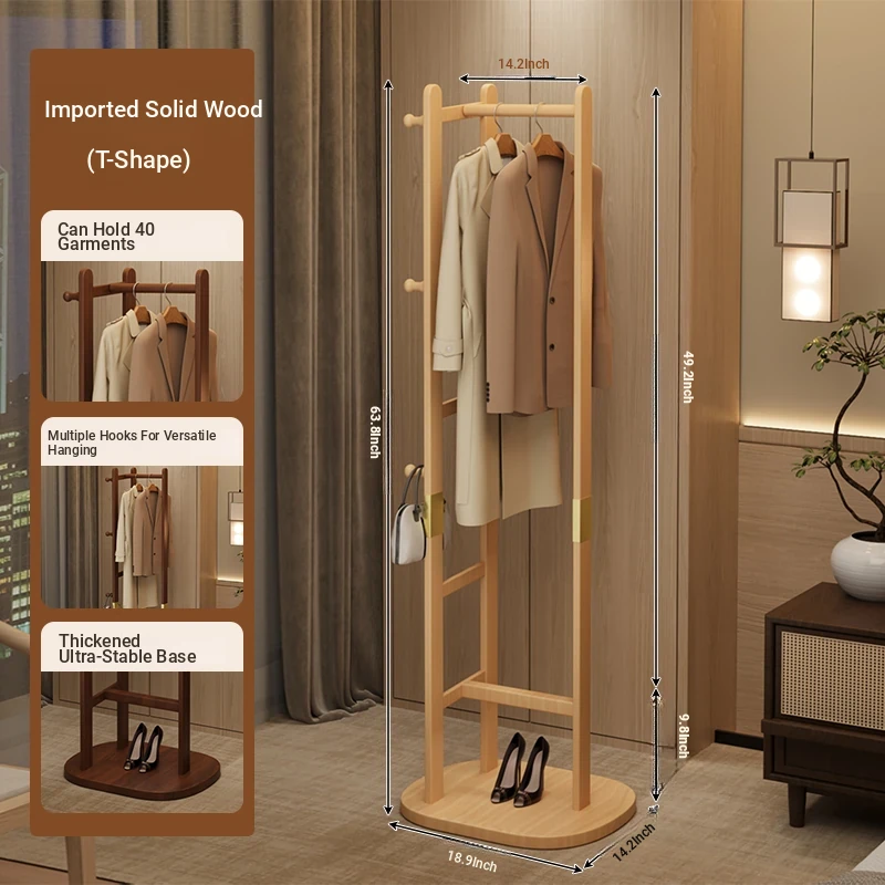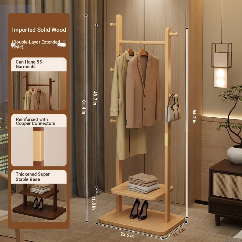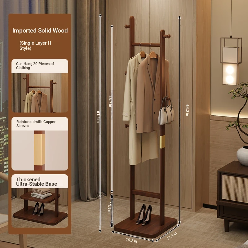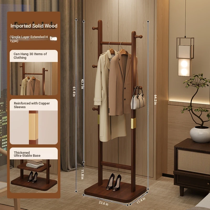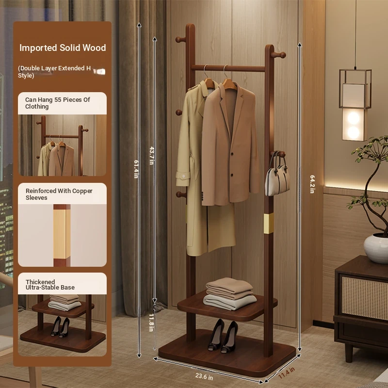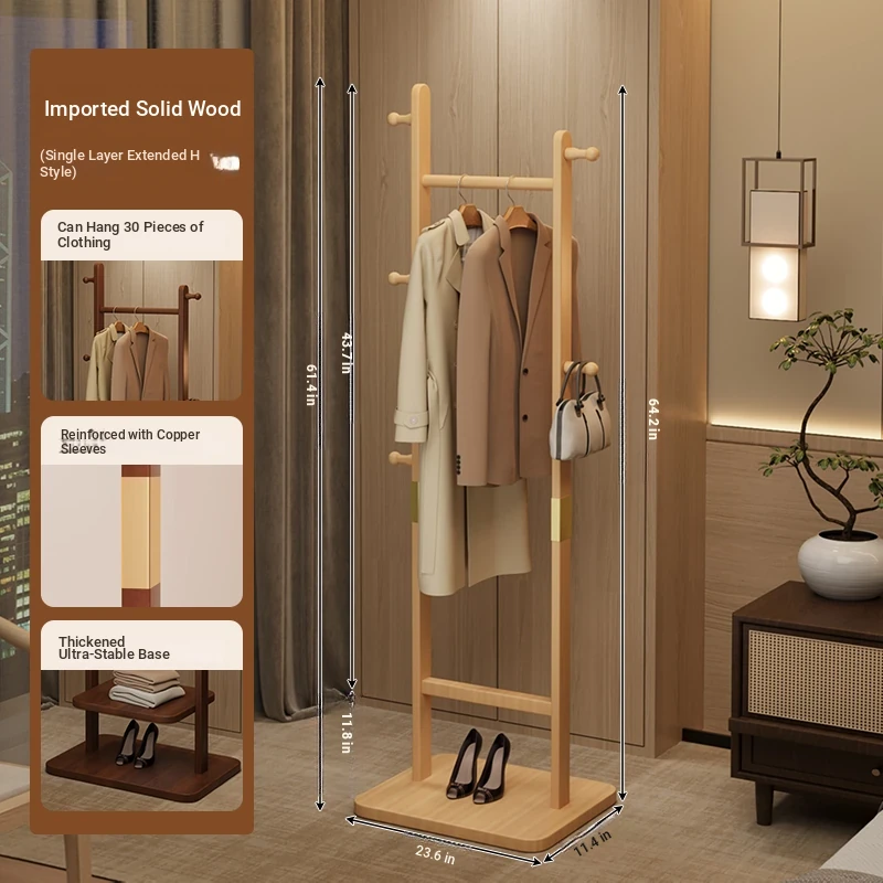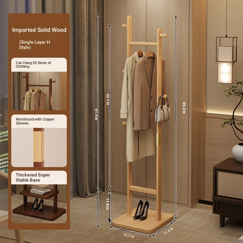 Solid Wood Floor Clothing Rack - Stylish and Functional Bedroom Coat Stand for Home Use, Perfect for Hanging Clothes by the Bed in Your Chinese-Style Room!