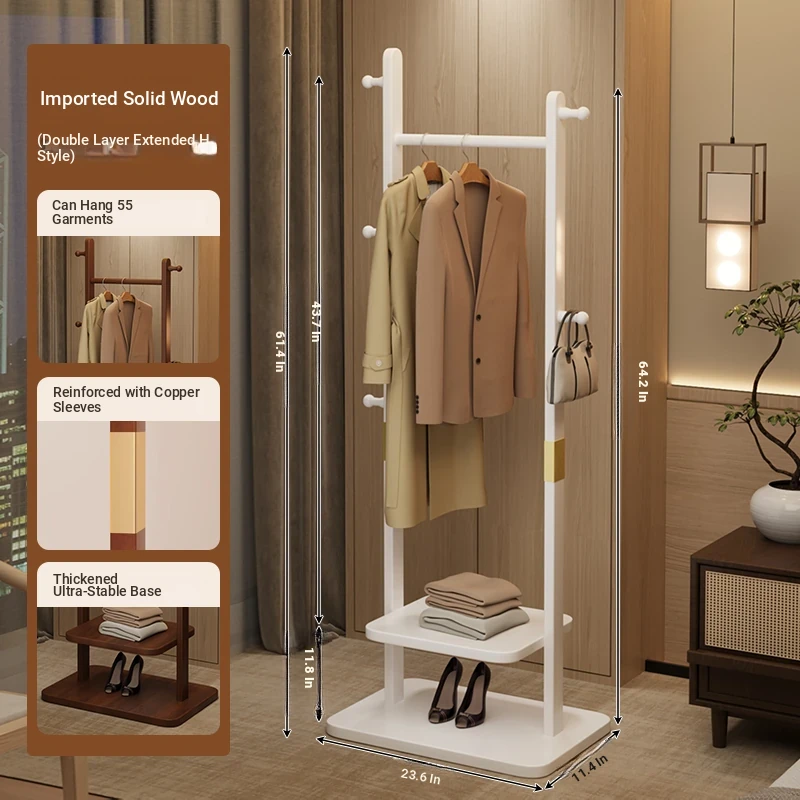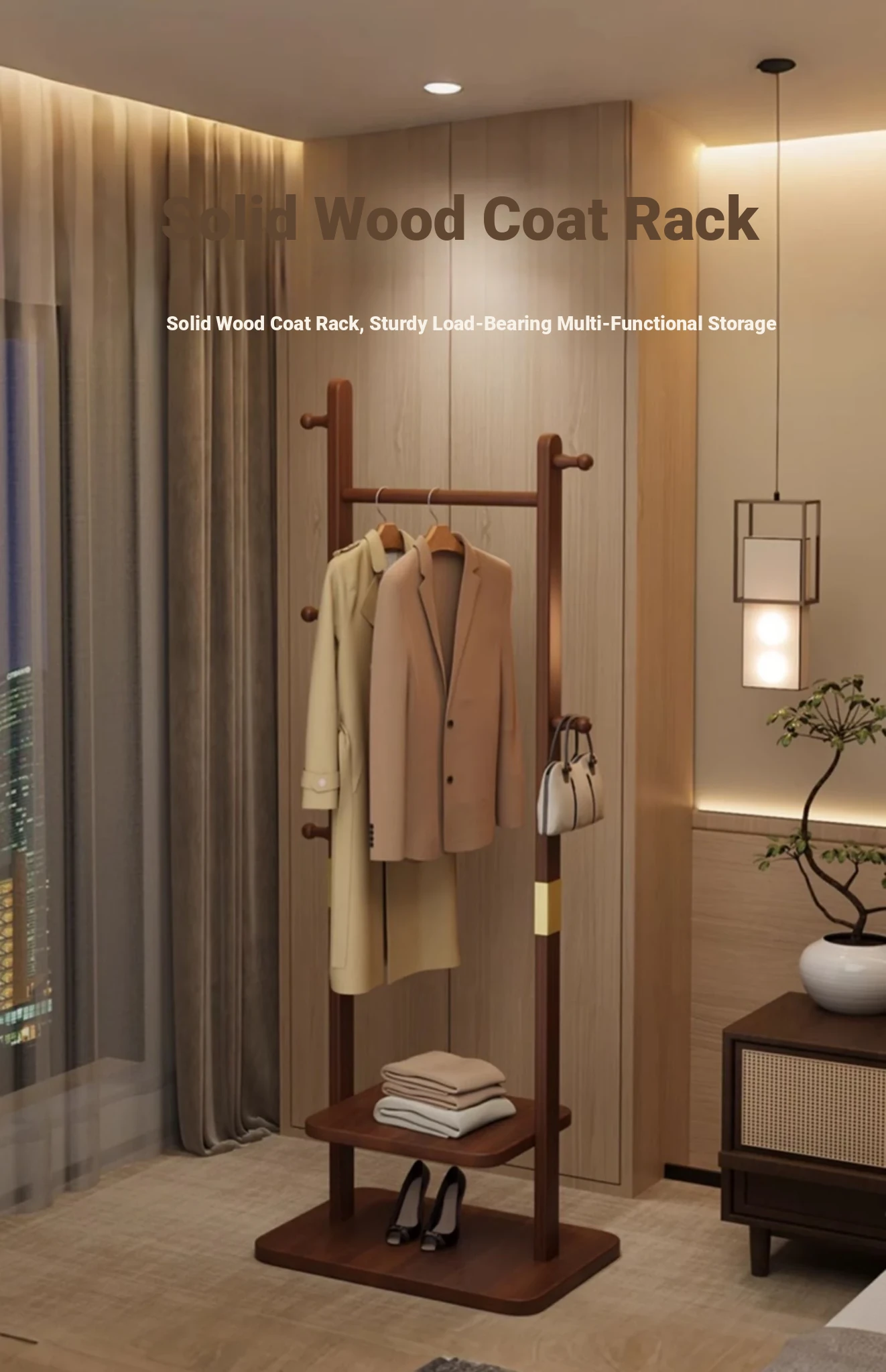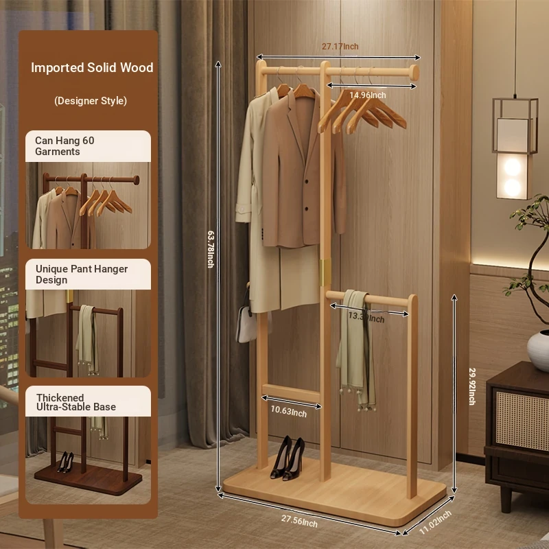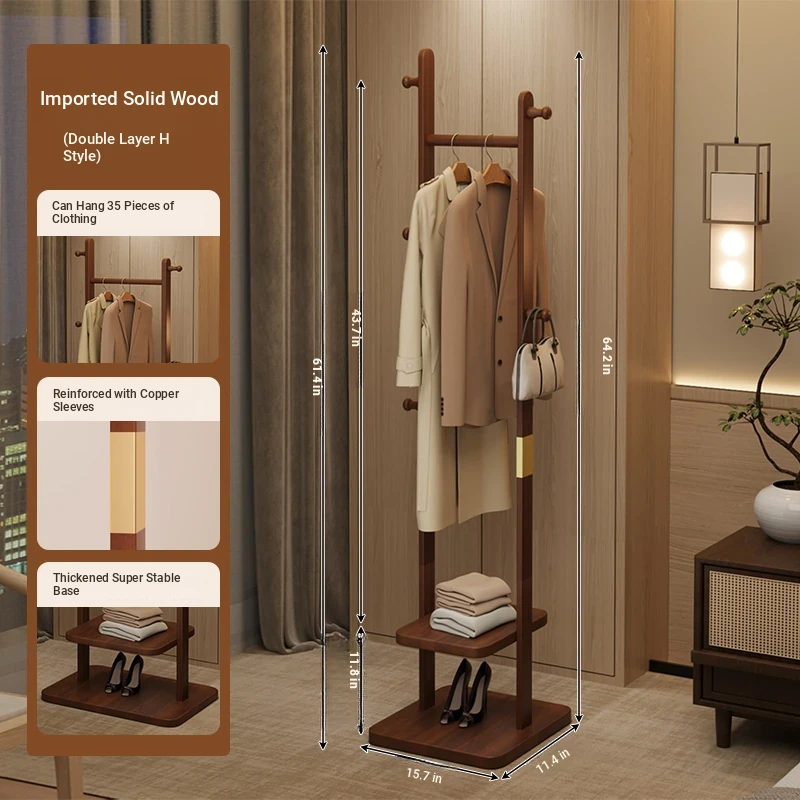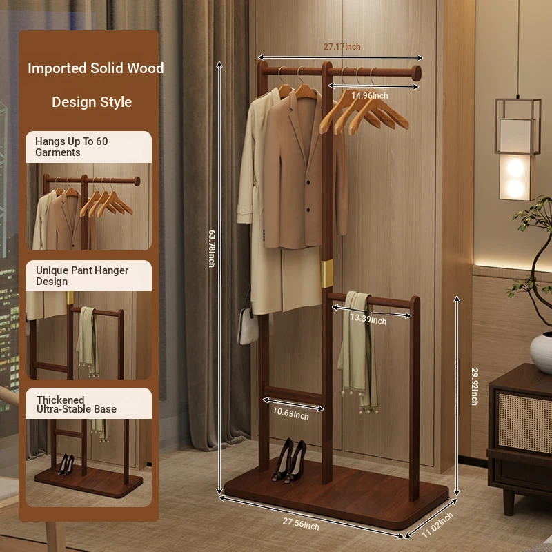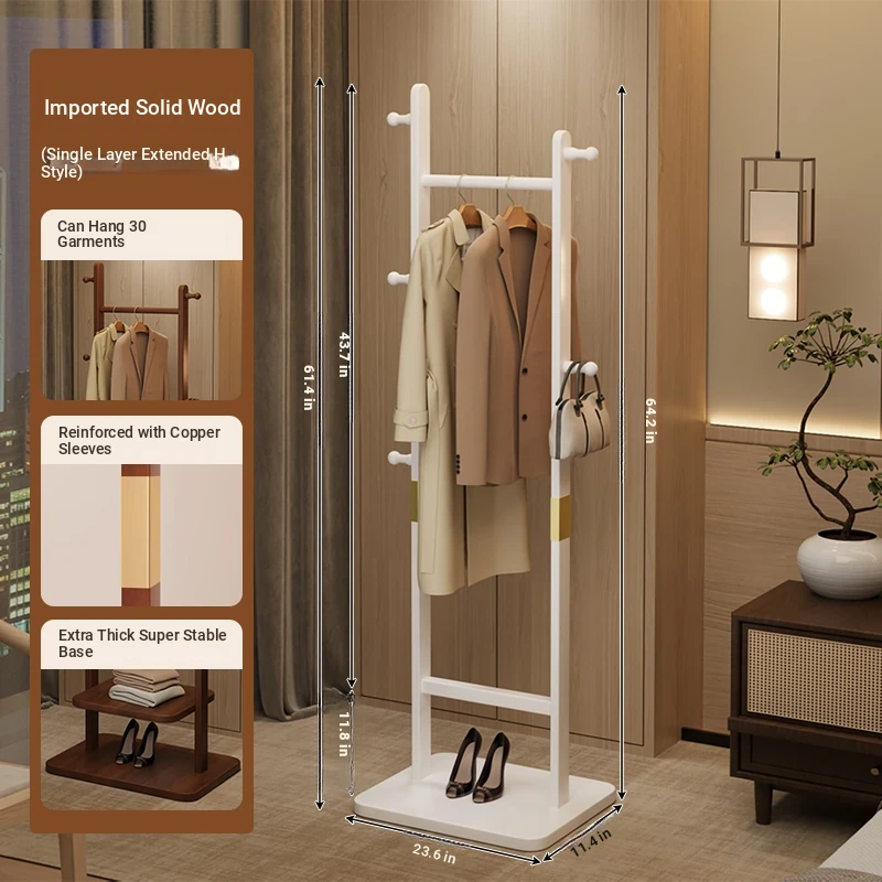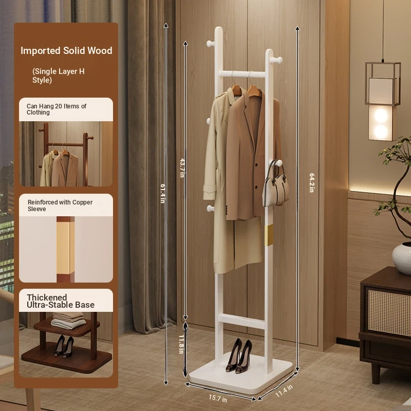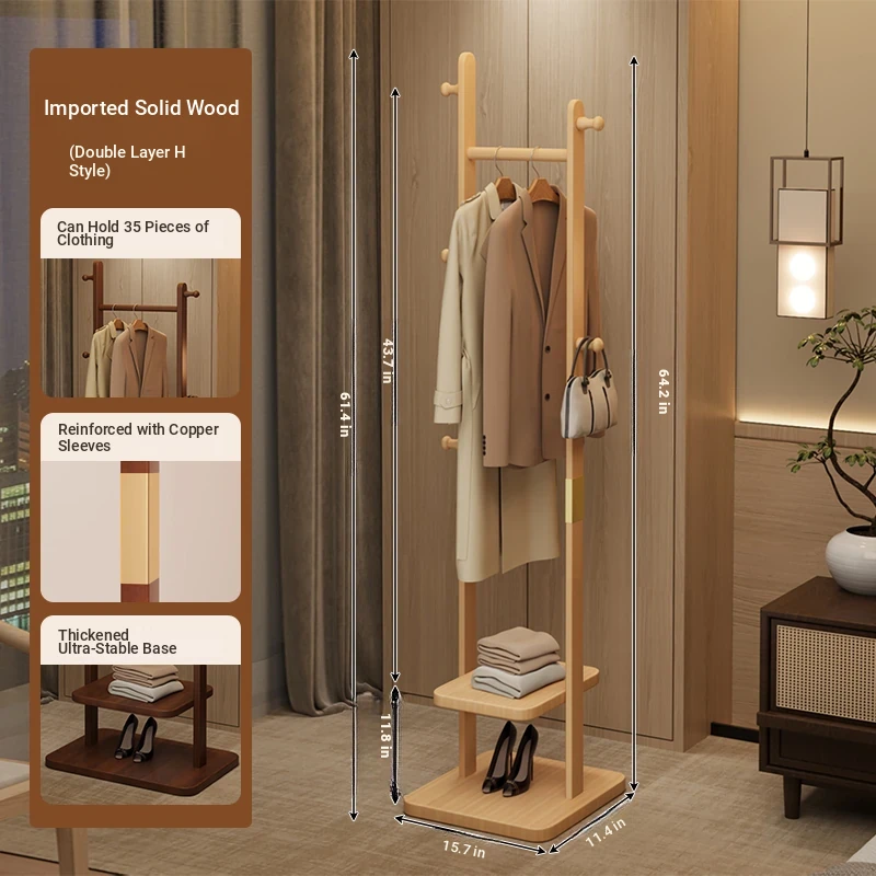 Solid Wood Floor Clothing Rack - Stylish and Functional Bedroom Coat Stand for Home Use, Perfect for Hanging Clothes by the Bed in Your Chinese-Style Room!