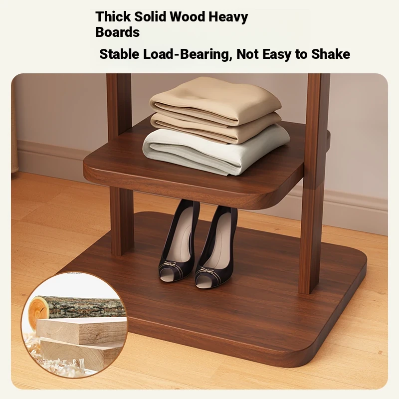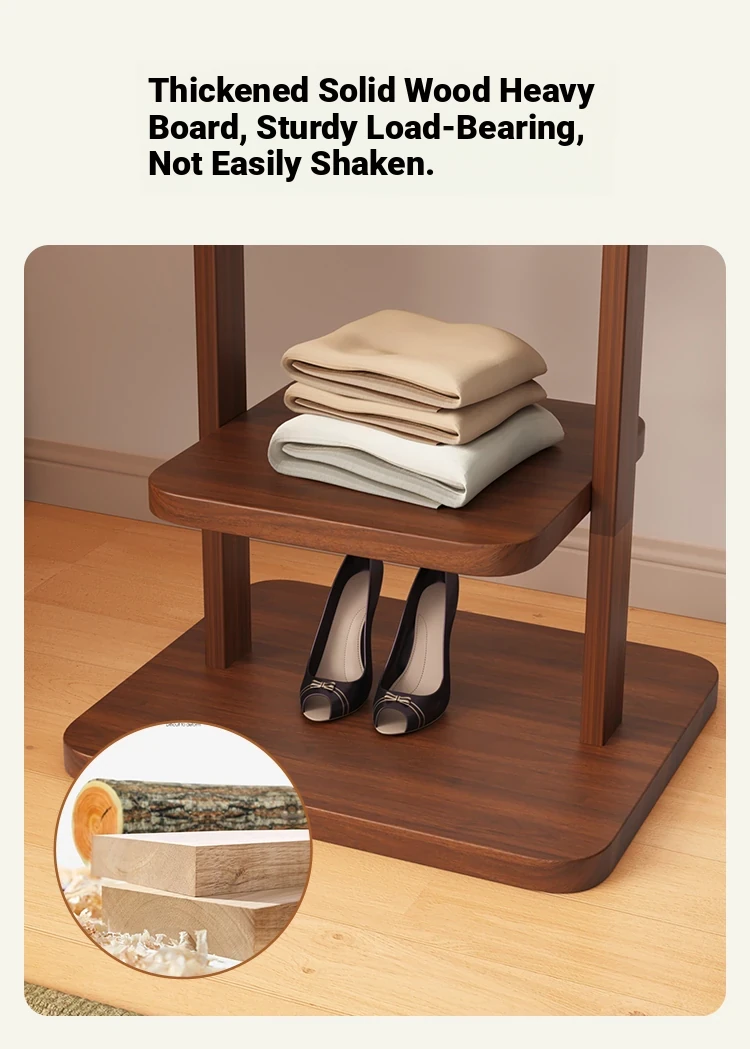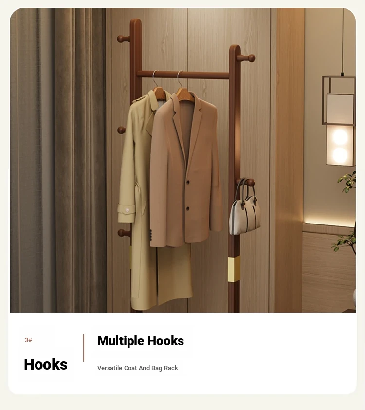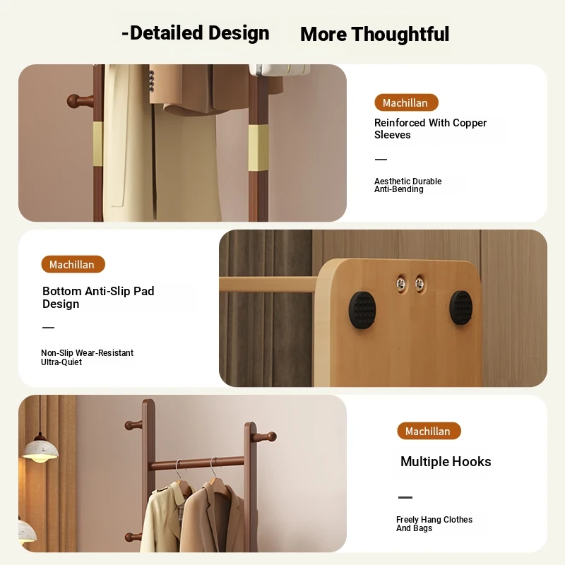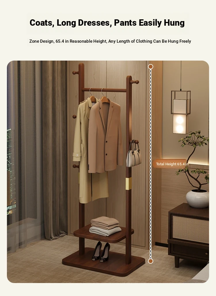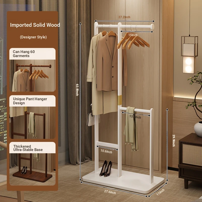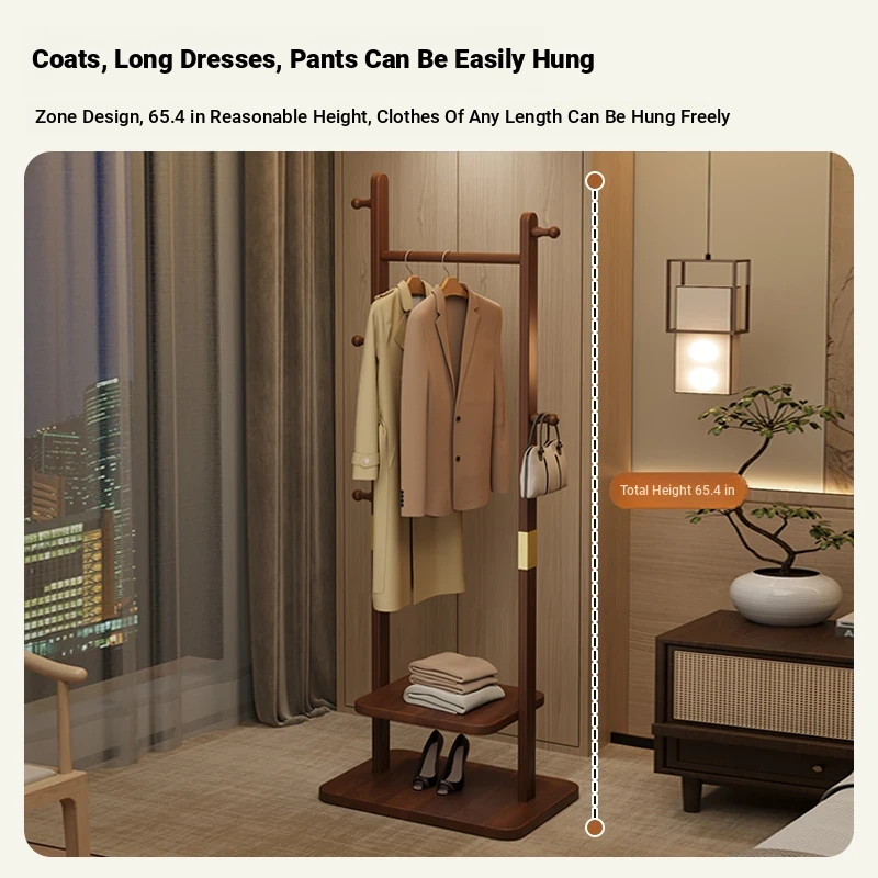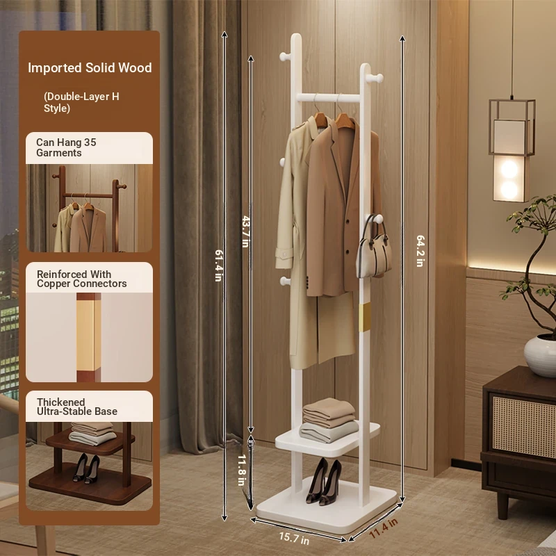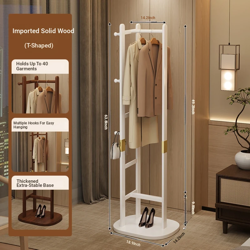 Solid Wood Floor Clothing Rack - Stylish and Functional Bedroom Coat Stand for Home Use, Perfect for Hanging Clothes by the Bed in Your Chinese-Style Room!