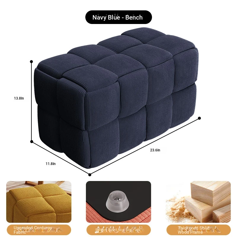 Navy Blue-bench [solid wood structure + corduroy] high strength load-bearing