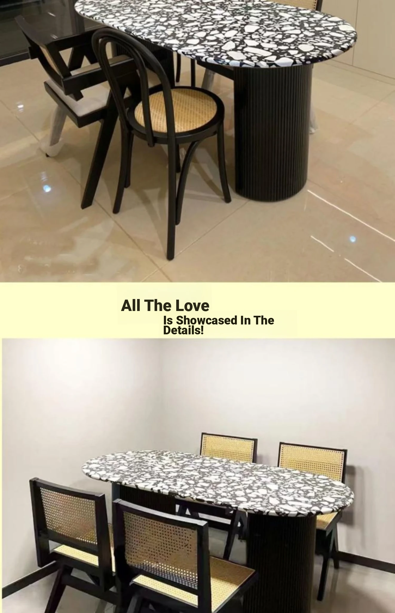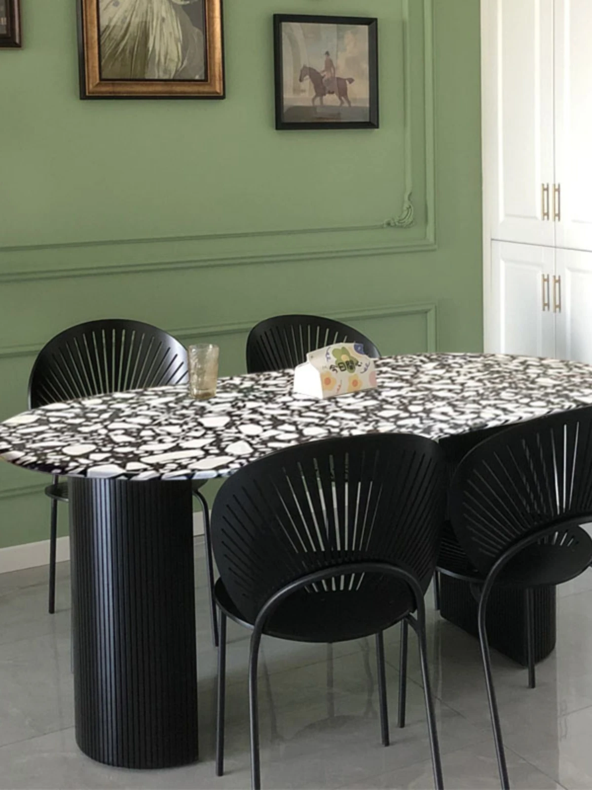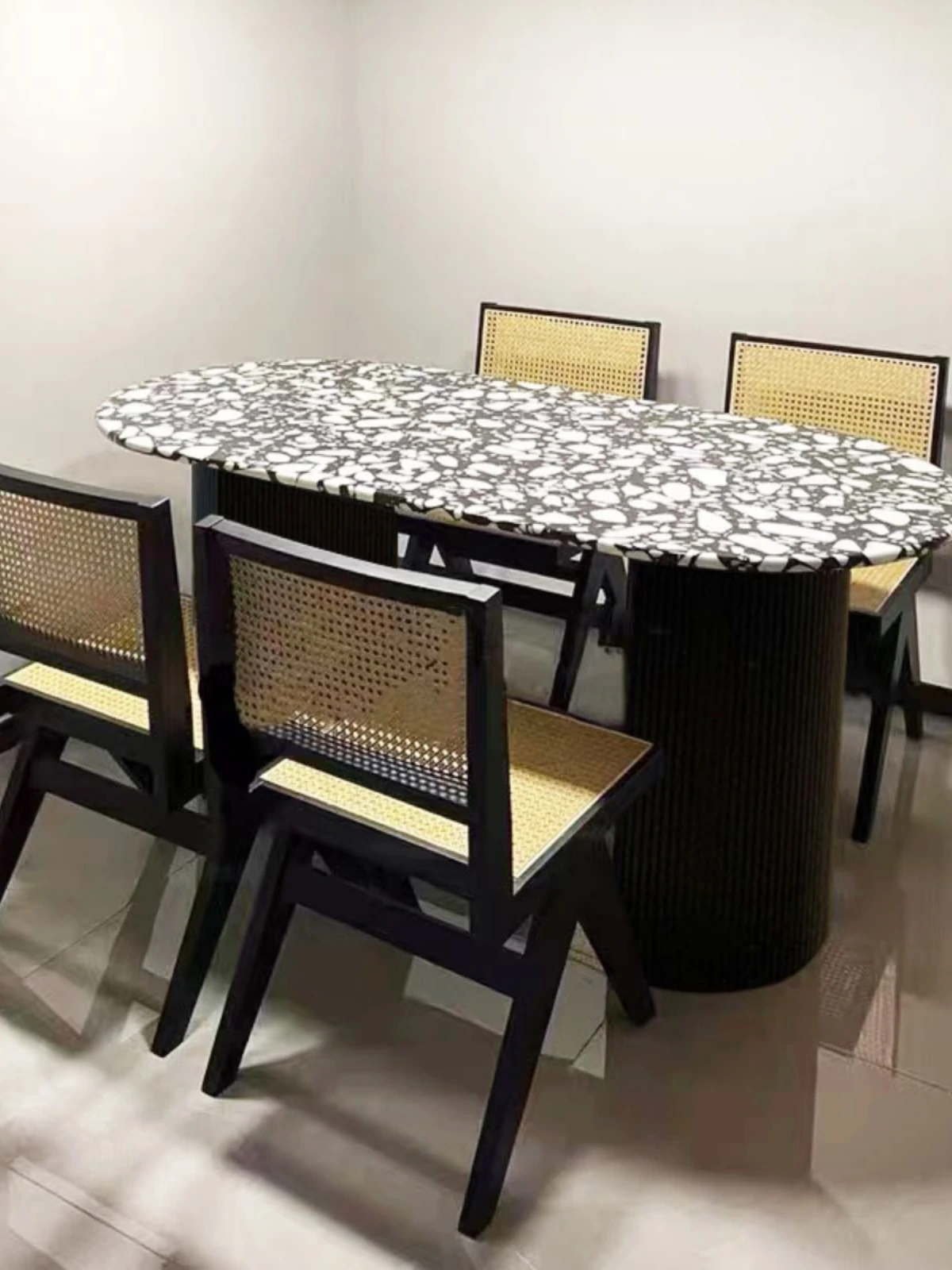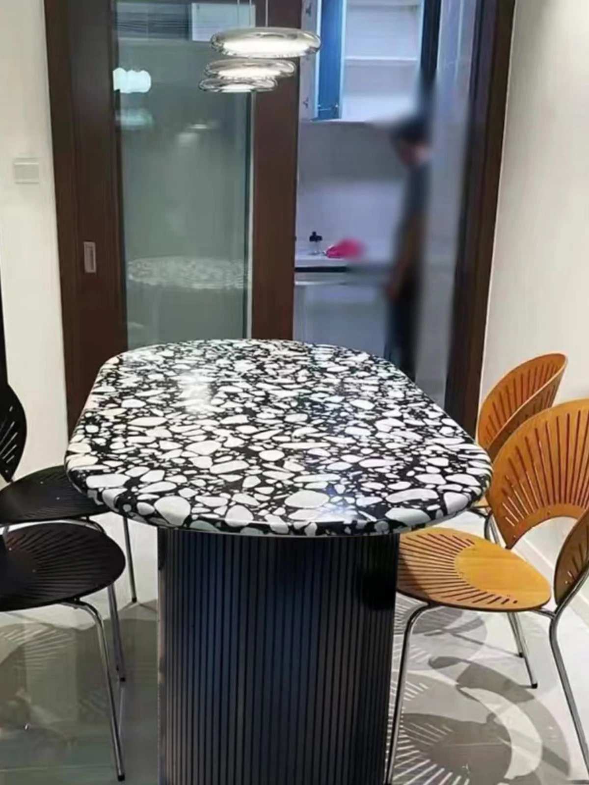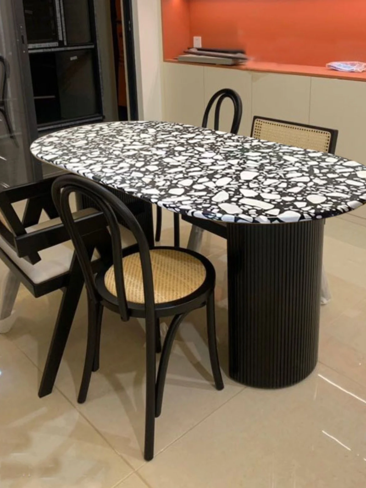 Stylish French Minimalist Black and White Terrazzo Dining Table - Marble and Solid Wood Design for Small Spaces, Perfect for Modern Dining Experience