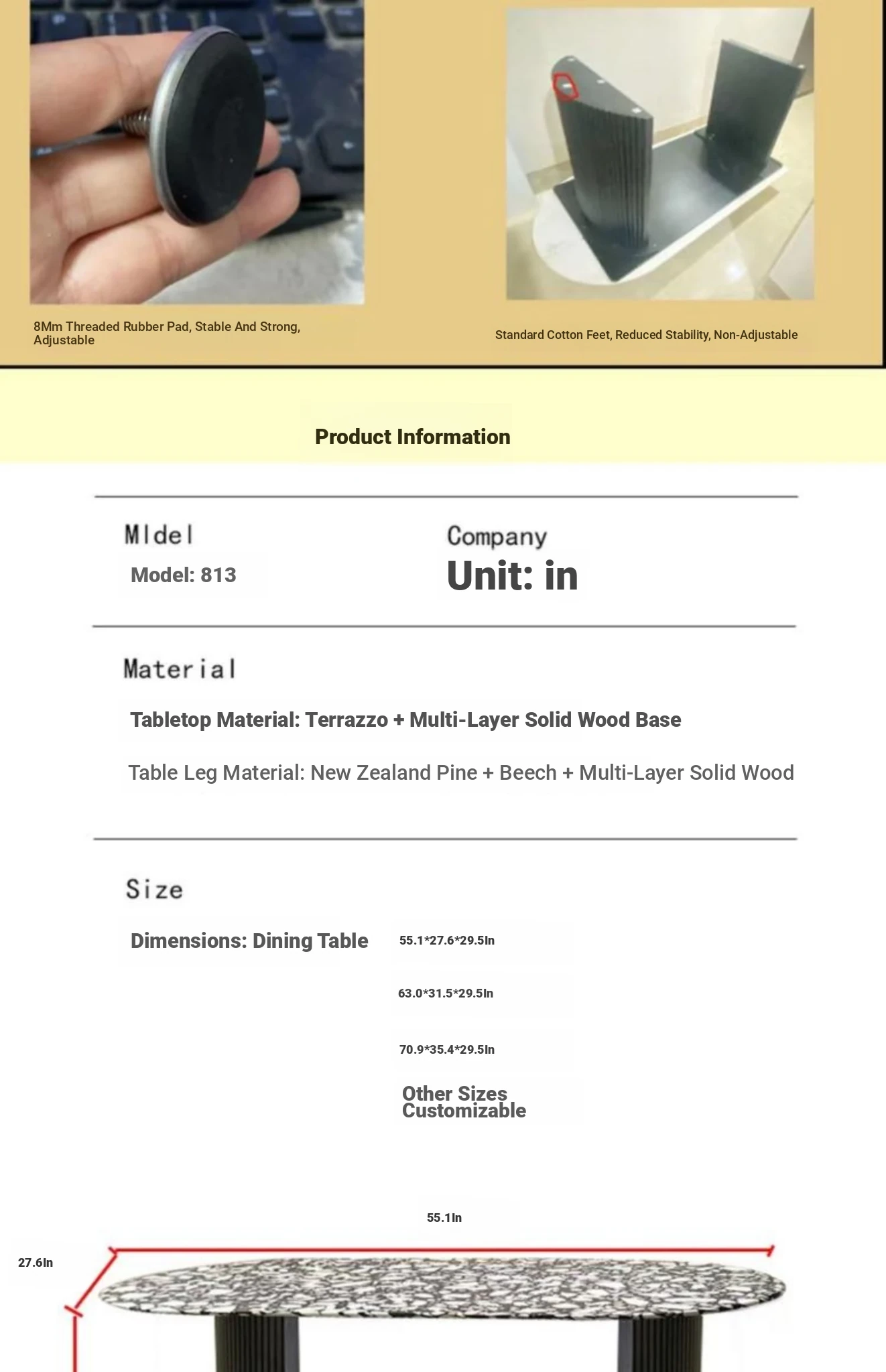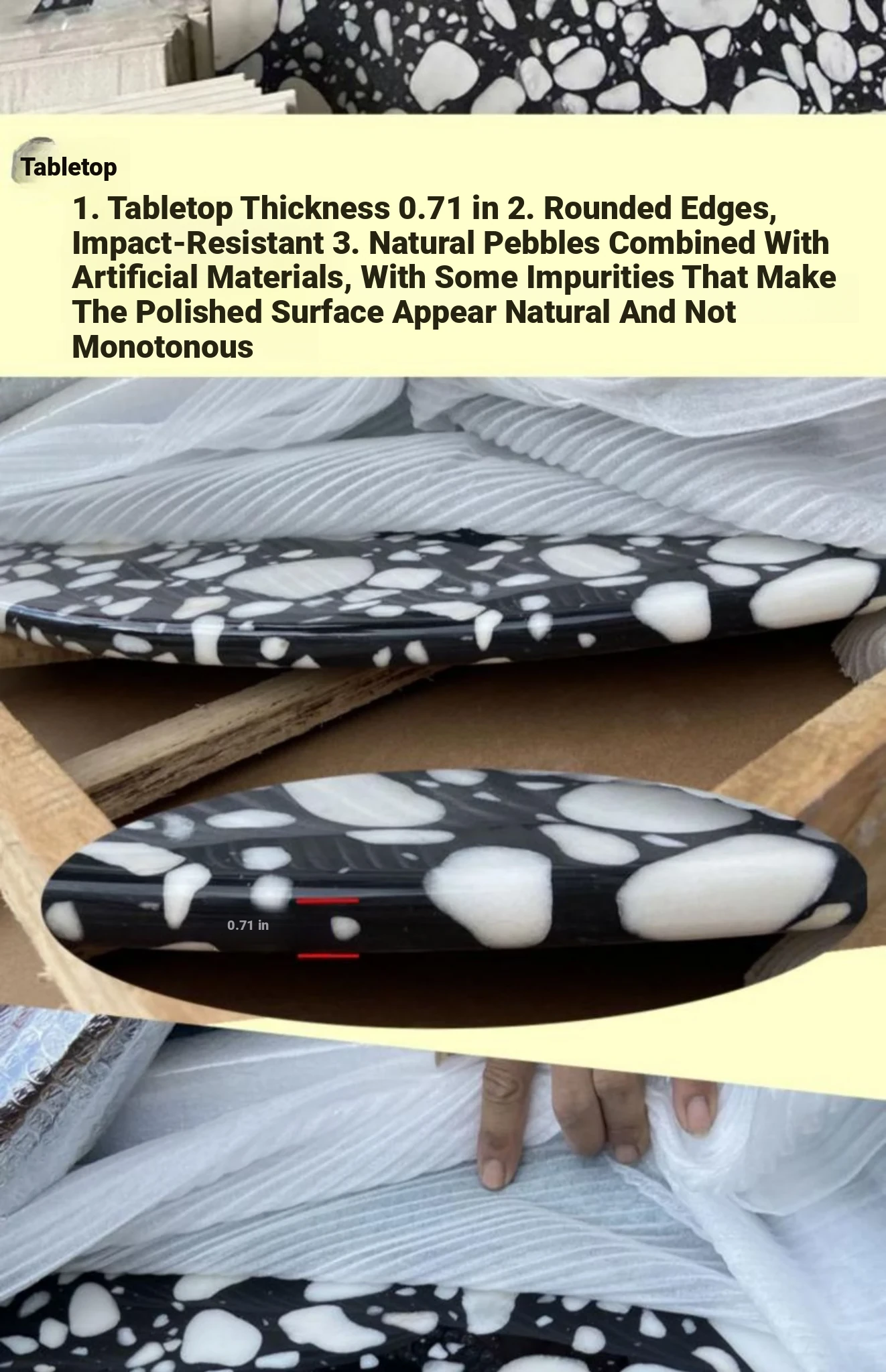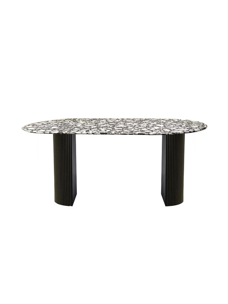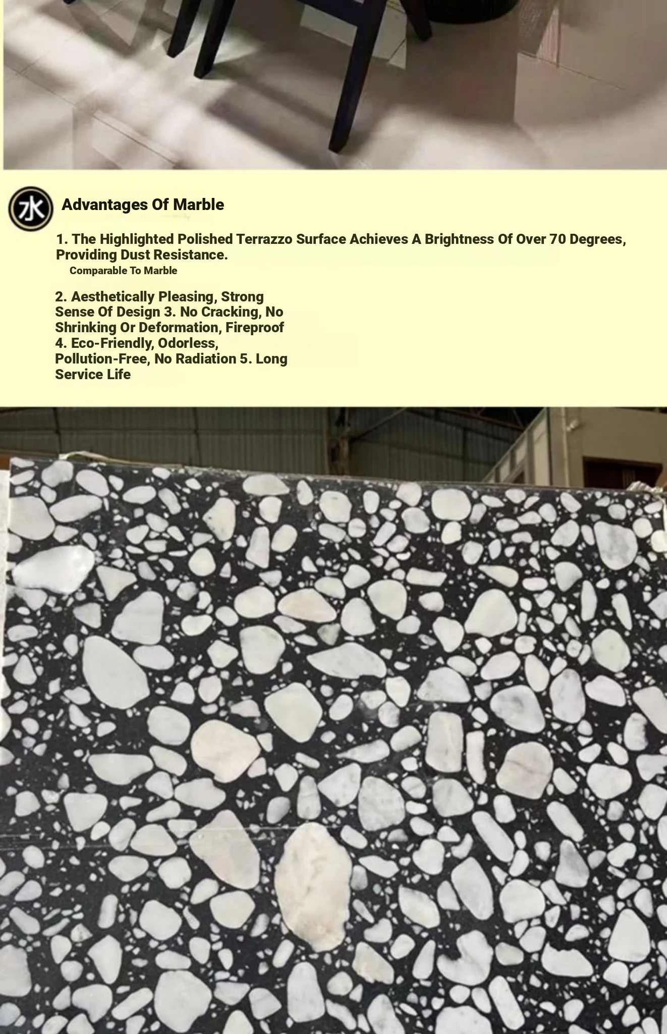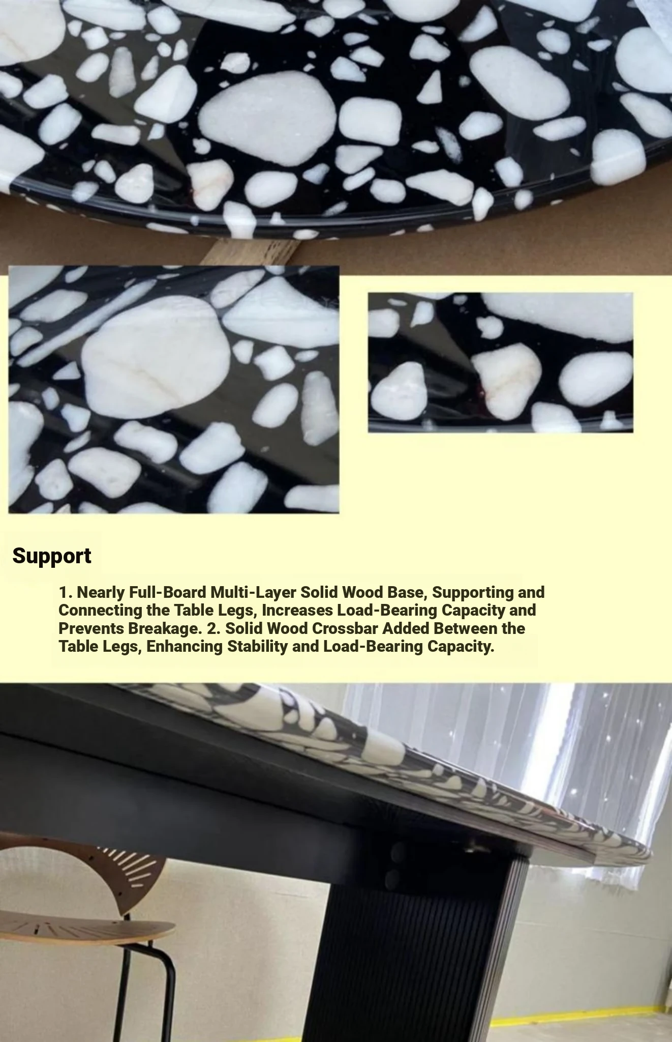 Stylish French Minimalist Black and White Terrazzo Dining Table - Marble and Solid Wood Design for Small Spaces, Perfect for Modern Dining Experience