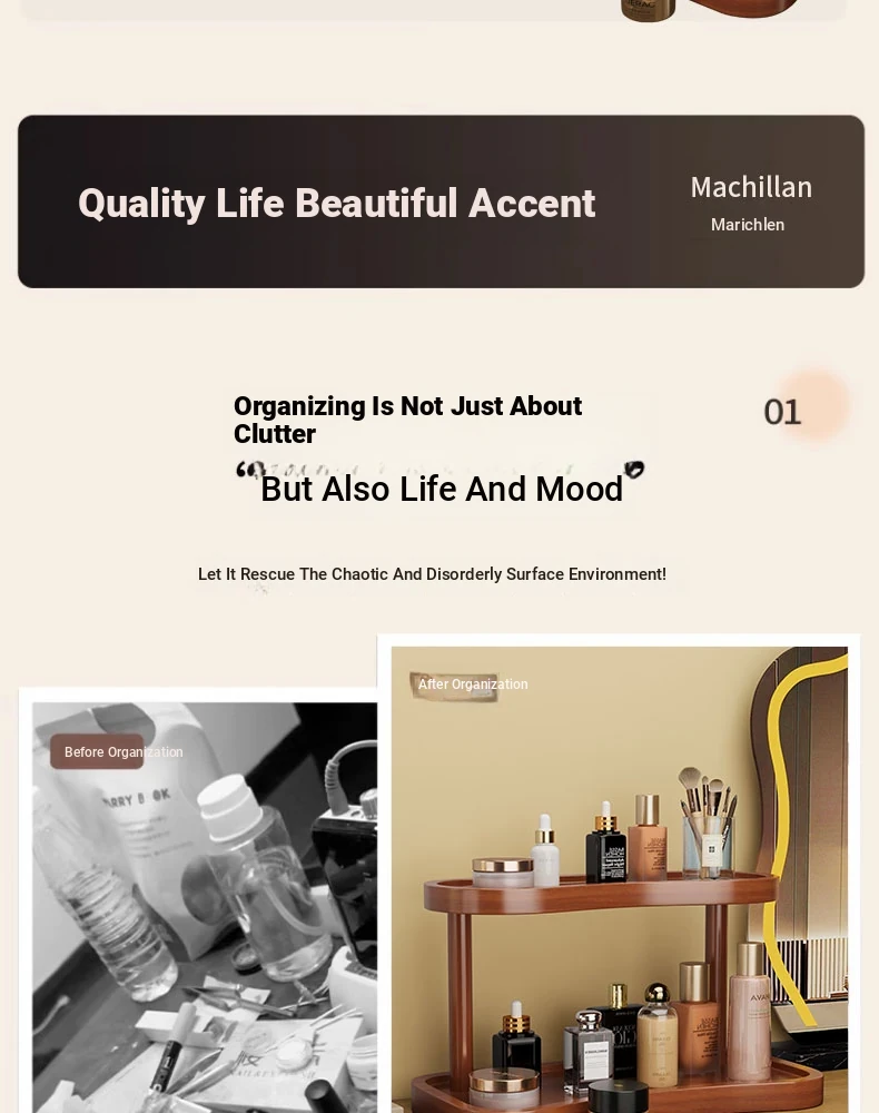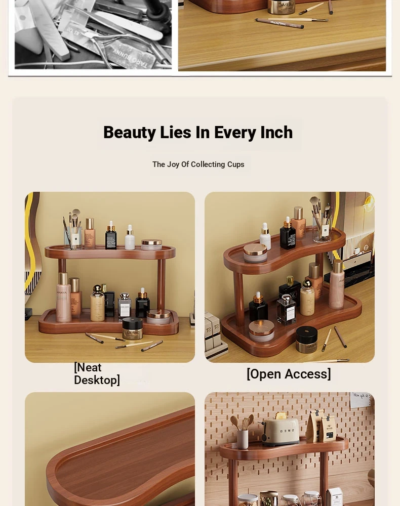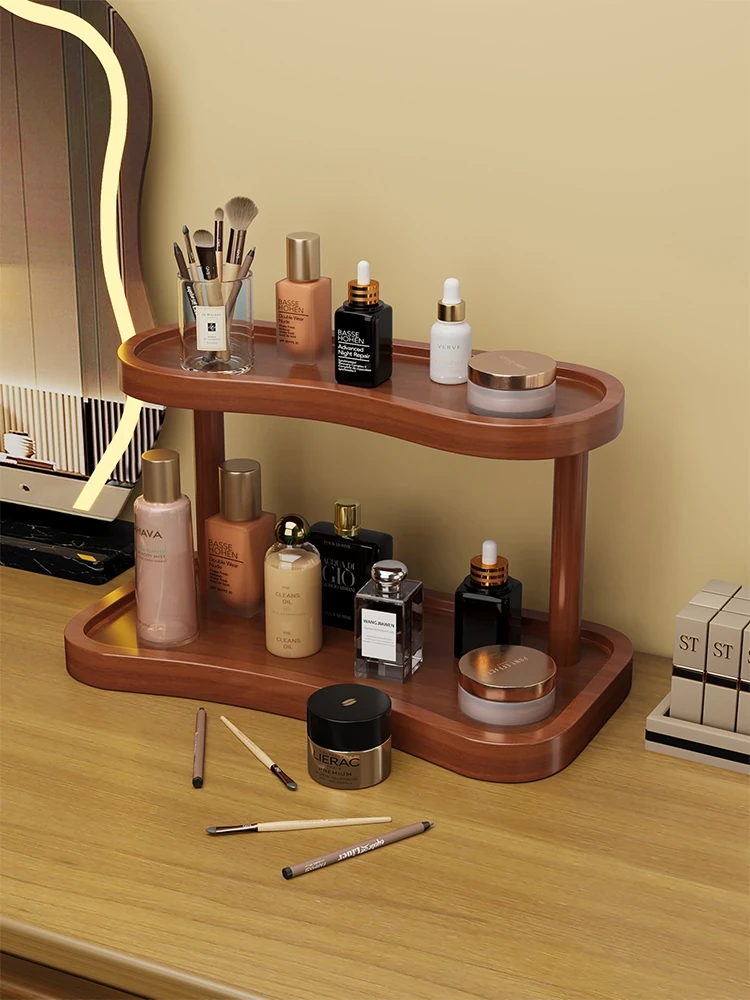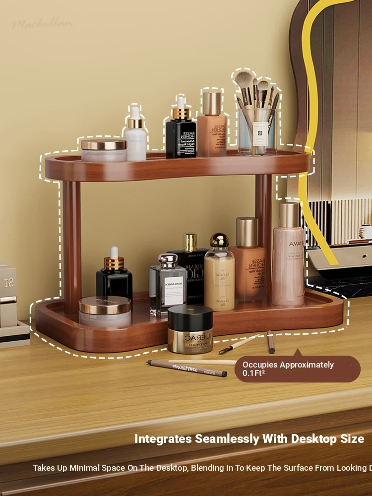 Stylish Wooden Makeup Organizer - Desktop Storage for Perfume, Lipstick, Skincare Products, and Jewelry - Perfect for Entryway and Vanity Use!