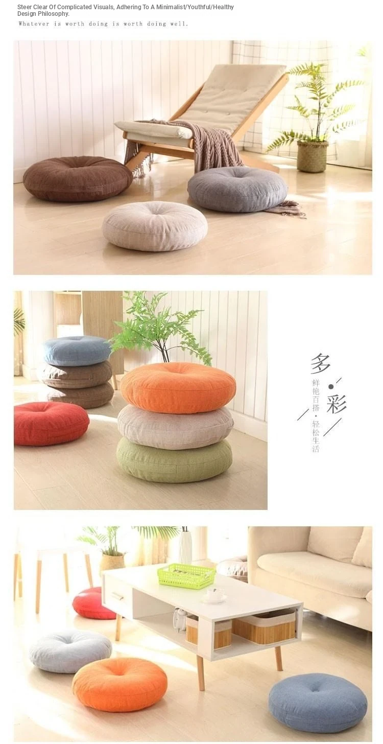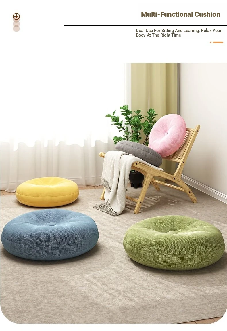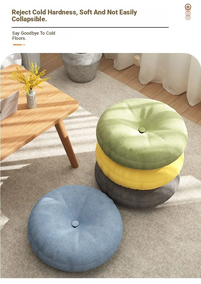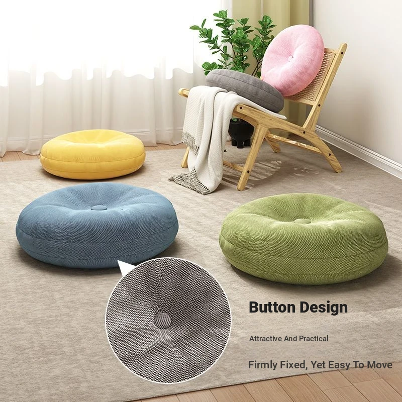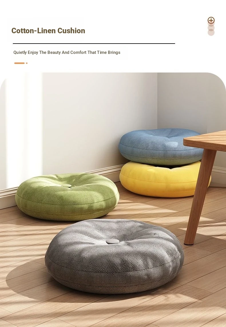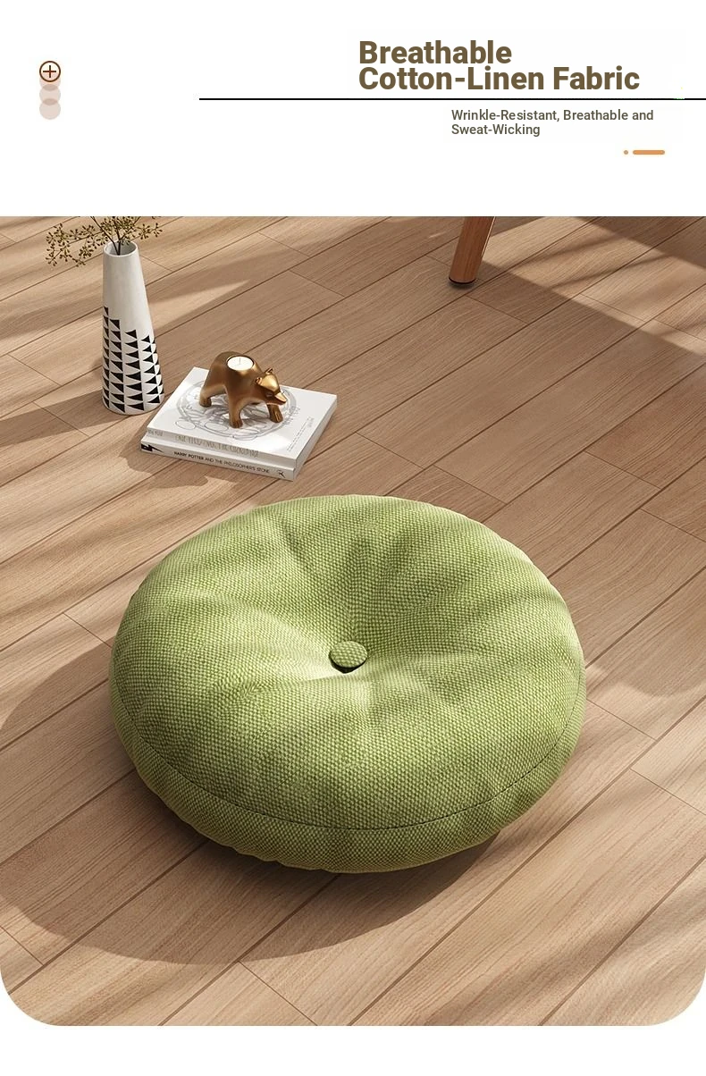 Thickened Round Linen Floor Cushion for Home Use - Ideal for Bay Windows, Tatami, and Balconies - Comfortable Lazy Chair Pad for Ultimate Relaxation