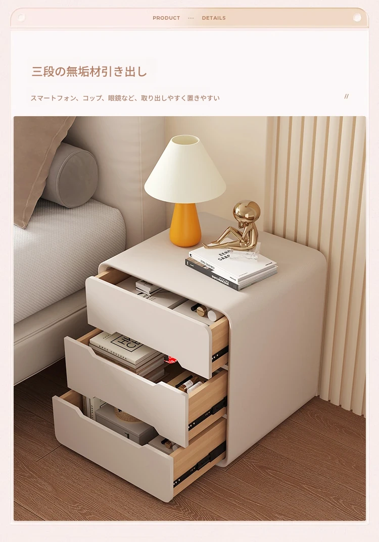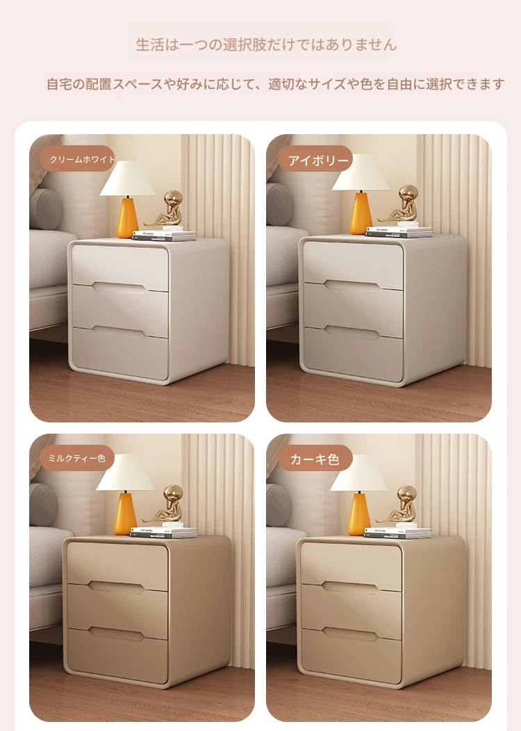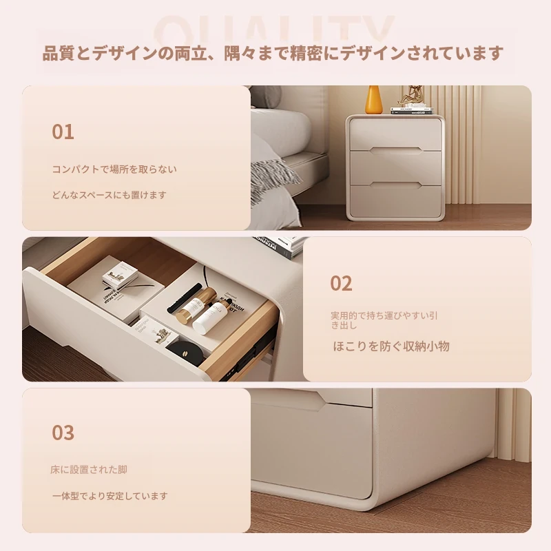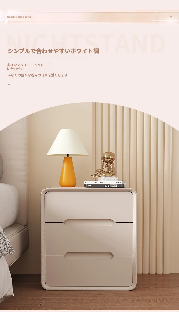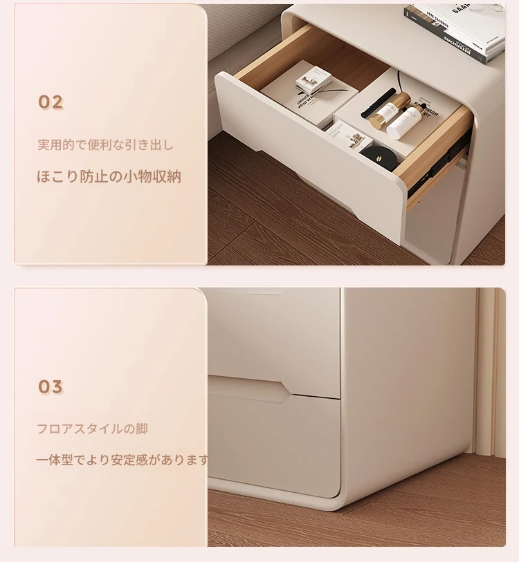 2025年新作!全実木クリーム風ベッドサイドキャビネット - シンプルでモダンなデザイン、家用寝室にぴったりなコンパクト収納キャビネット!おしゃれな空間を演出します。