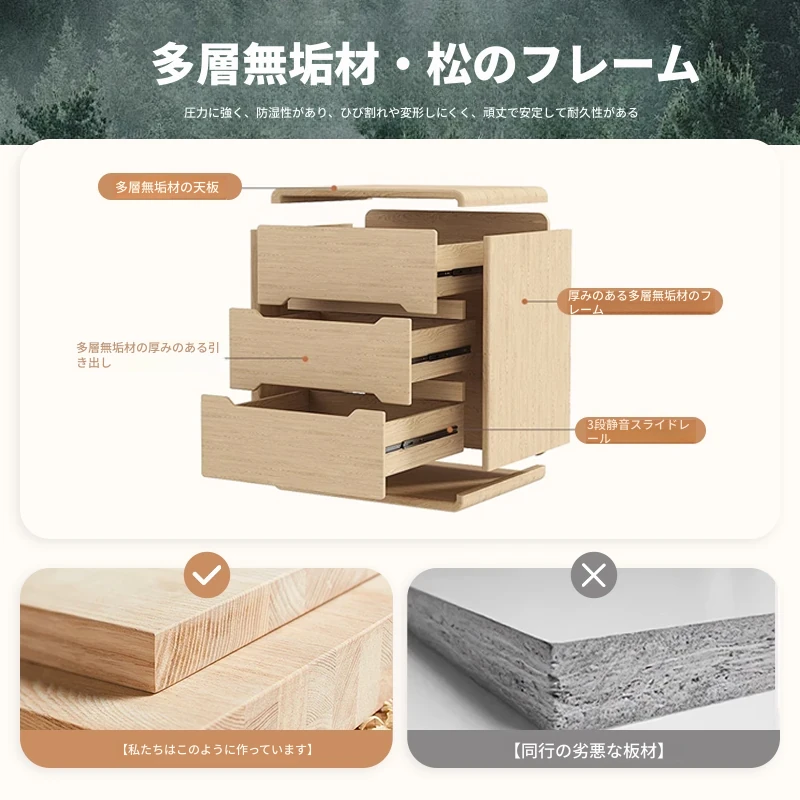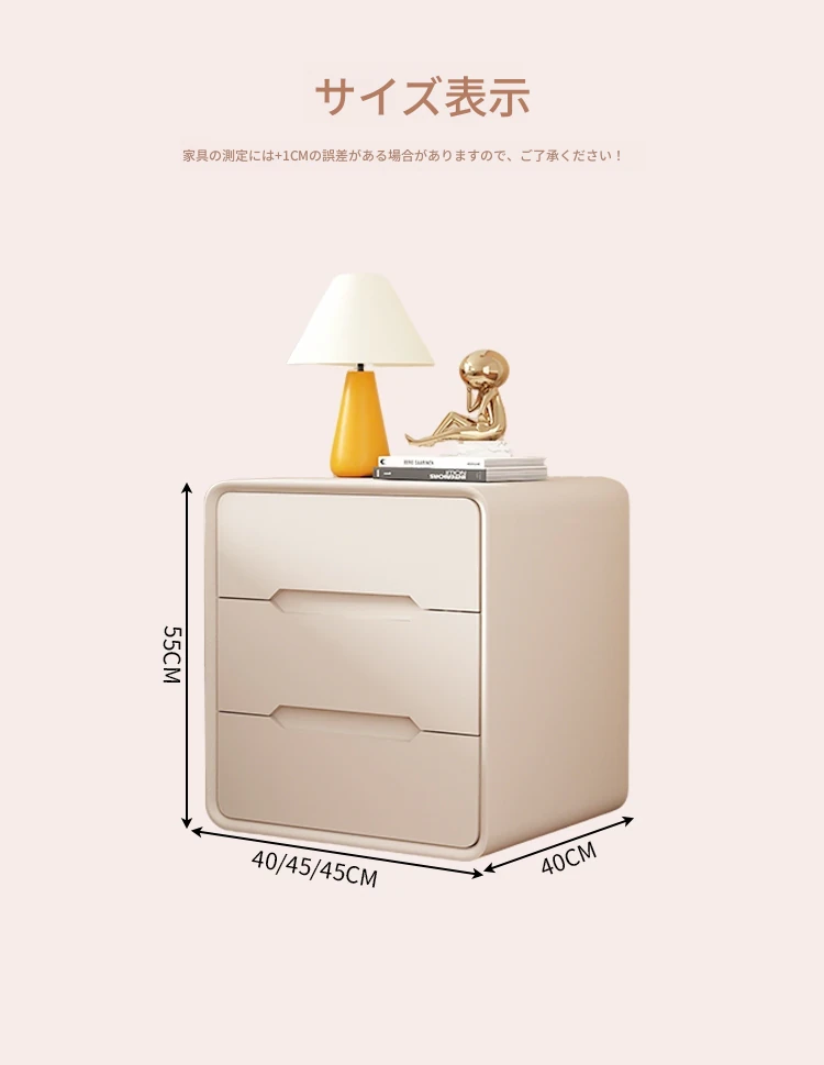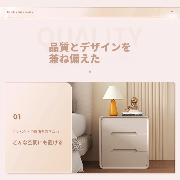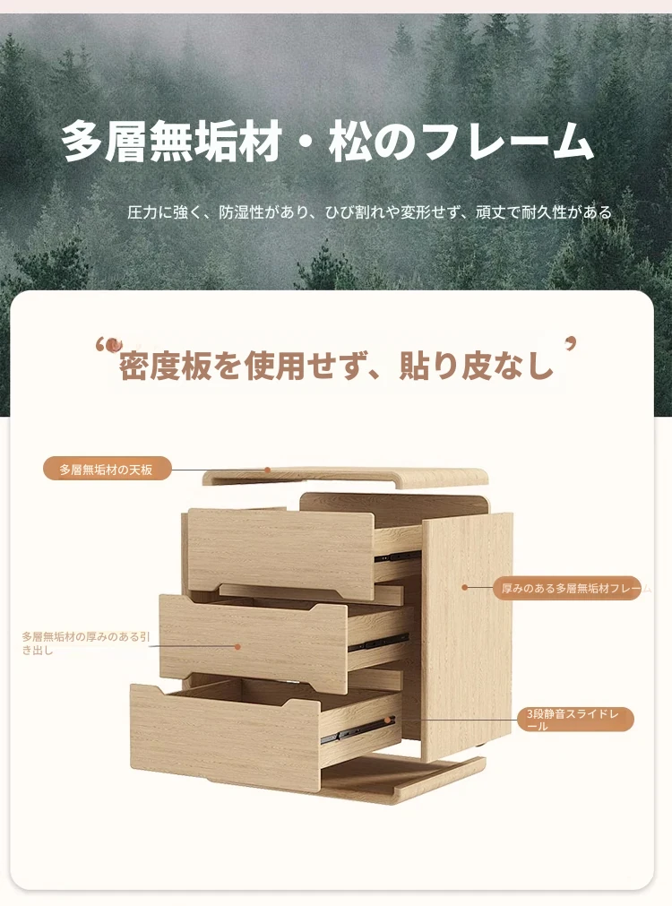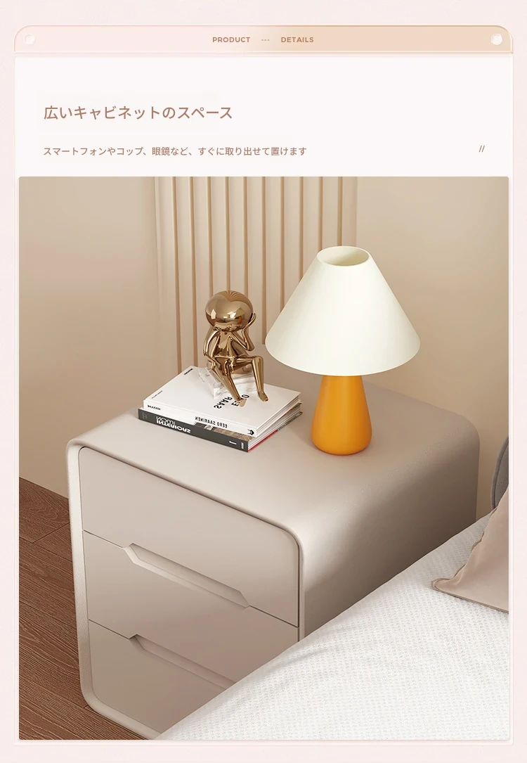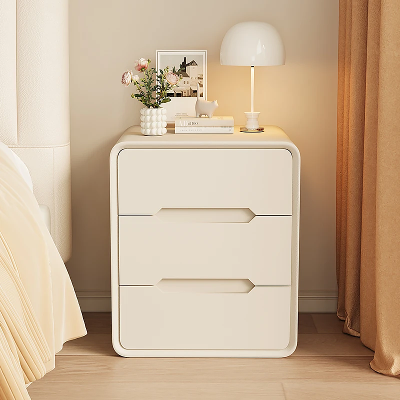 2025年新作!全実木クリーム風ベッドサイドキャビネット - シンプルでモダンなデザイン、家用寝室にぴったりなコンパクト収納キャビネット!おしゃれな空間を演出します。