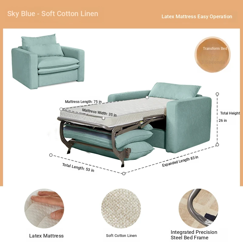 2025 New Multifunctional Convertible Sofa Bed with Mattress - Foldable, Long-lasting Comfort for Your Living Room, Perfect for Guests!