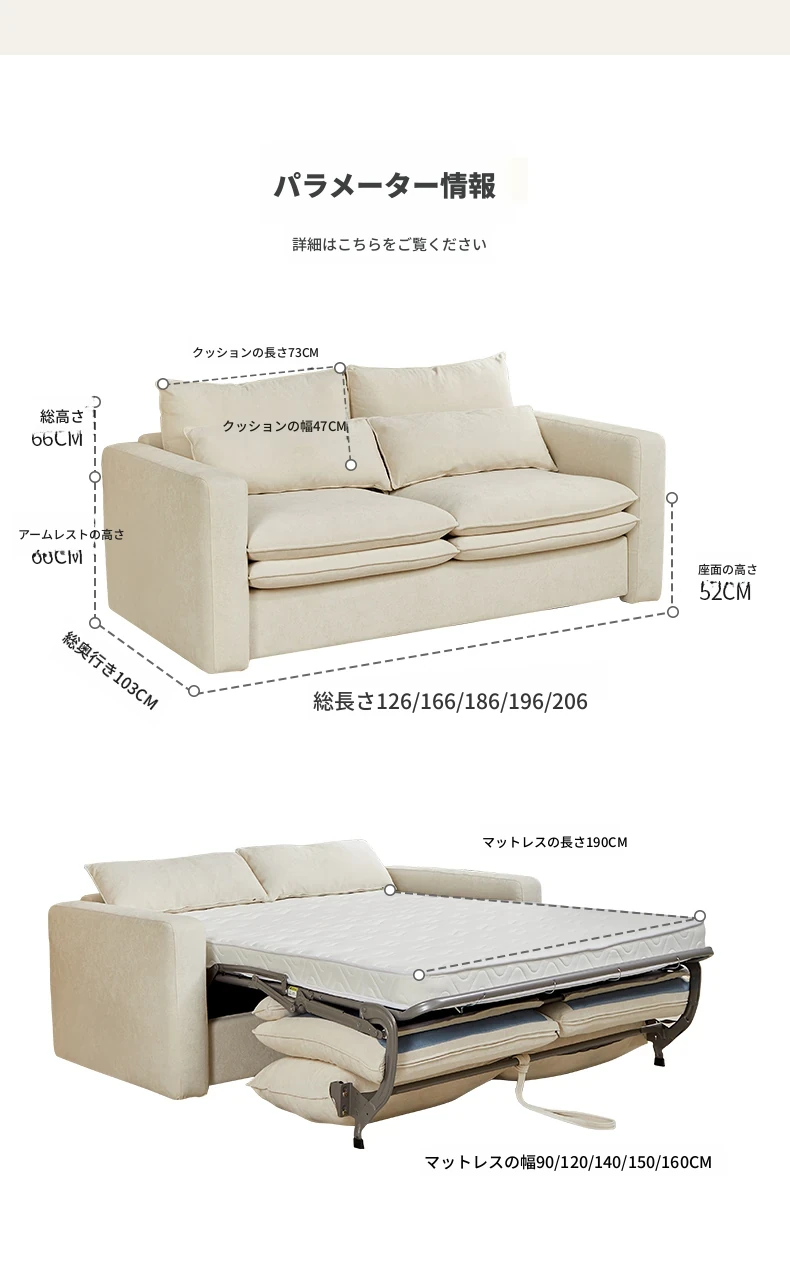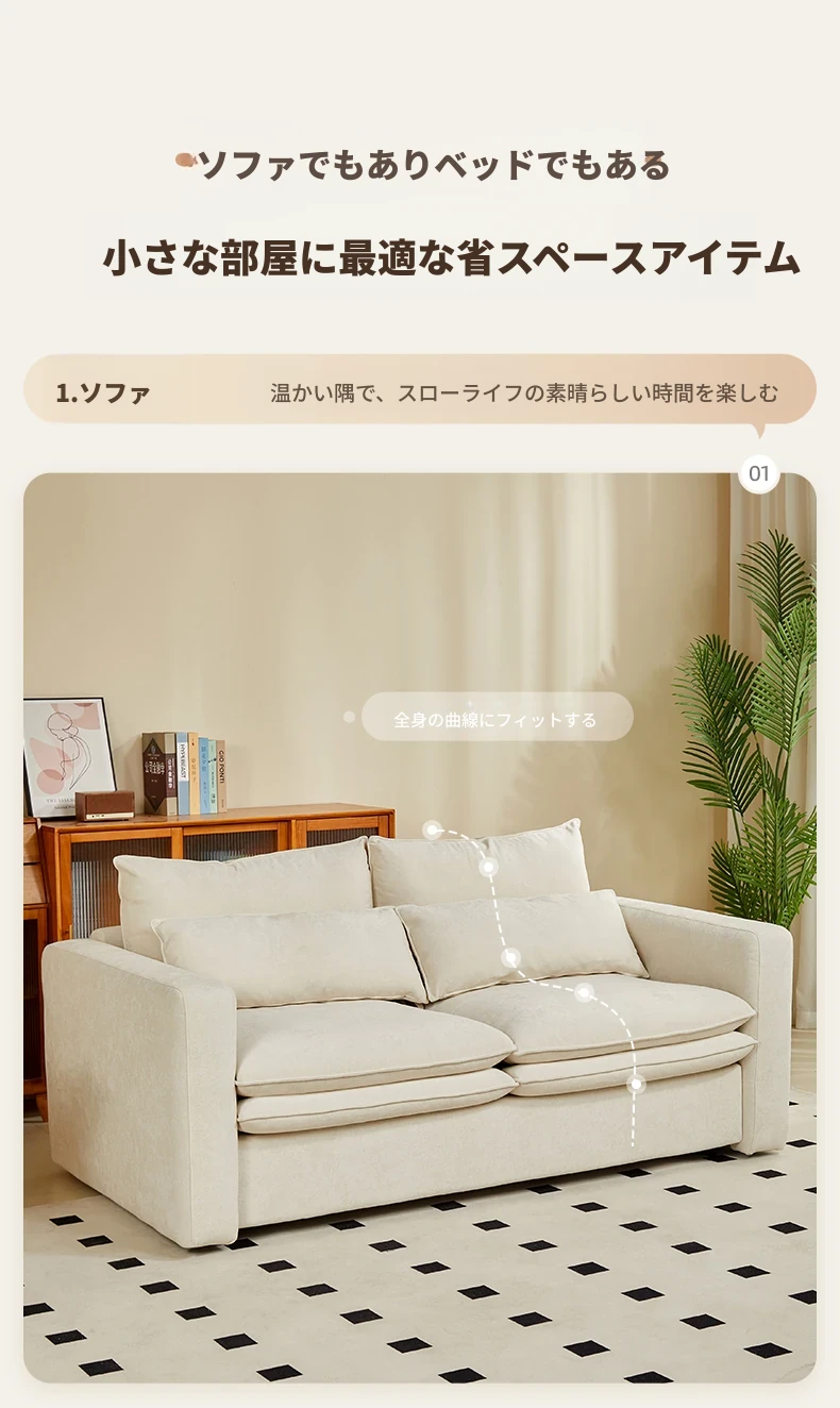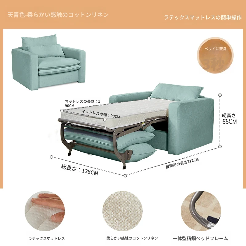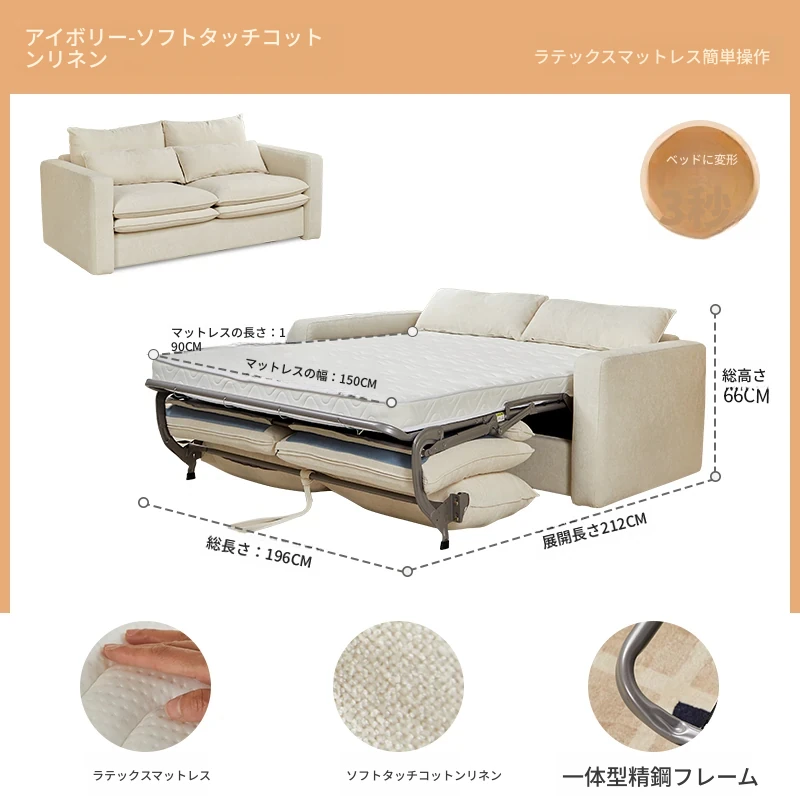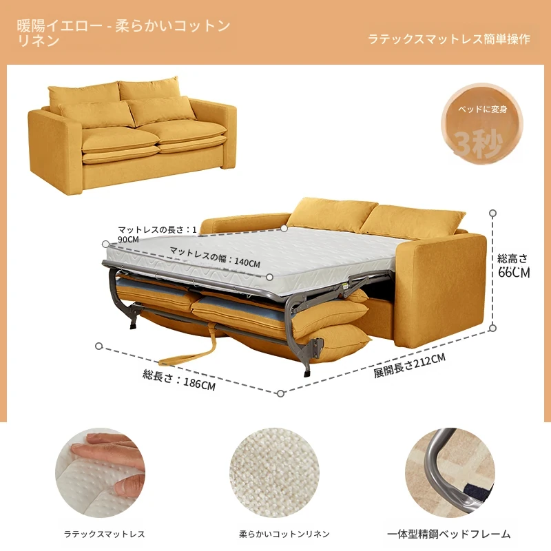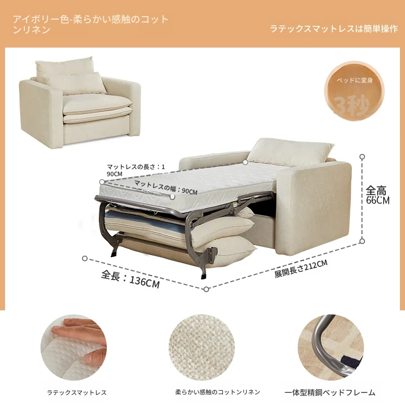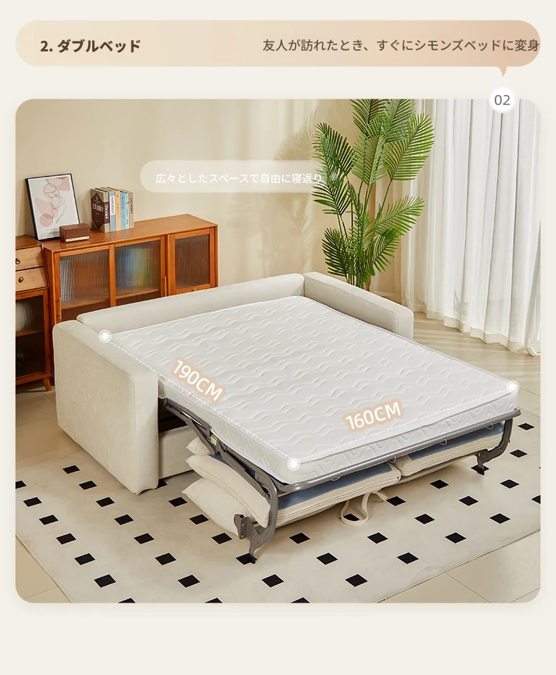 2025年新作!多功能折叠ソファベッド - マットレス付きで長期間快適に眠れる!リビングに最適な2in1デザイン。おしゃれで実用的な空間を演出します!