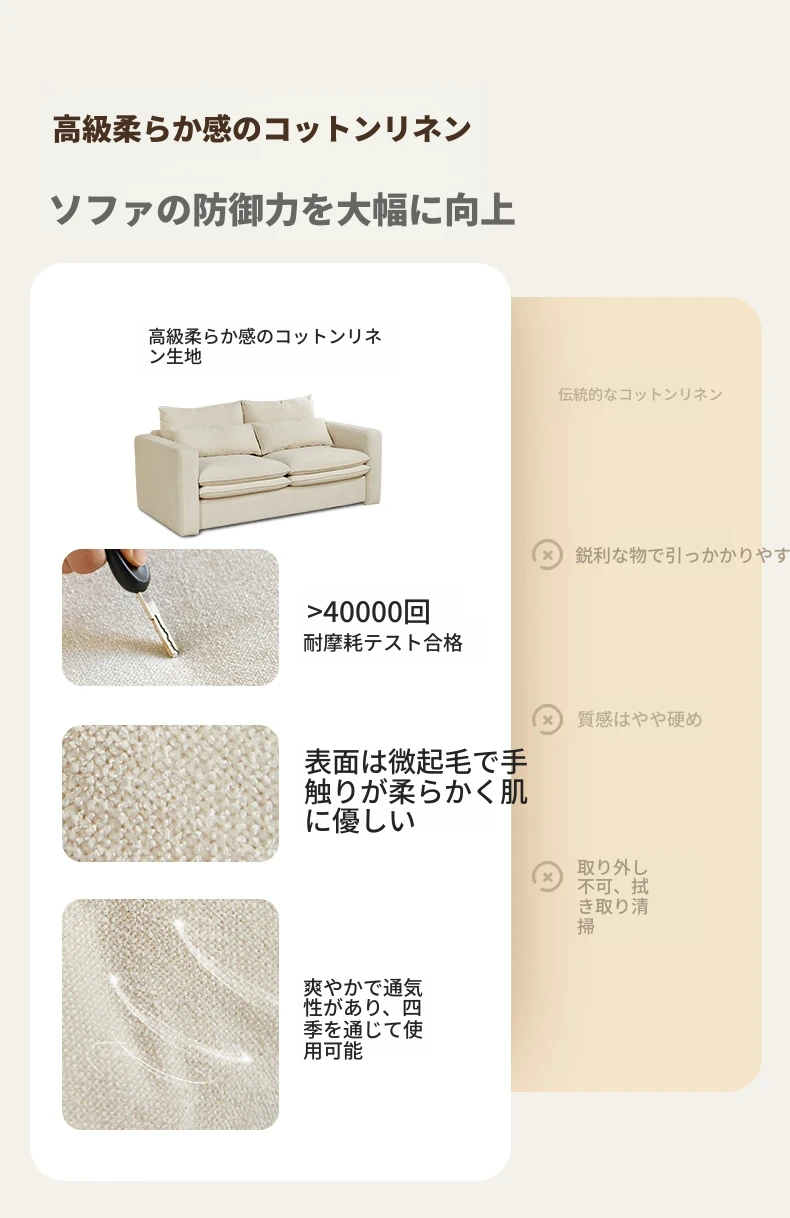 綿麻-アイボリー206CM【ラテックスマットレス含む】