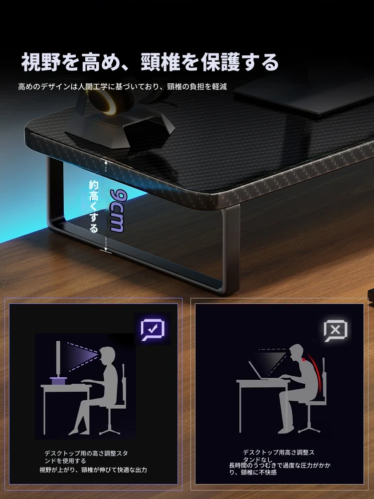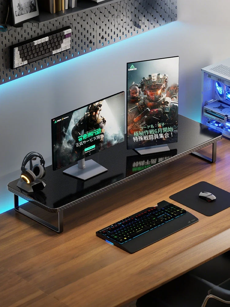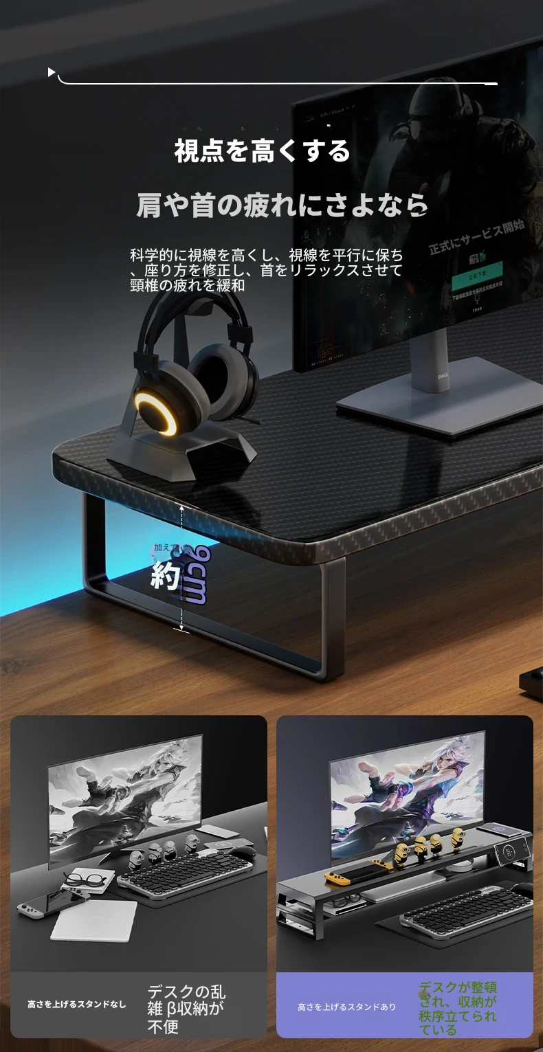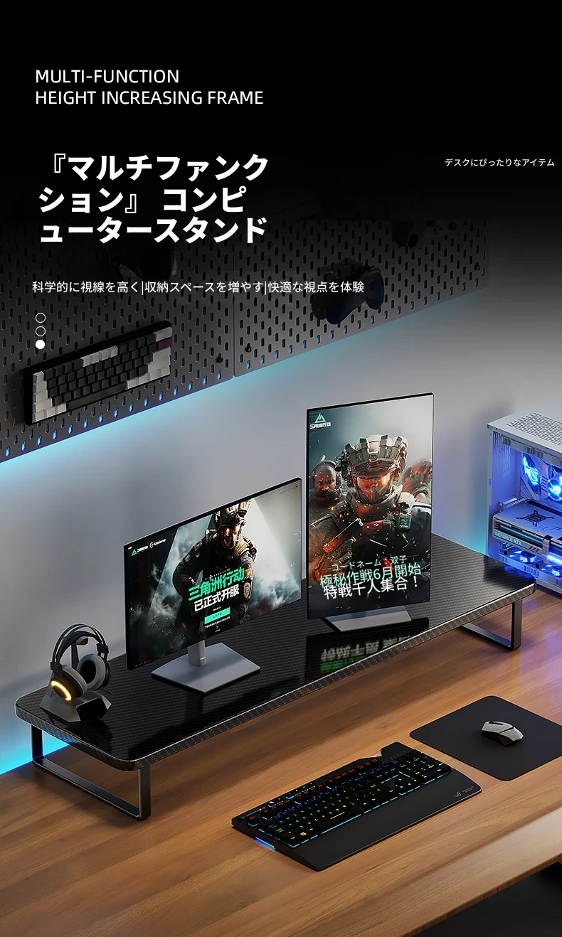 ゲーミングデスク用高伸縮スタンド、パソコンモニターやノートパソコンをしっかり支えるデスクトップ収納ラック!作業スペースを広げ、快適な視野を実現。あなたのゲーム体験を一段と向上させます!