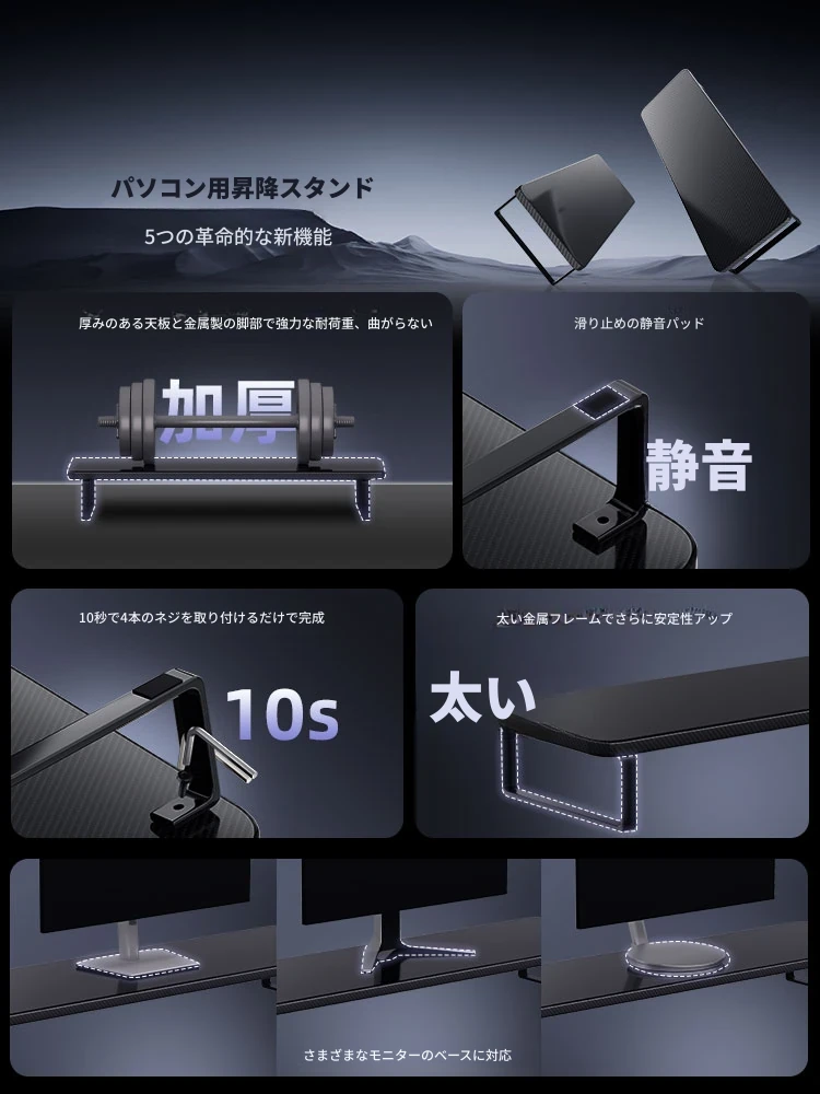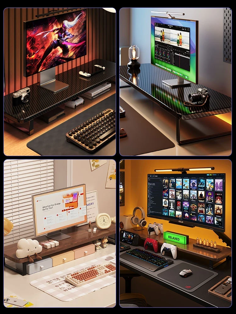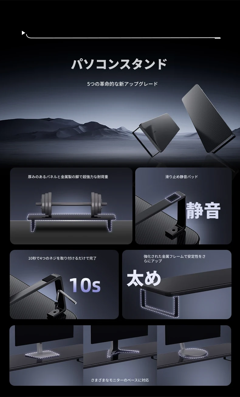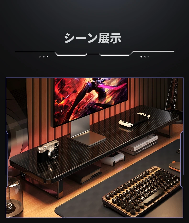 ゲーミングデスク用高伸縮スタンド、パソコンモニターやノートパソコンをしっかり支えるデスクトップ収納ラック!作業スペースを広げ、快適な視野を実現。あなたのゲーム体験を一段と向上させます!