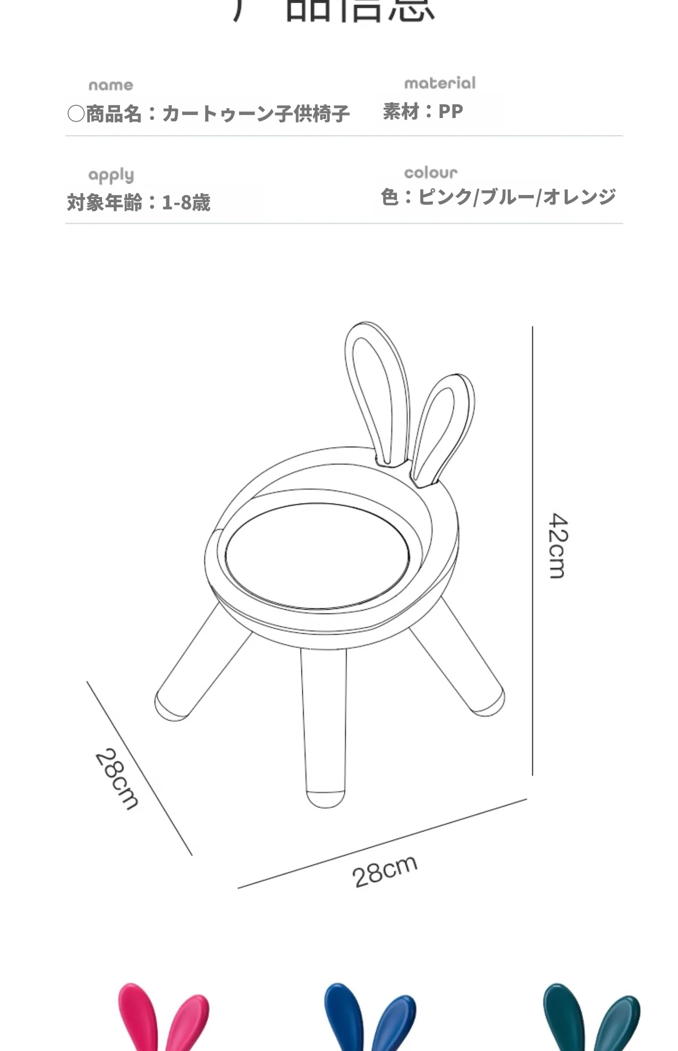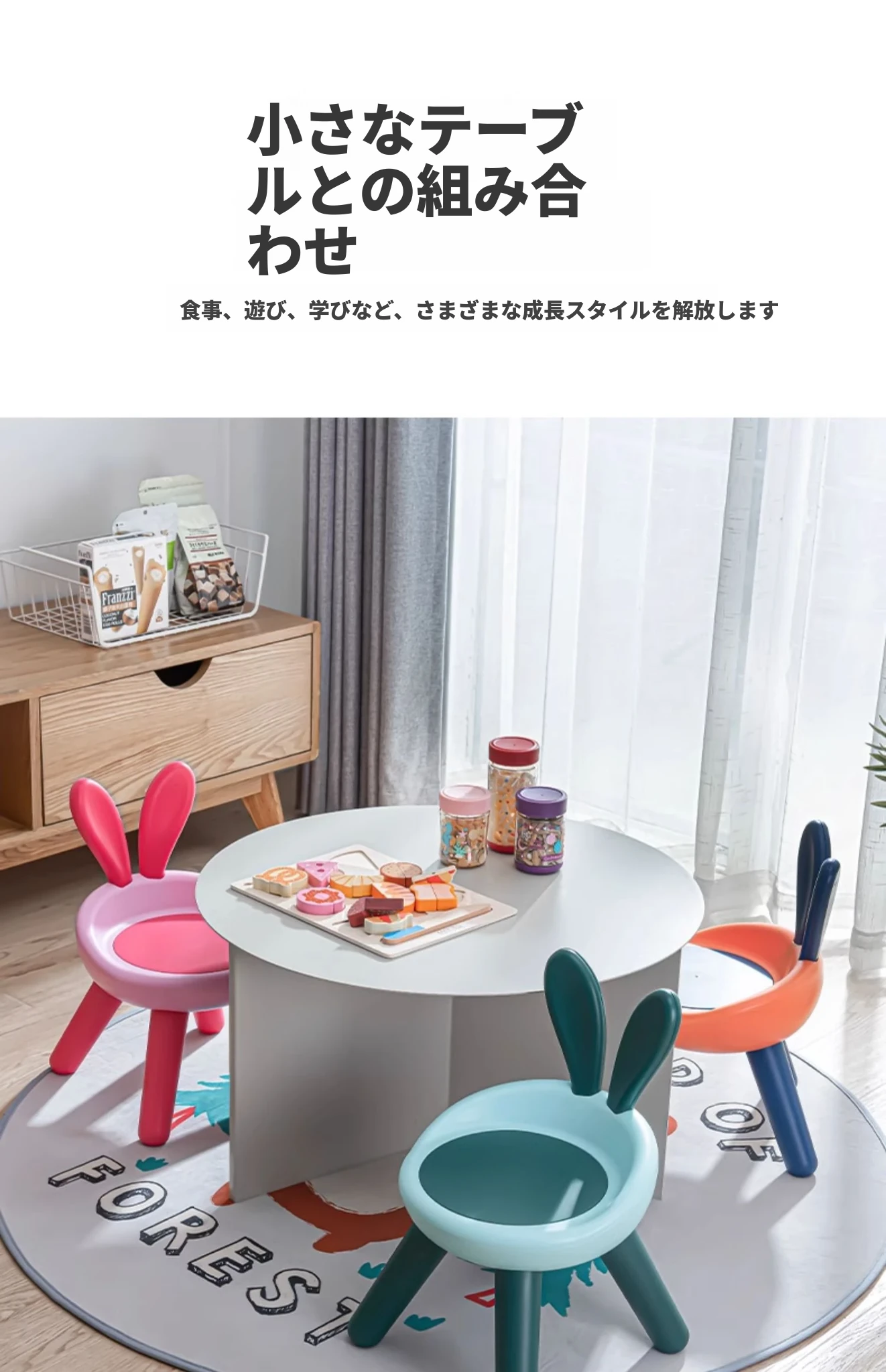 かわいいウサギの背もたれ付き子供用スツール!おしゃれで創造的なデザイン、滑り止め機能付きで安全。家庭や幼稚園で大活躍するベビー椅子です。お子様の成長をサポートする理想的なアイテム!