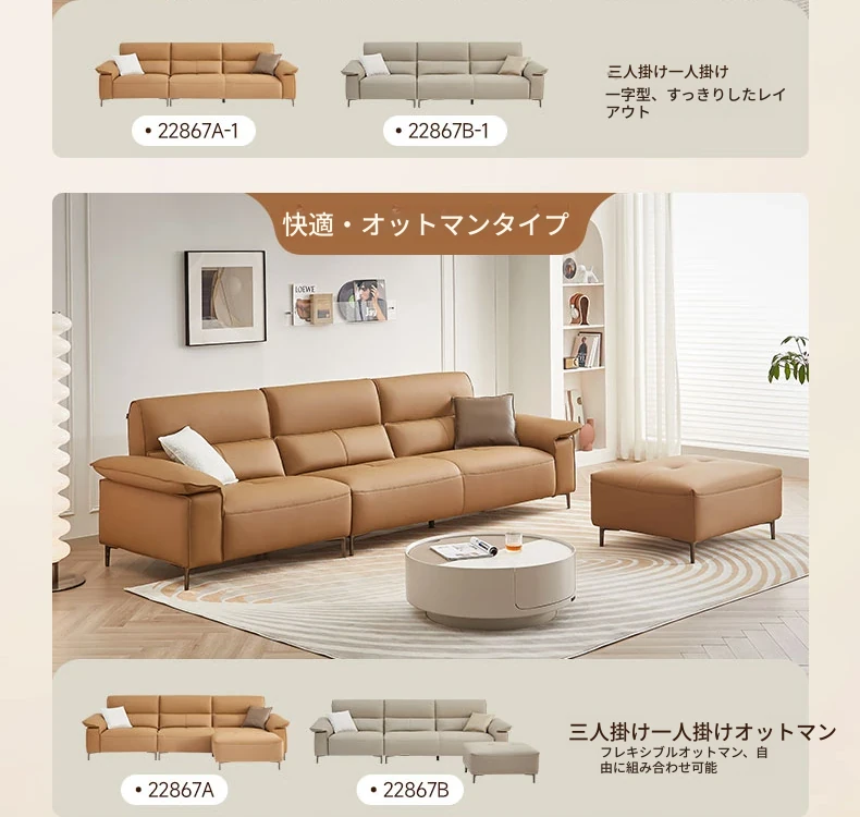 全友家具直営店同款!22867AB 輸入本革の牛皮ソファー、スタイリッシュ&シンプルなデザイン、機能性も充実した新作登場!快適なリビング空間を演出します。