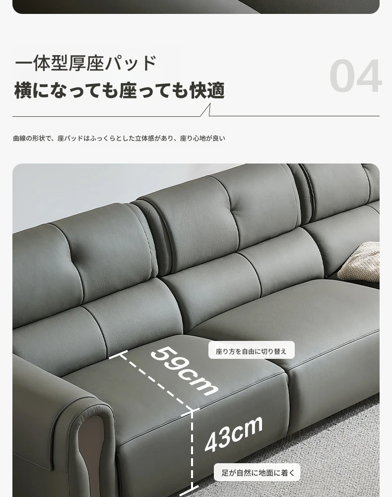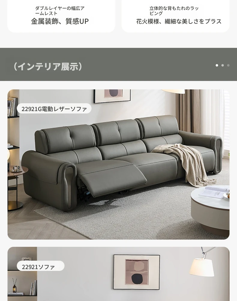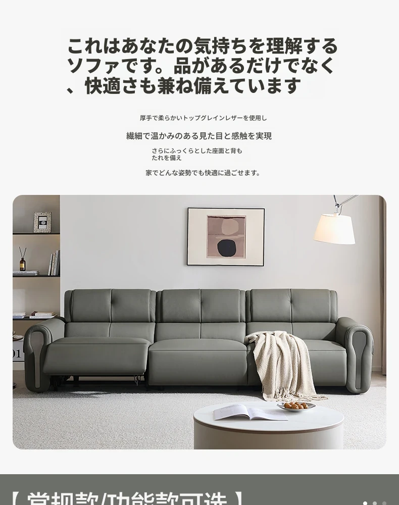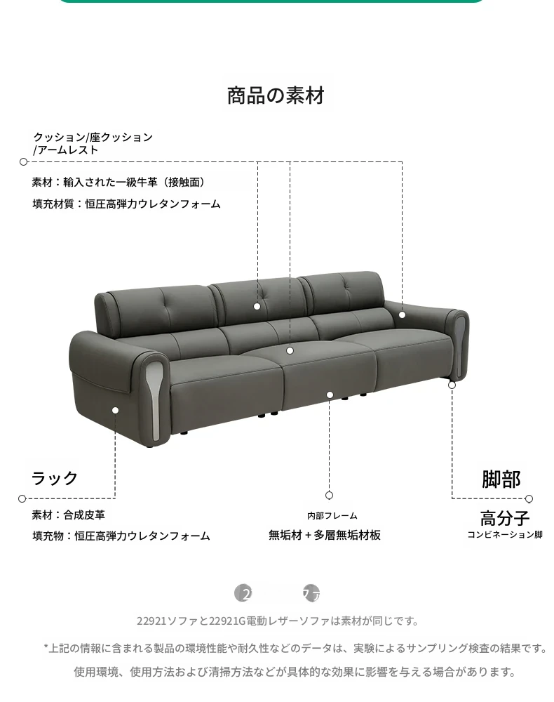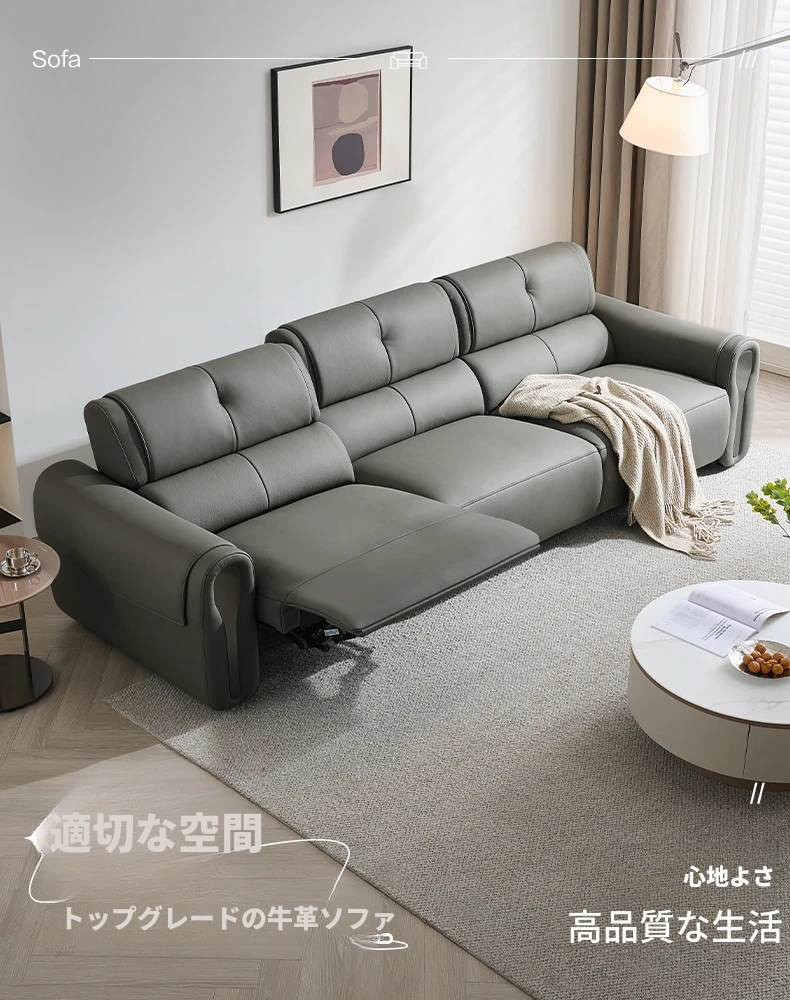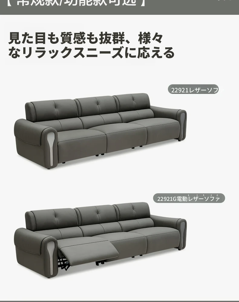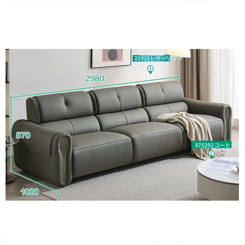 全友家居同款!22921輸入本革一級黄牛皮ソファー、スタイリッシュなデザイン&背面無理で壁にピッタリフィット!リビングに最適な一文字型、快適な座り心地を実現!