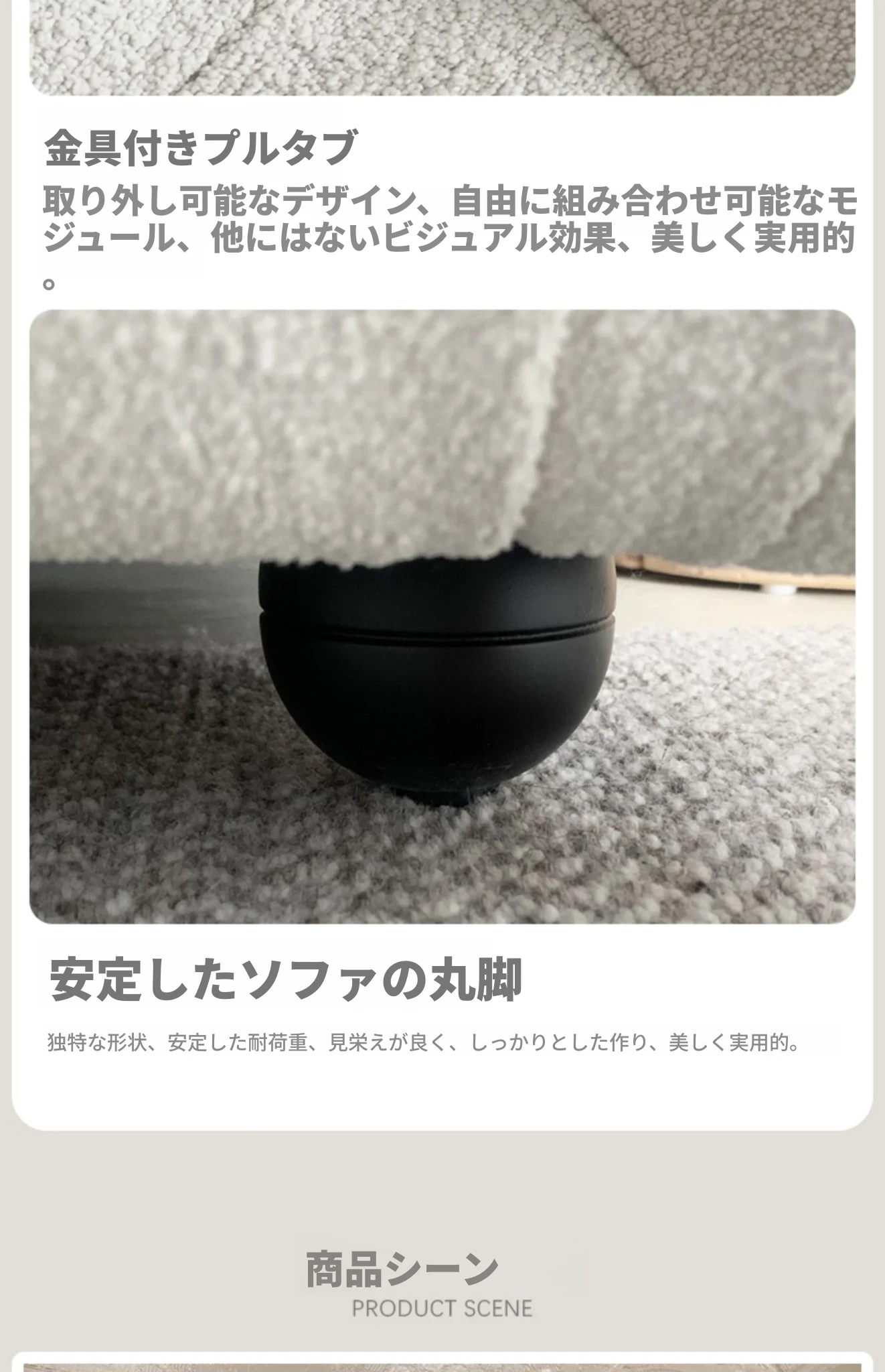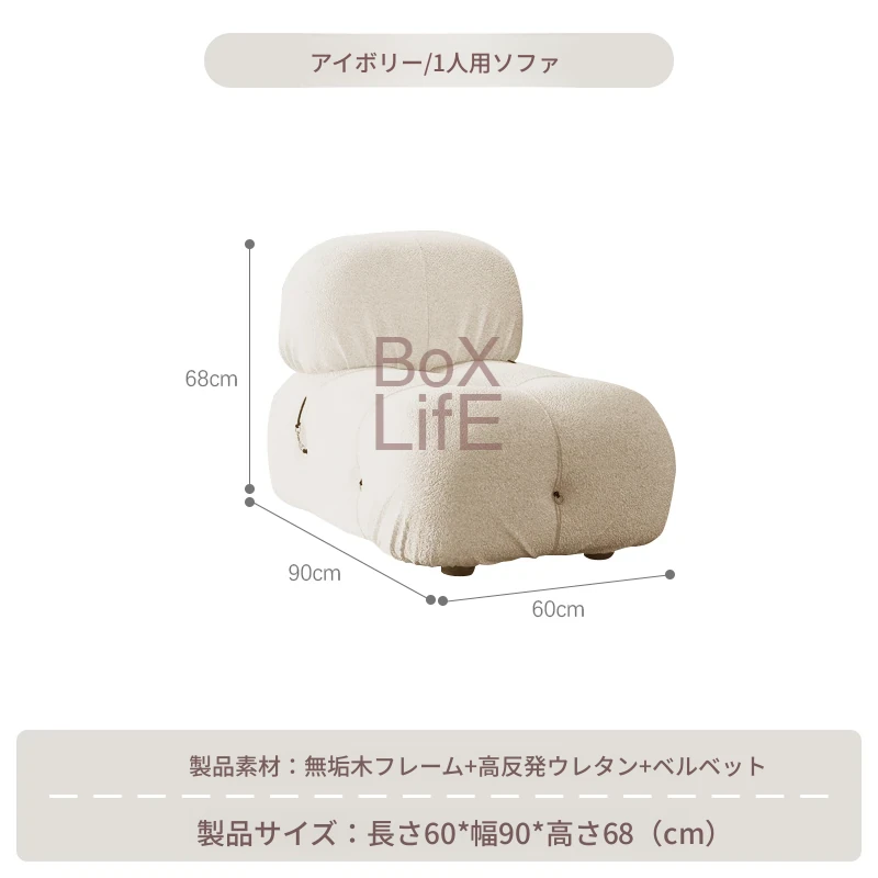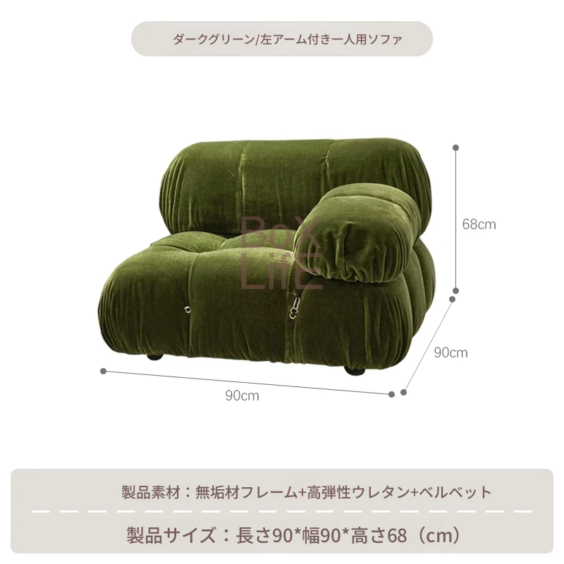 ボックスライフ リビングモジュールコンビネーション ファブリックソファ イタリアンミニマル 中古小型住宅向け サークルベルベットソファで、居心地の良い空間を実現!