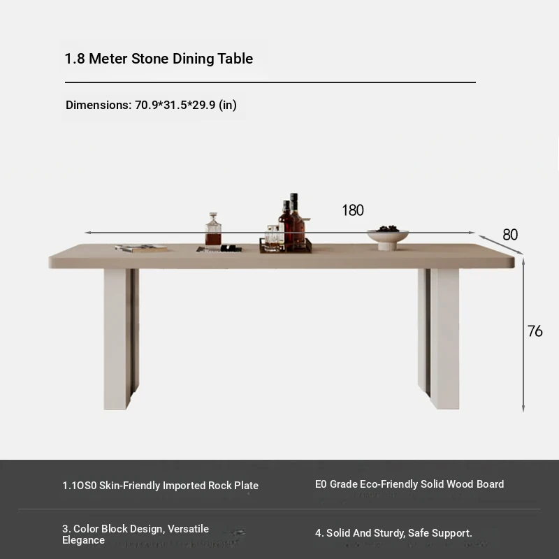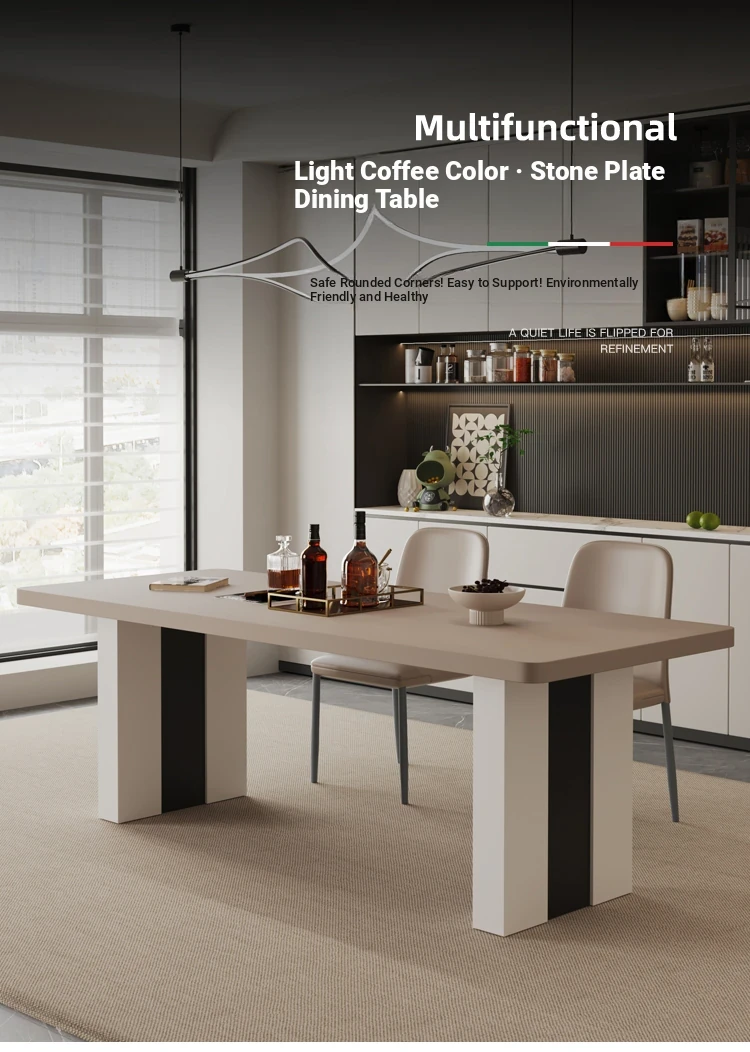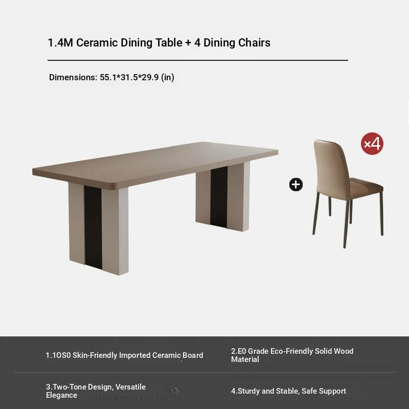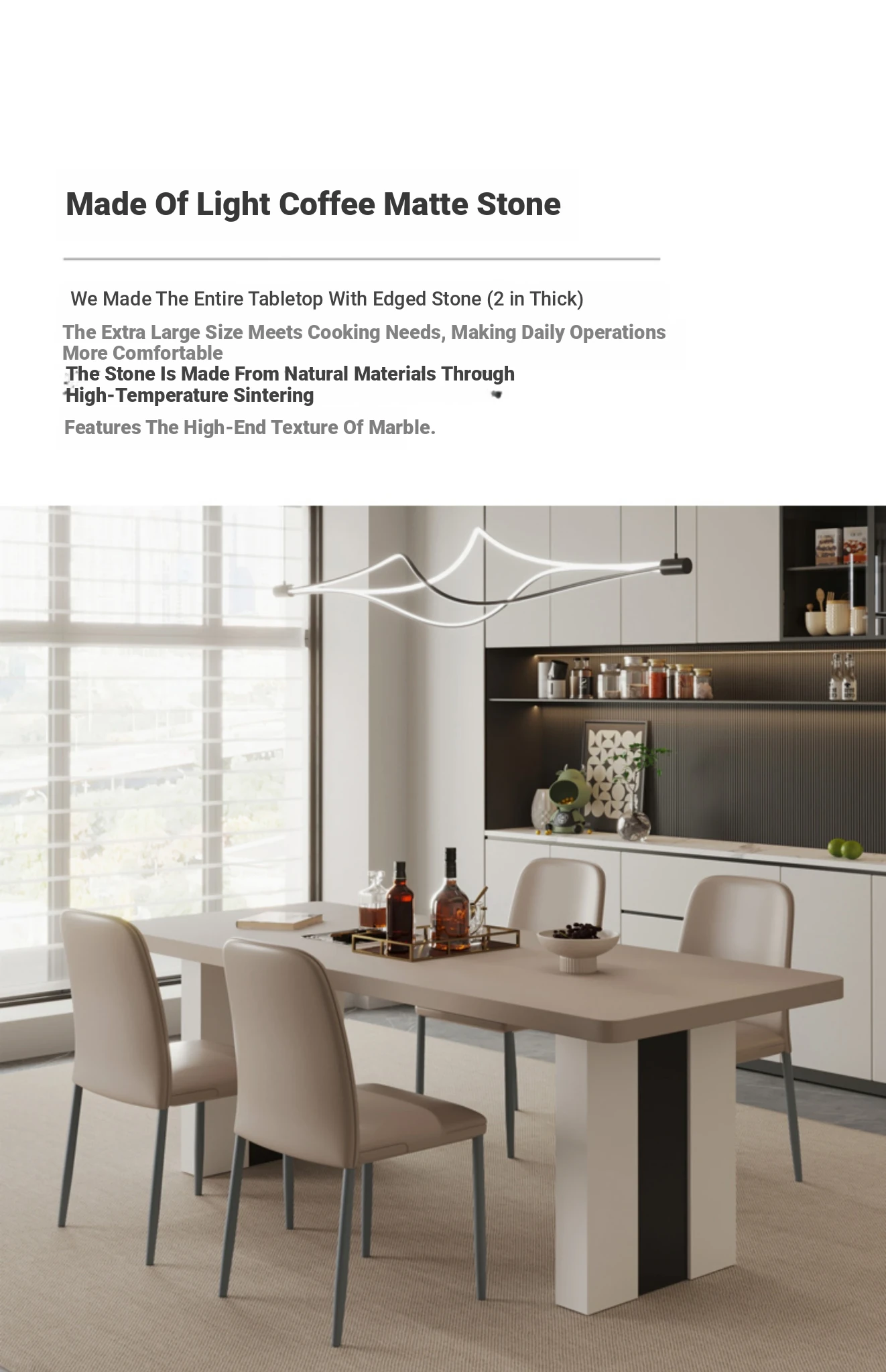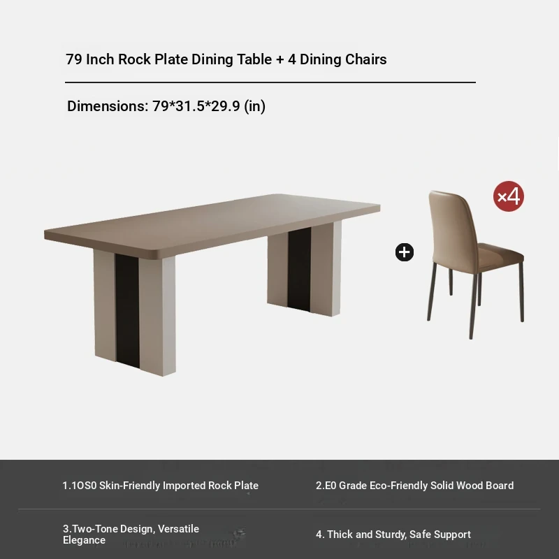 Brown Stone Dining Table and Chair Set - Rectangular Italian Minimalist Design for Small Spaces - Modern and Simple Home Furniture