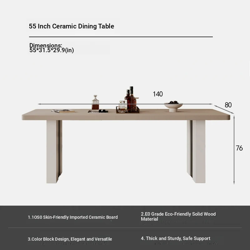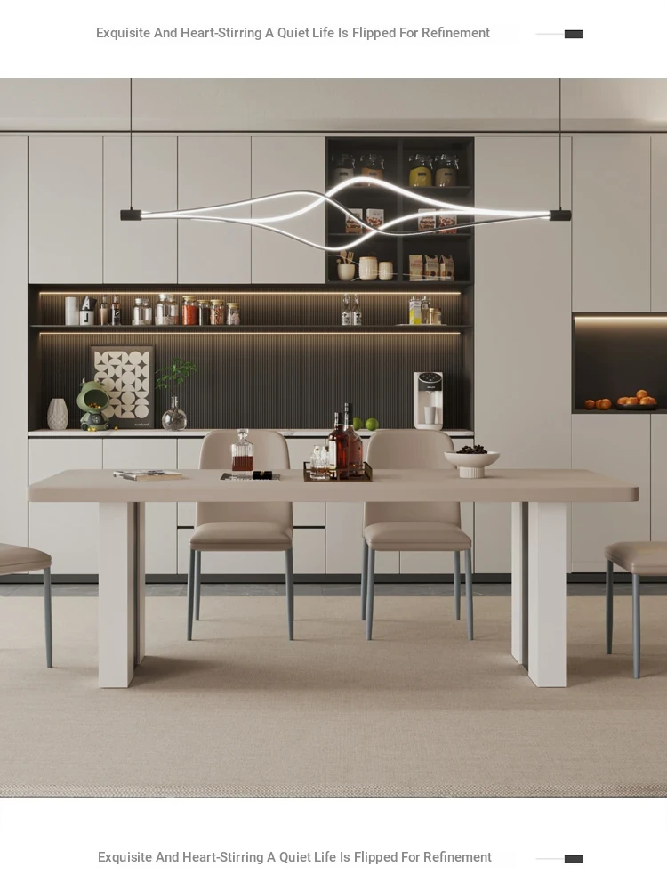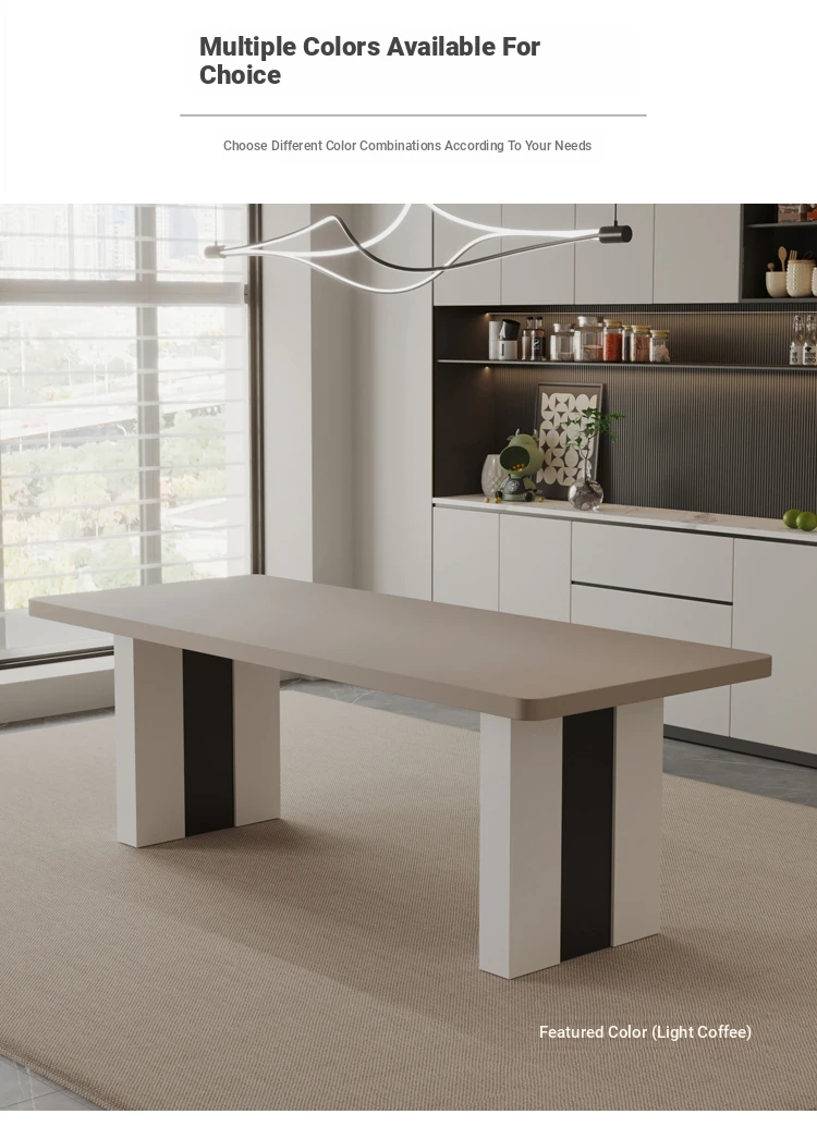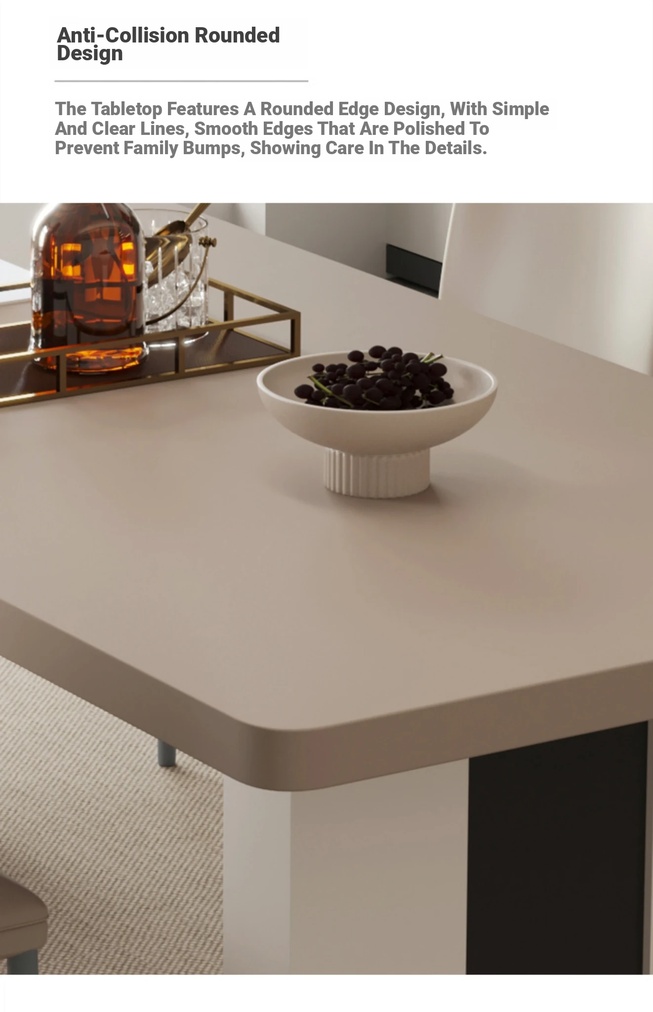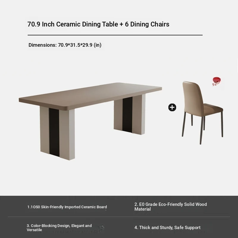 Brown Stone Dining Table and Chair Set - Rectangular Italian Minimalist Design for Small Spaces - Modern and Simple Home Furniture